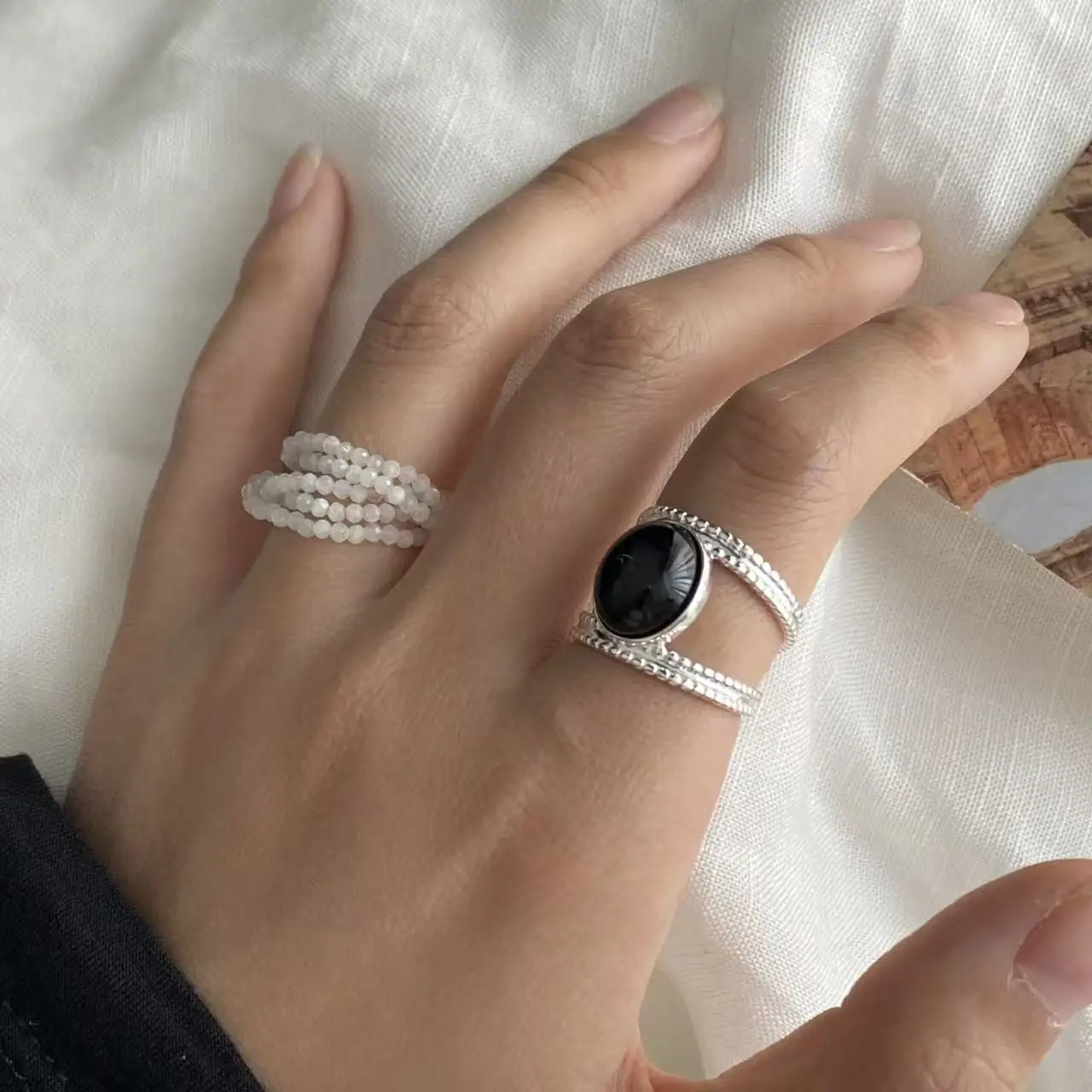 CHOZON S925 Solid Silver Black Onyx Ring French Mi...