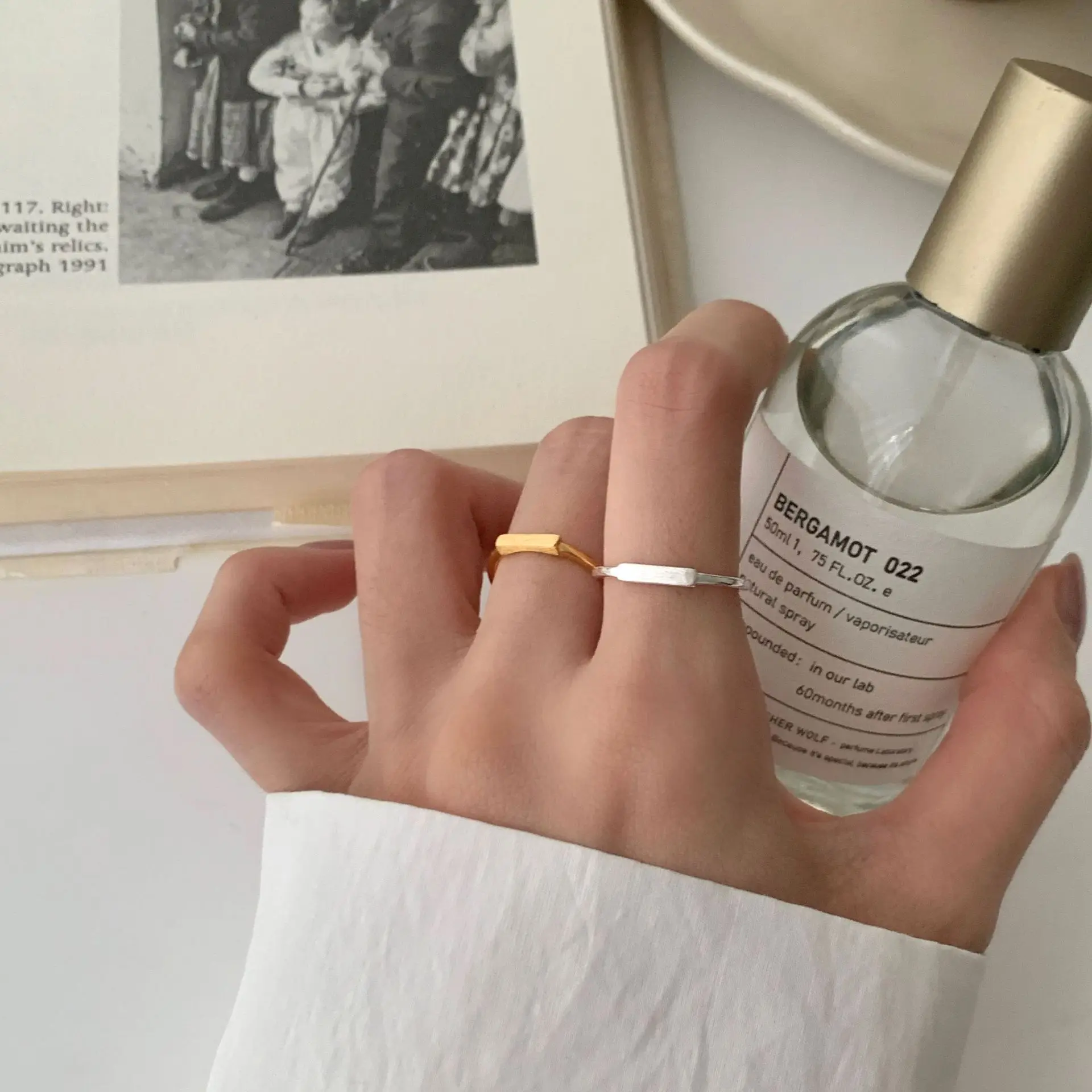 CHOZON S925 Solid Silver Brushed Rectangle Ring Fr...