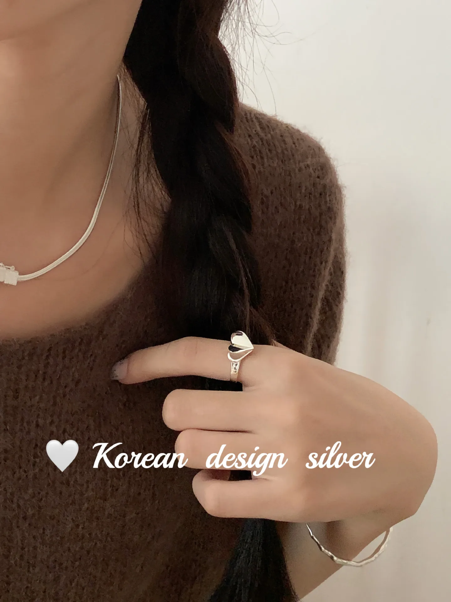 CHOZON S925 Solid Silver Double Heart Ring French ...