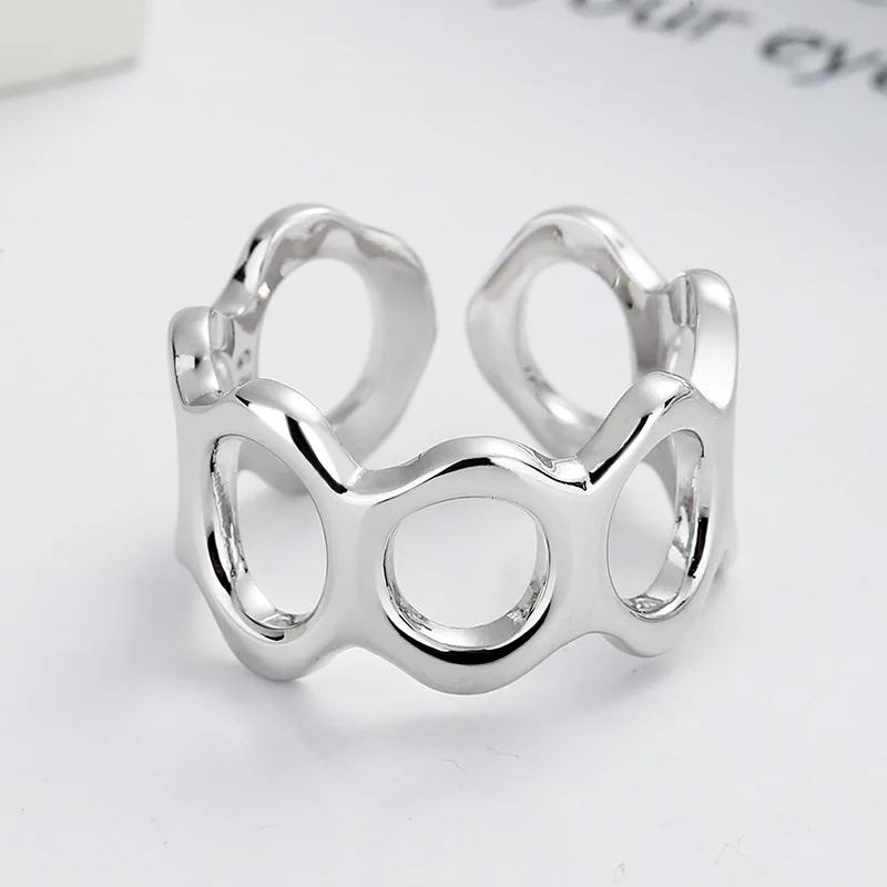 CHOZON S925 Solid Silver Textured Wide Band Ring F...