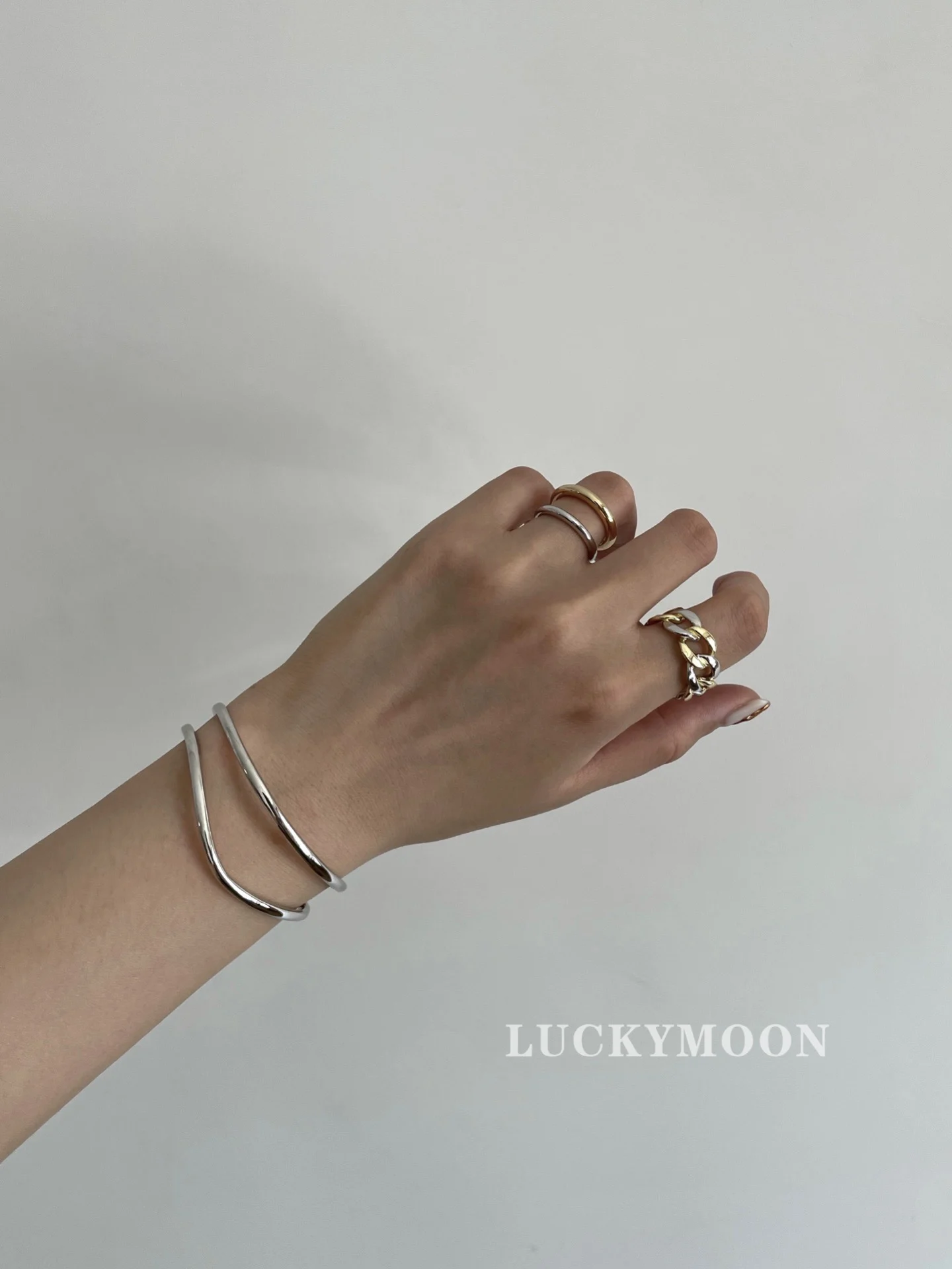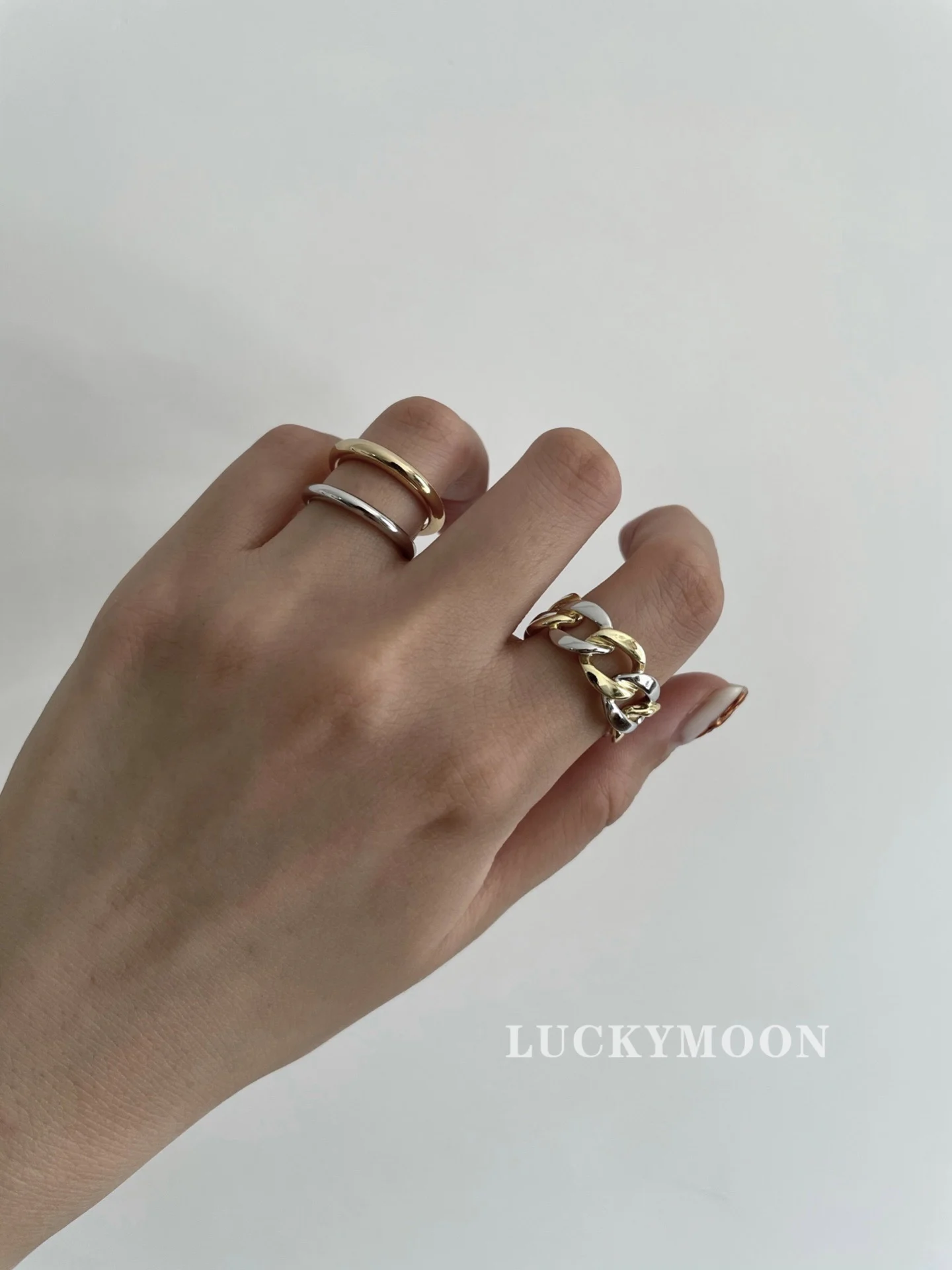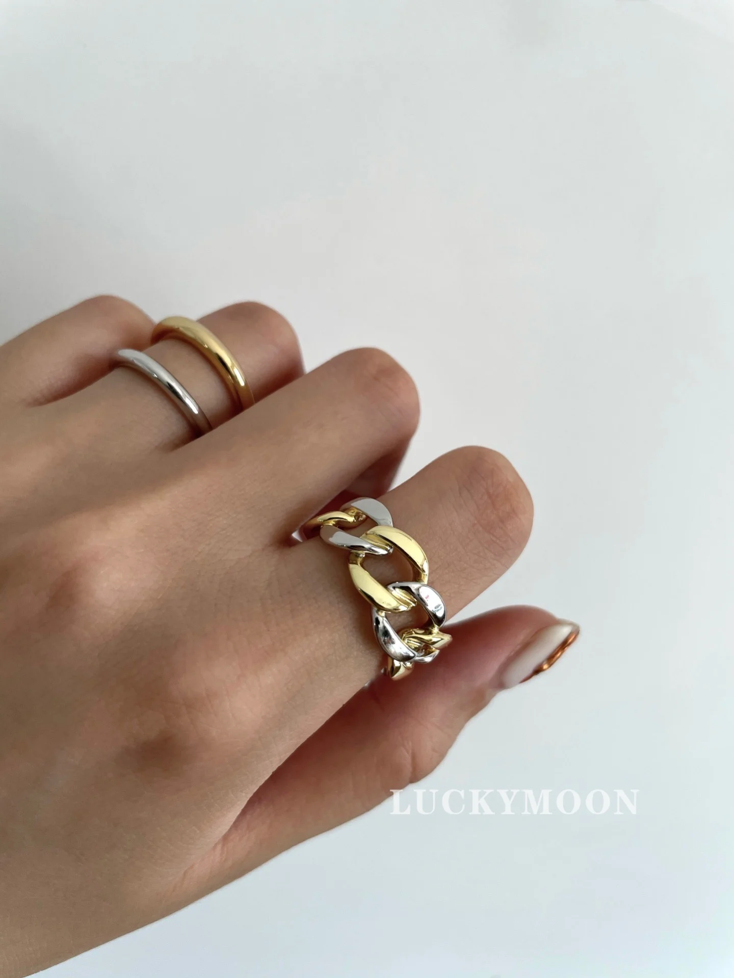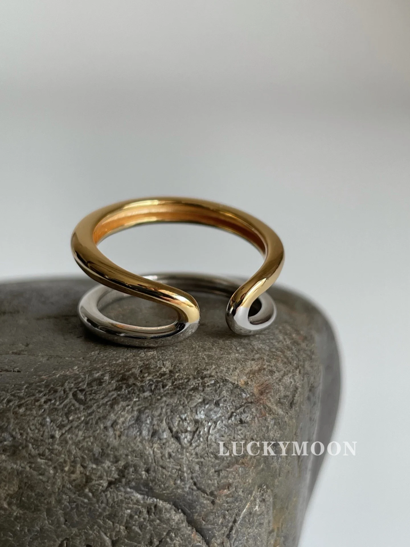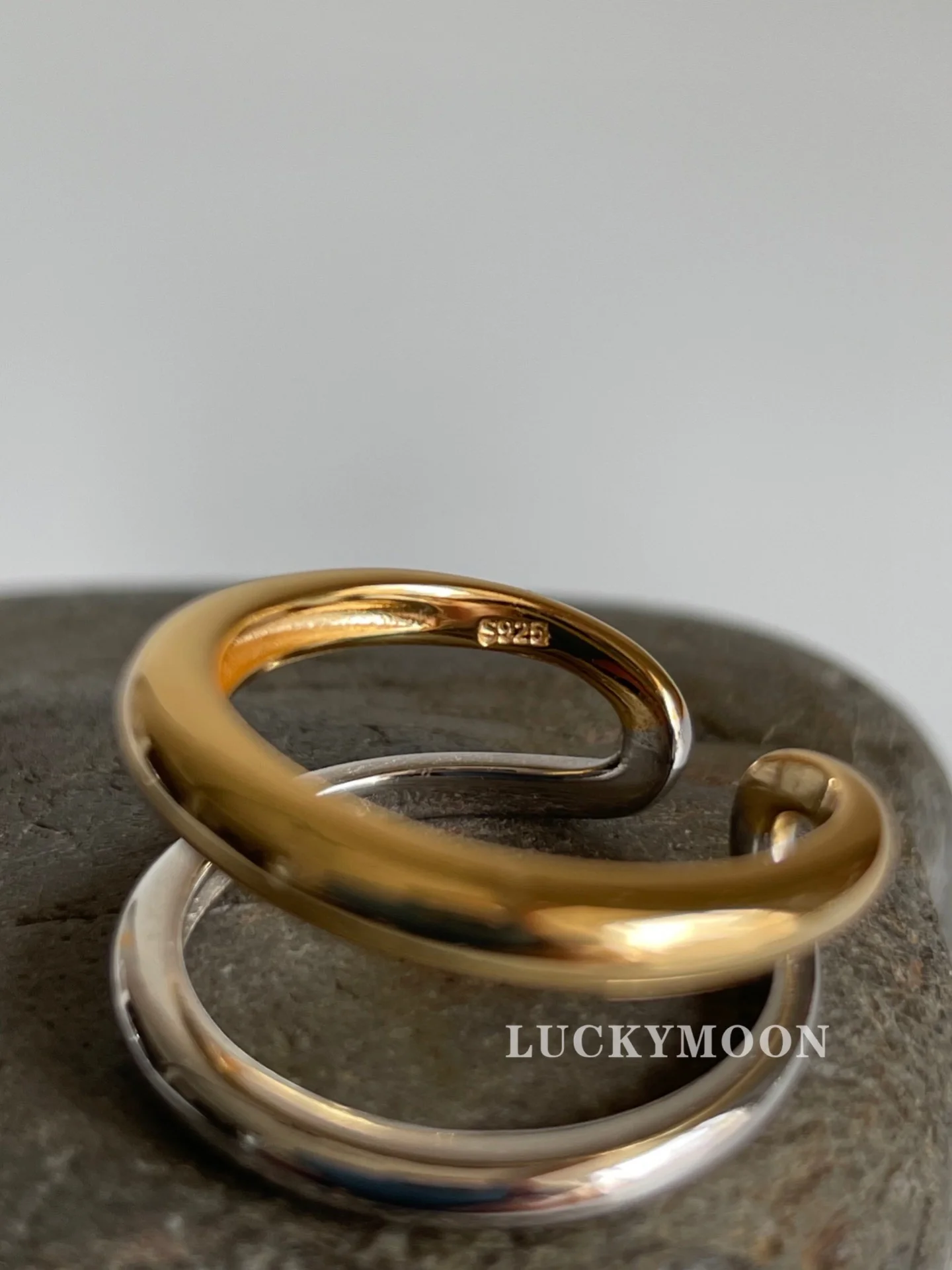 CHOZON S925 Solid Silver Two-Tone Stacking Ring Fr...