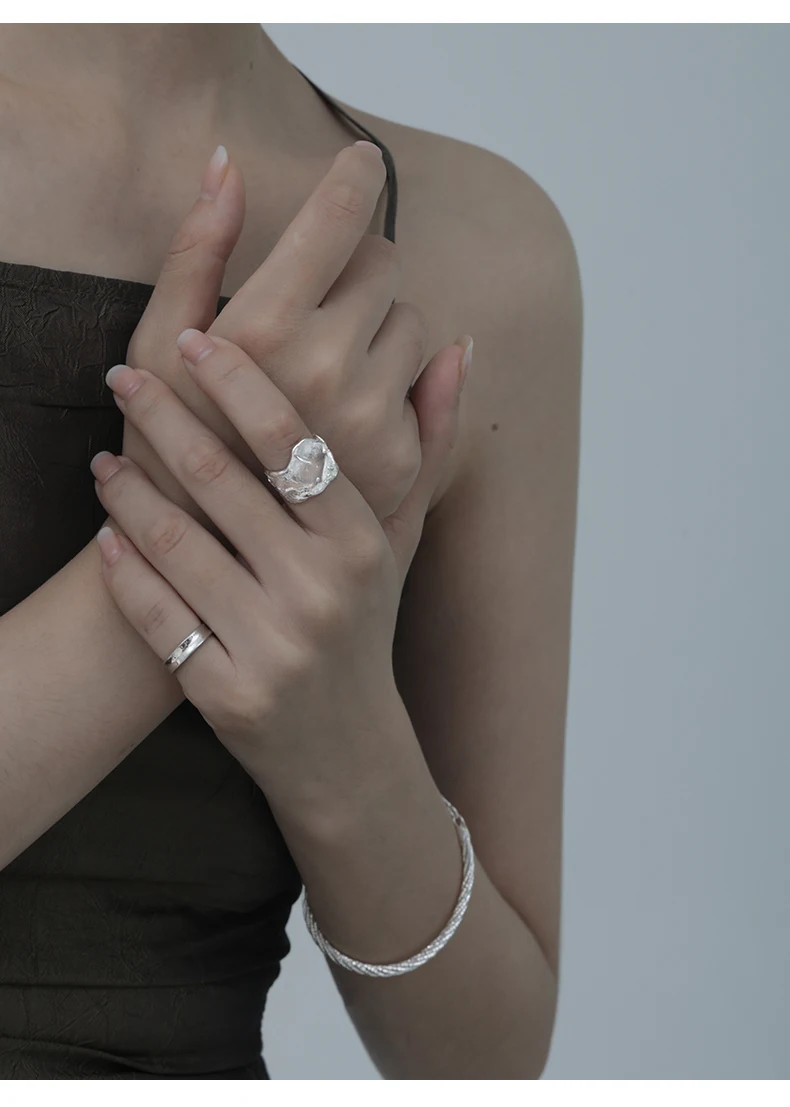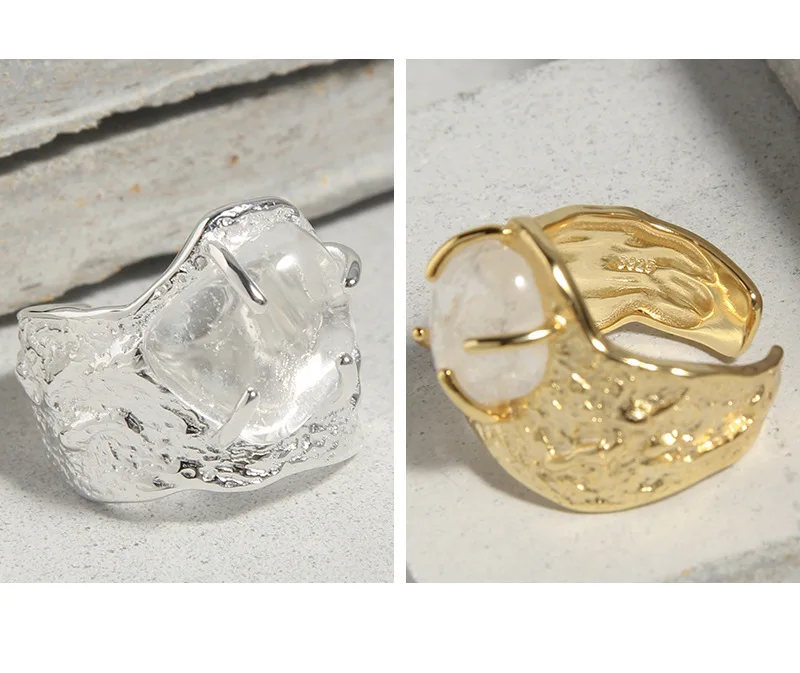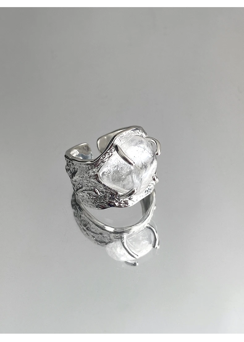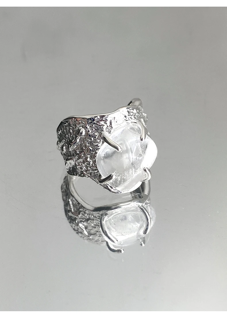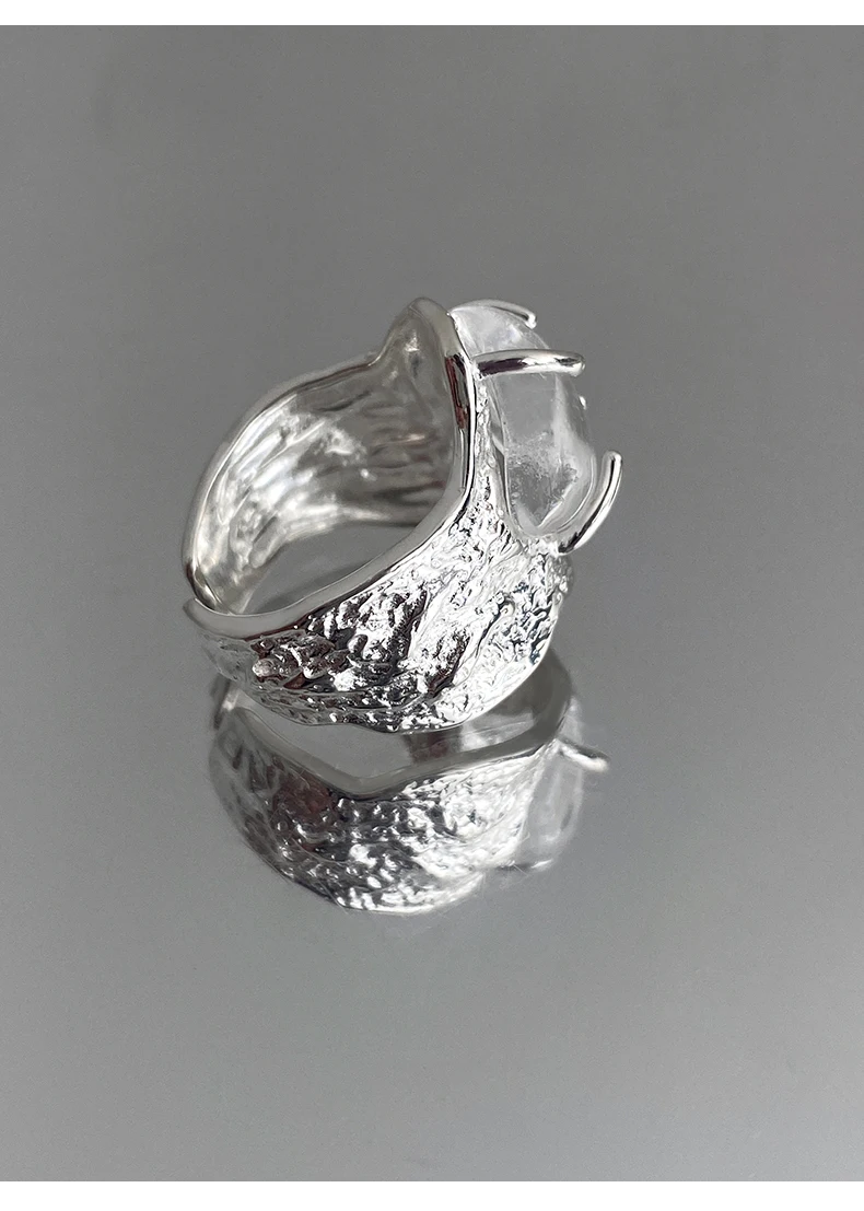 Jewel Type : F.I.N.S 100% 925 Sterling Silver Natural Crystal Fold Concave Convex Wide Resizable Adjustable Ring Luxury Fine Jewelry Gift
