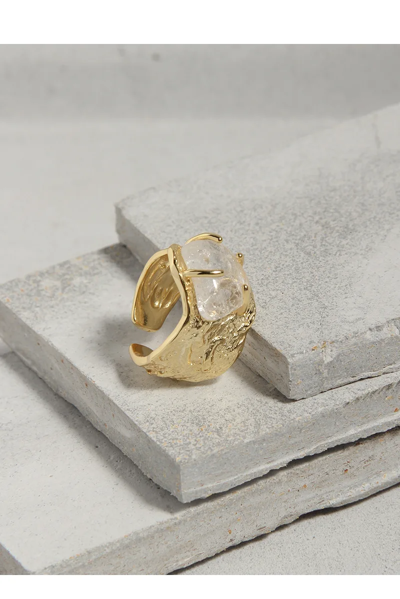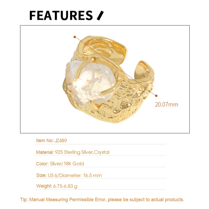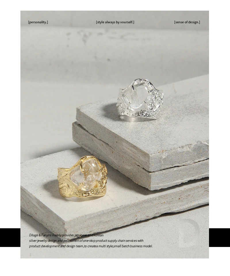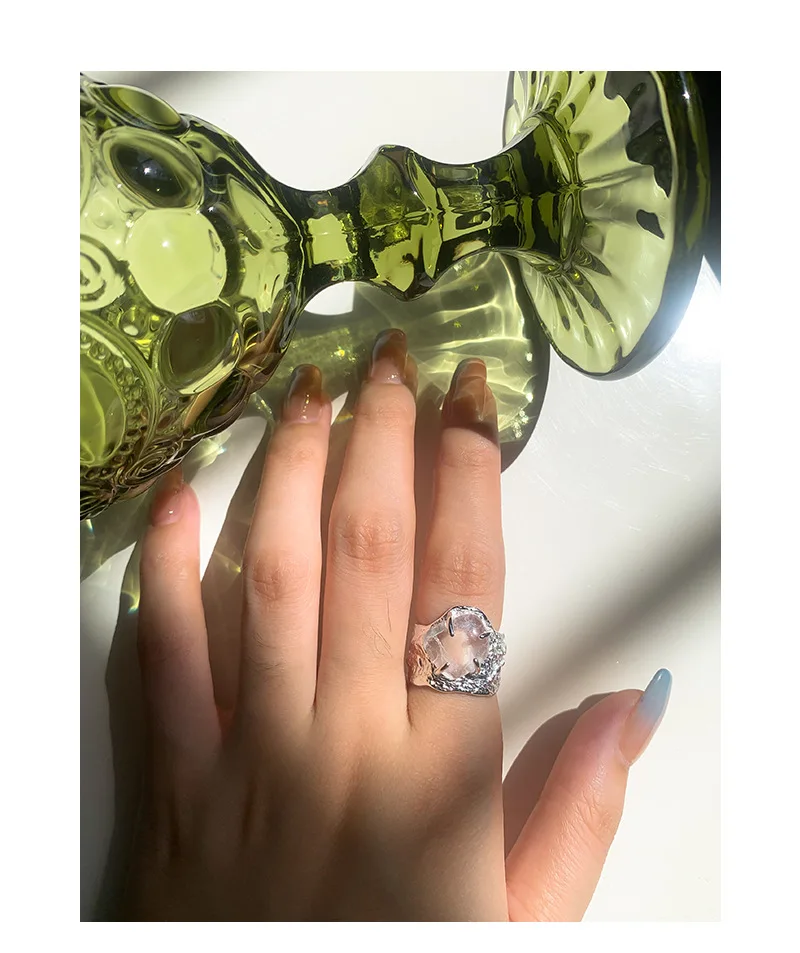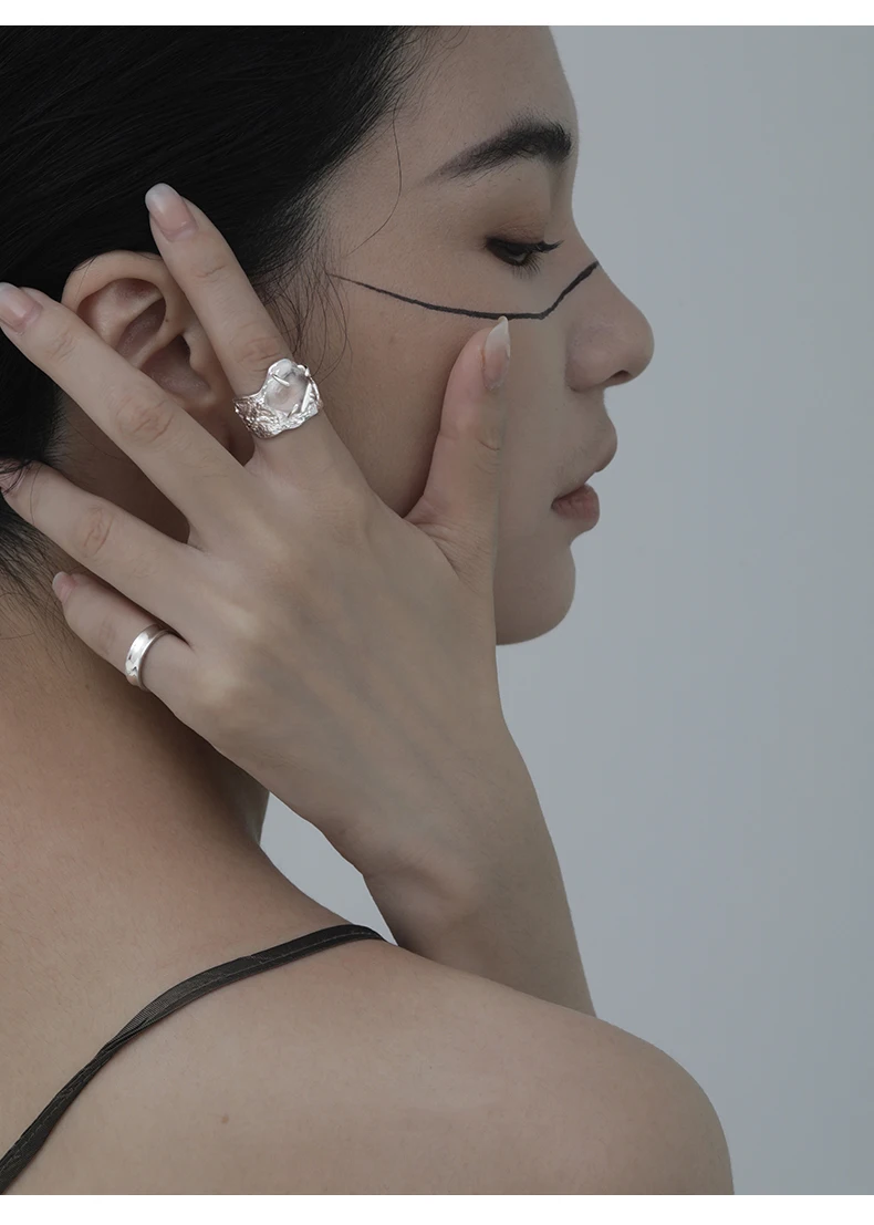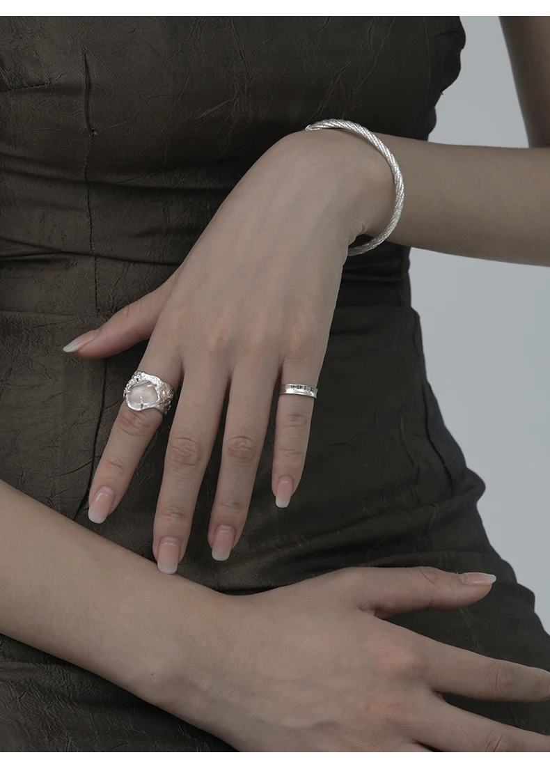 Jewel Type : F.I.N.S 100% 925 Sterling Silver Natural Crystal Fold Concave Convex Wide Resizable Adjustable Ring Luxury Fine Jewelry Gift