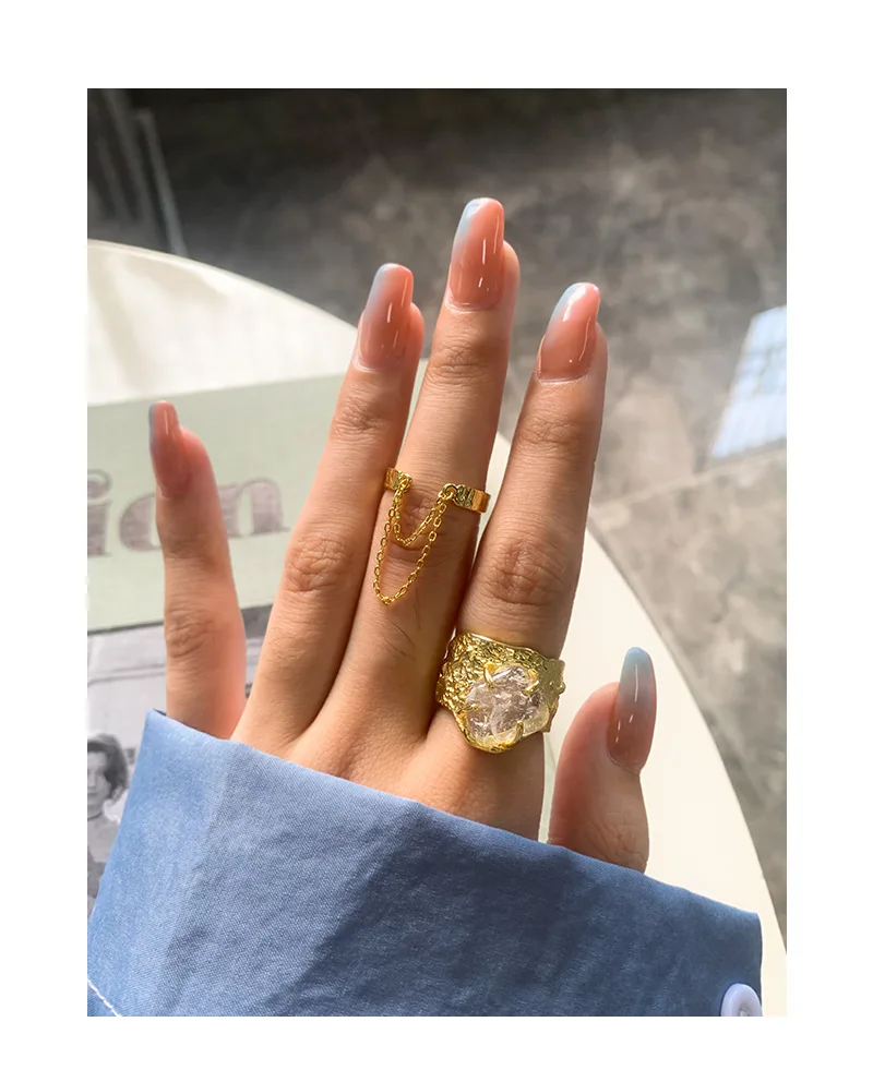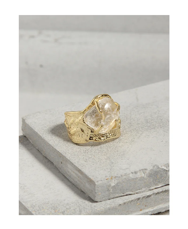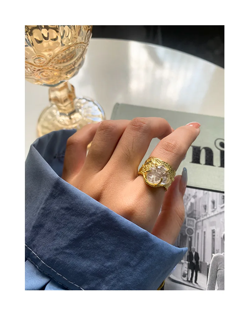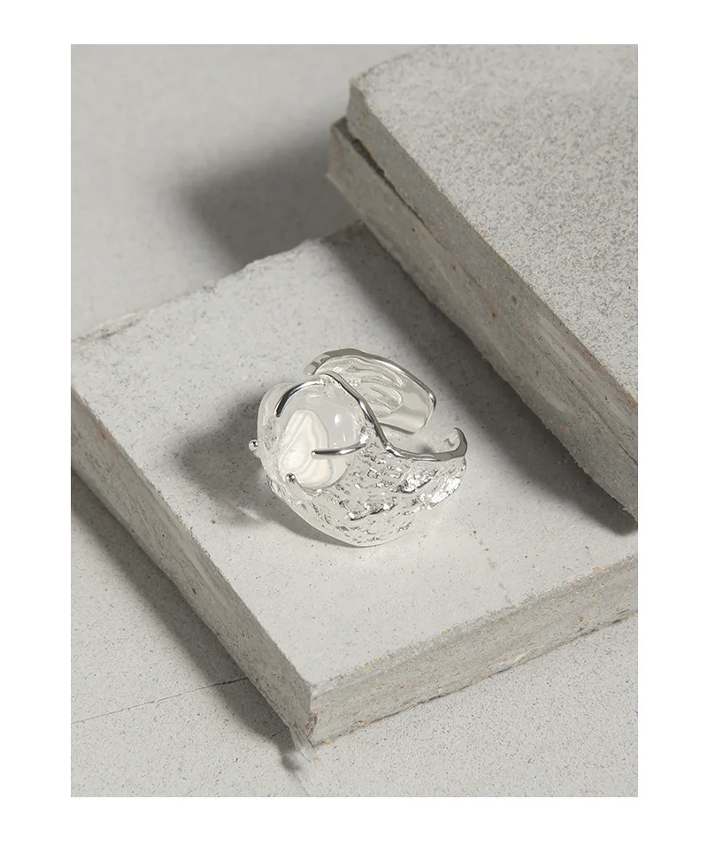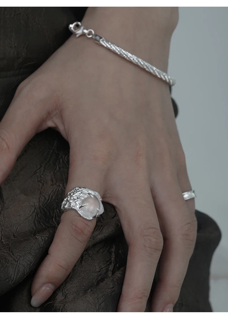 Jewel Type : F.I.N.S 100% 925 Sterling Silver Natural Crystal Fold Concave Convex Wide Resizable Adjustable Ring Luxury Fine Jewelry Gift