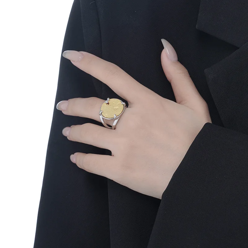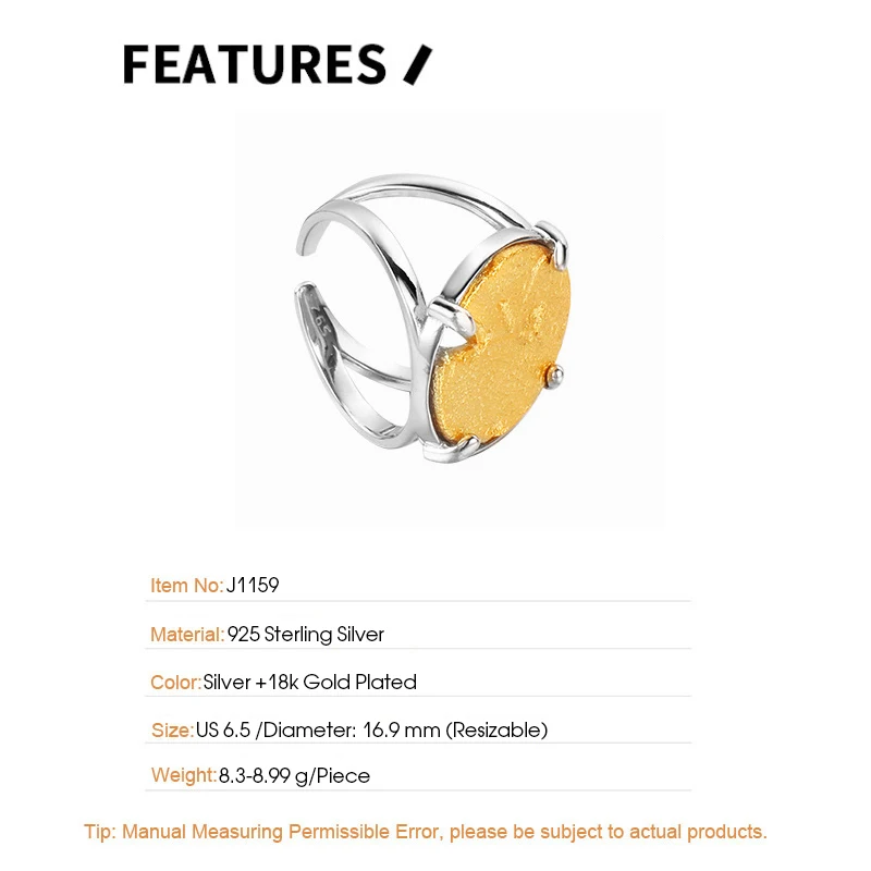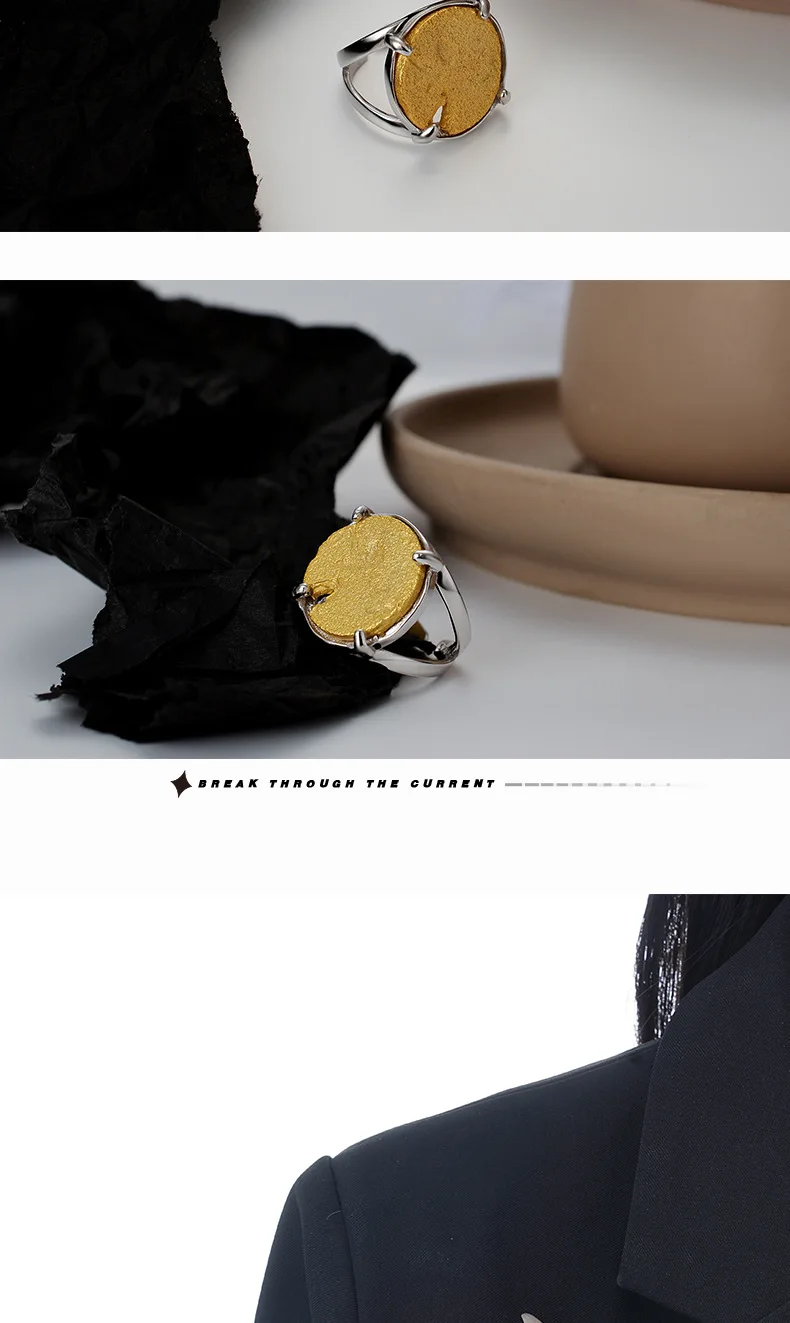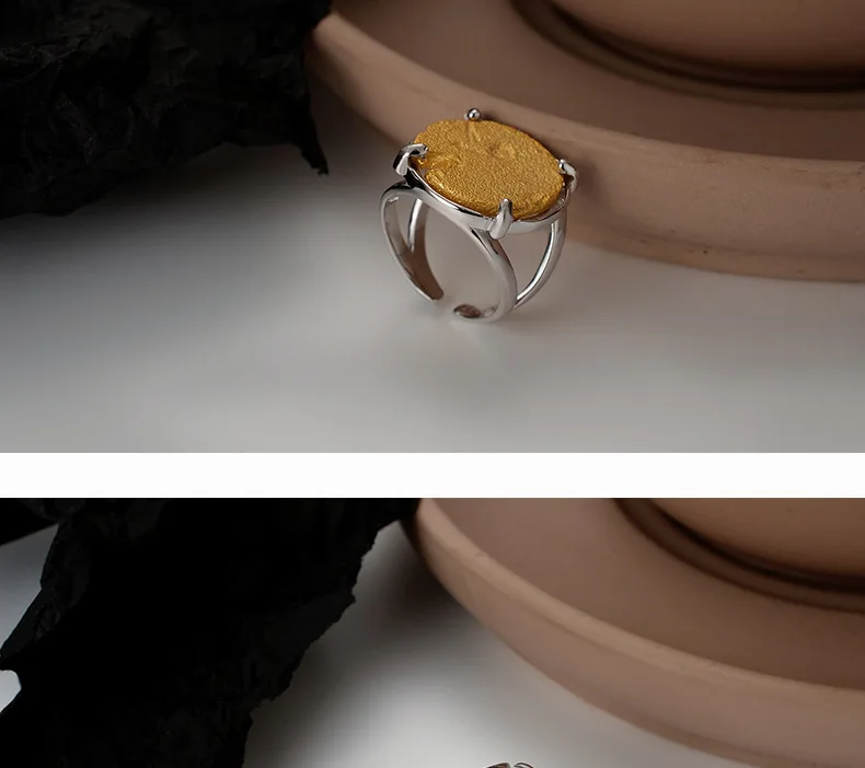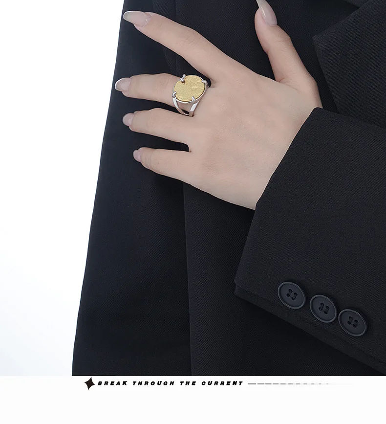 Jewel Type : F.I.N.S 925 Sterling Silver Wrinkle Uneven Ring Double Color Round Open Index Finger Ring Punk Rock Women Men Silver 925 Jewelry