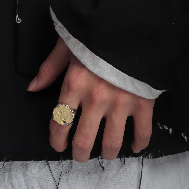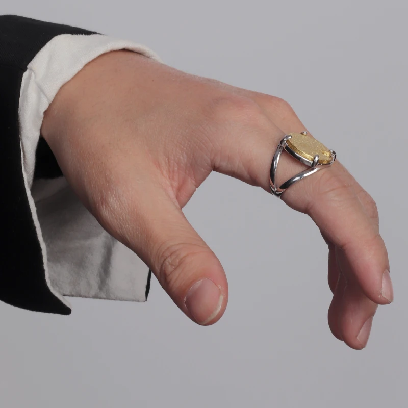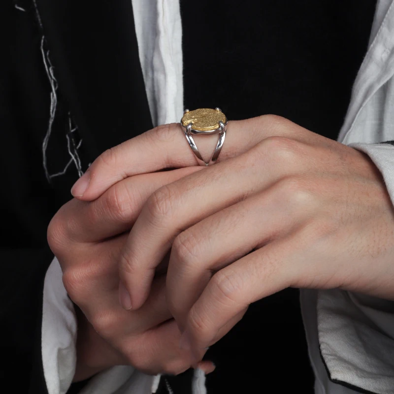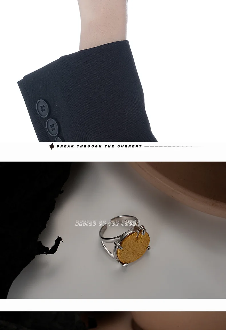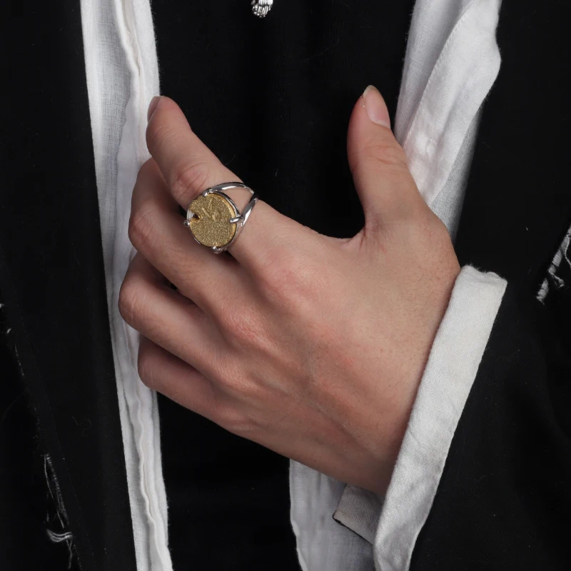 Jewel Type : F.I.N.S 925 Sterling Silver Wrinkle Uneven Ring Double Color Round Open Index Finger Ring Punk Rock Women Men Silver 925 Jewelry