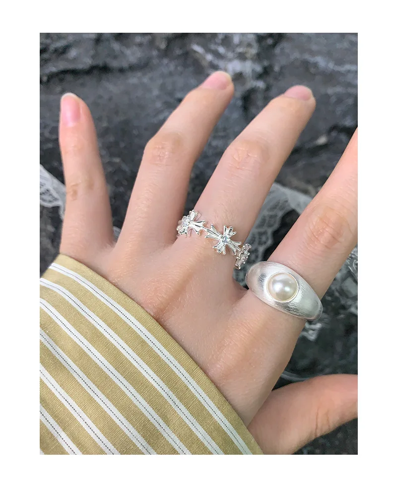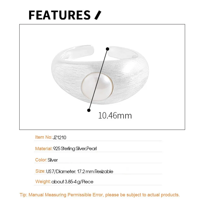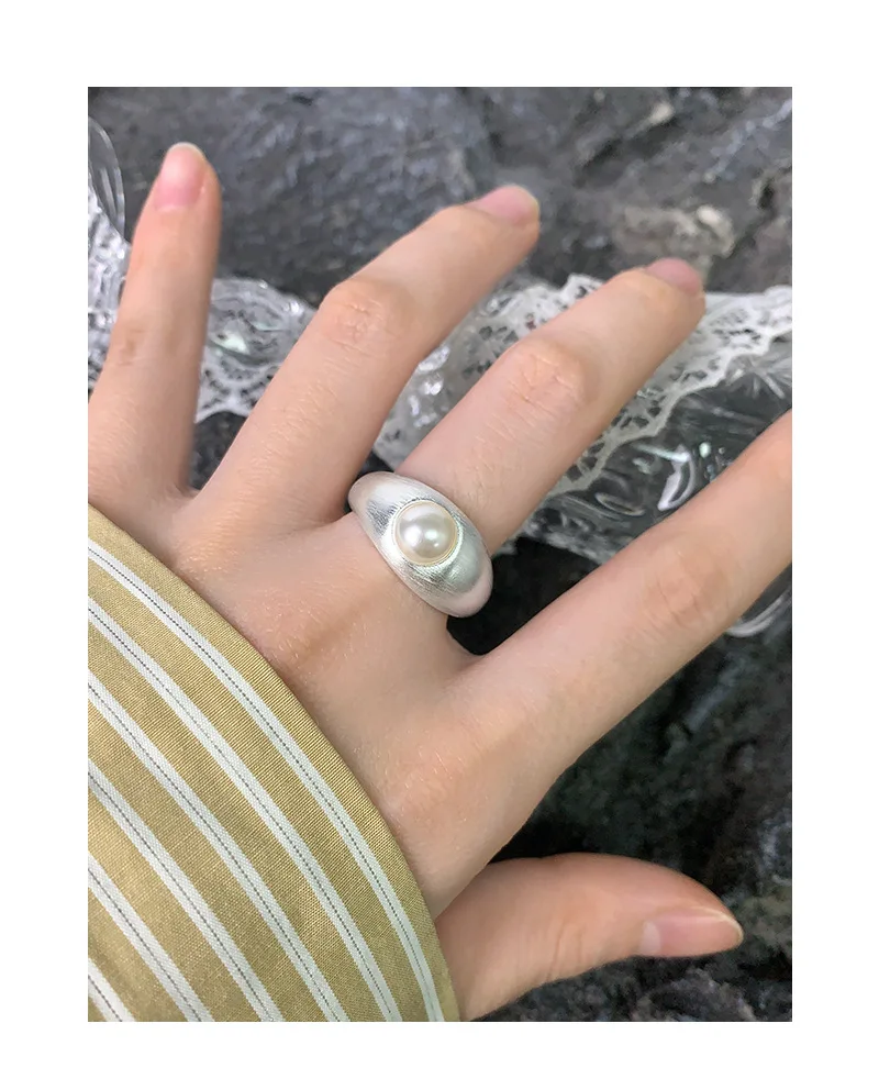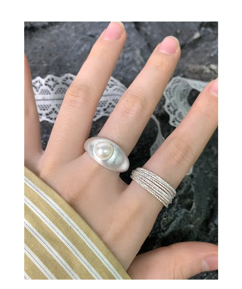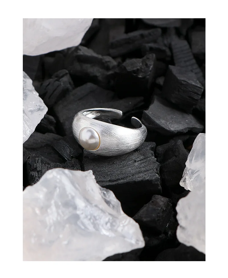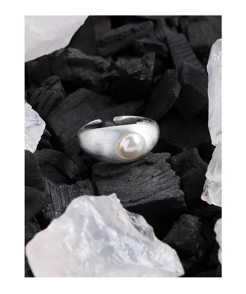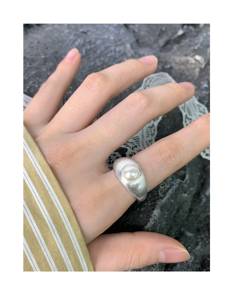 Jewel Type : F.I.N.S Arc-Shaped Pearl S925 Sterling Silver Rings Brushed Matte Wide Open Adjustable Finger Fine Jewelry Women Accessories