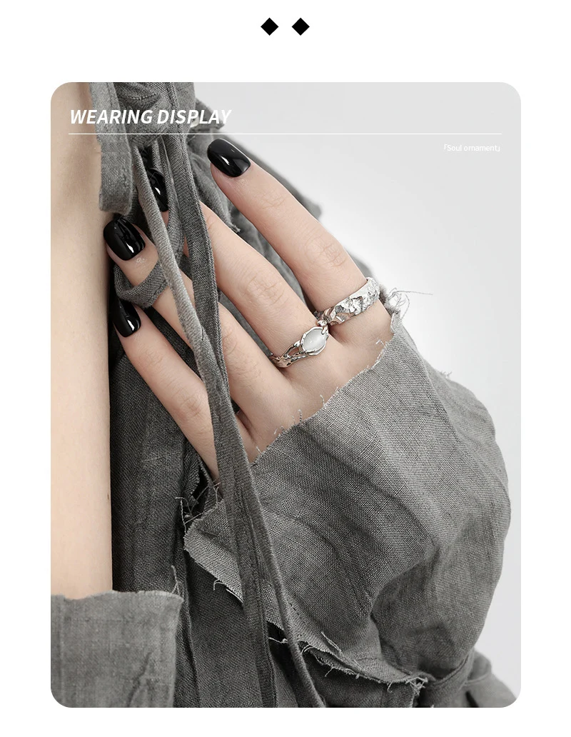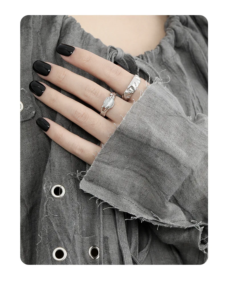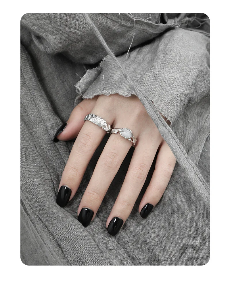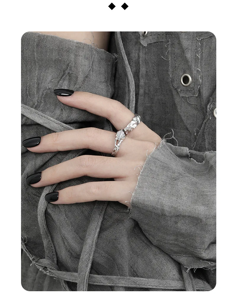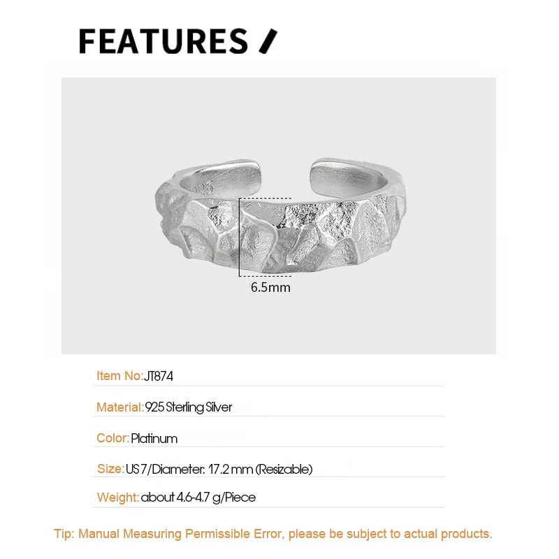 Jewel Type : F.I.N.S Bump Design Real S925 Sterling Silver Uneven Ring Open Men and Women Adjustable Punk Rock Finger Fine Jewelry Accessory