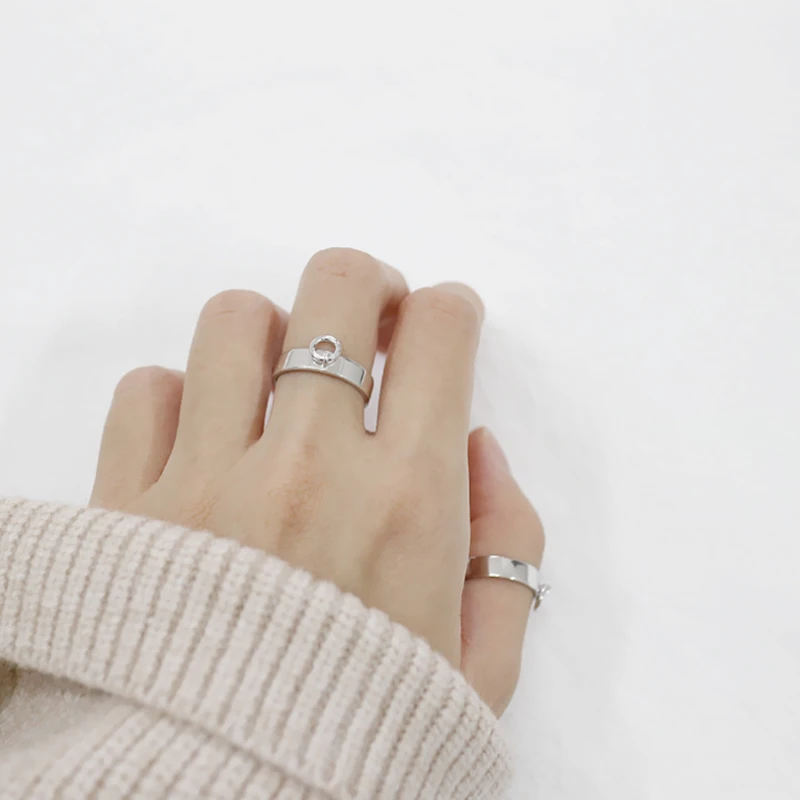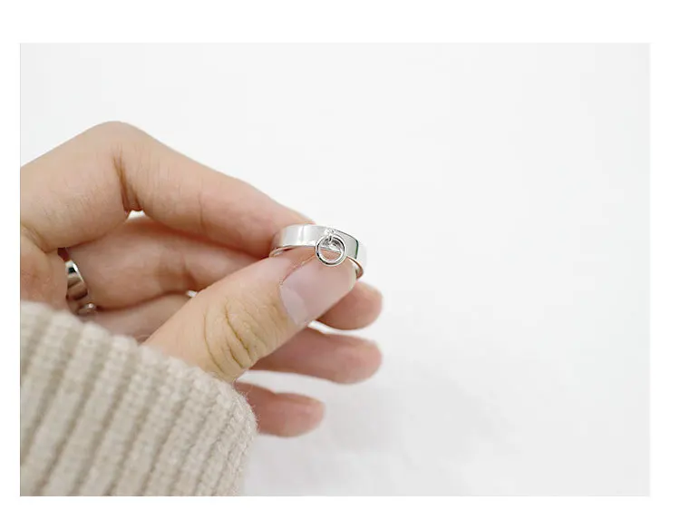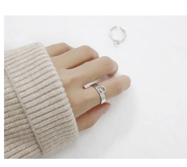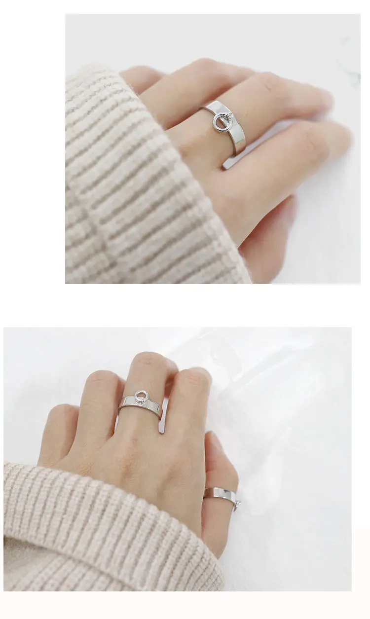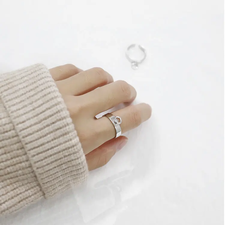 Jewel Type : F.I.N.S Chic INS Korean Style Woman 925 Sterling Silver Rings for Women Small Circle Pendant Glossy Open Ring Fine Jewelry
