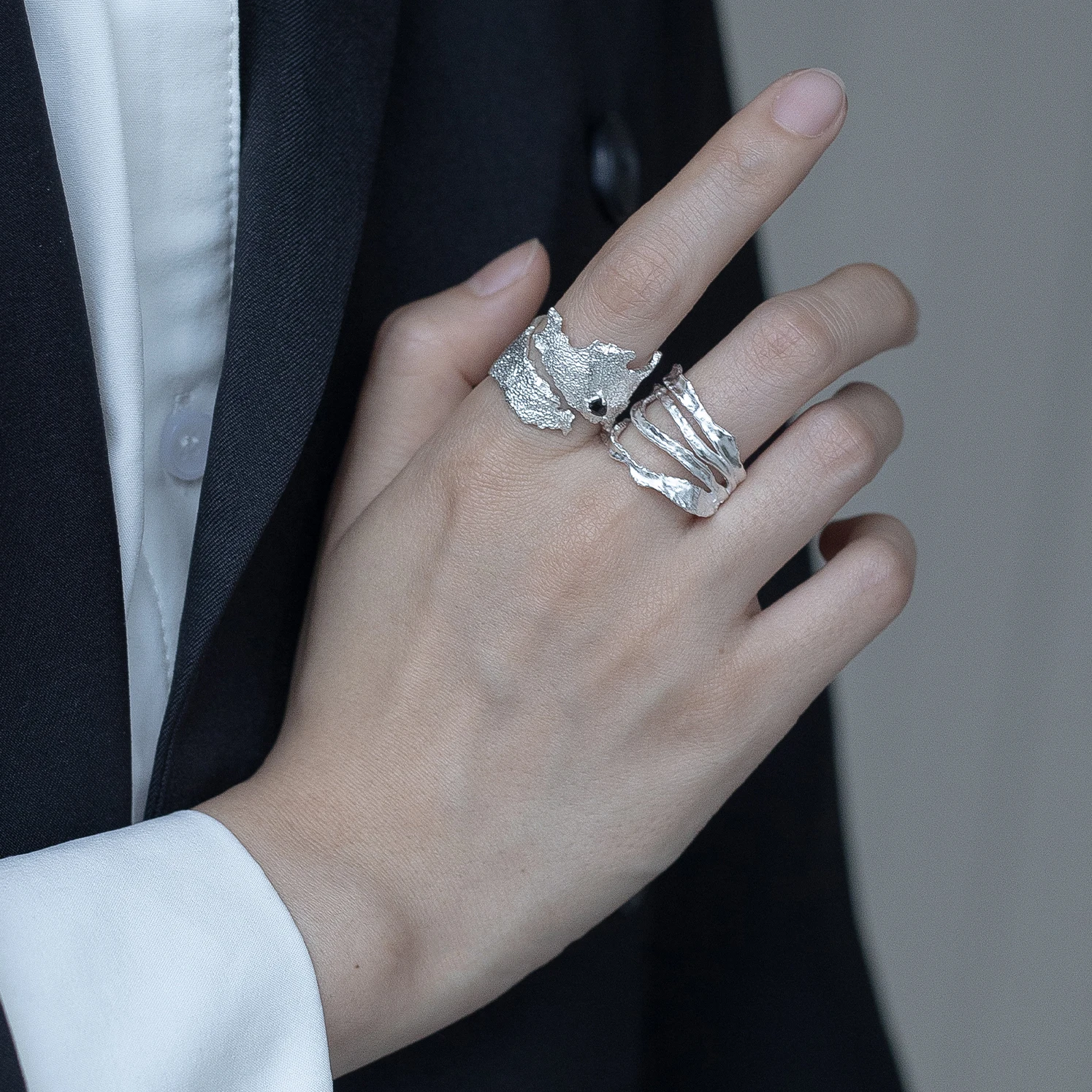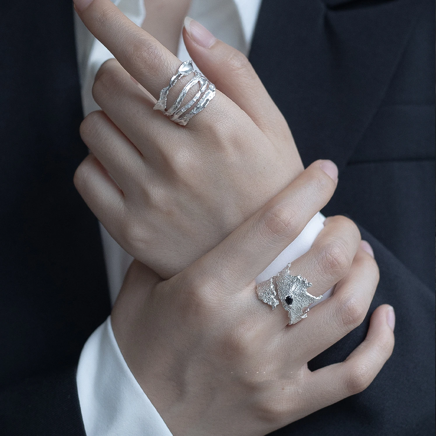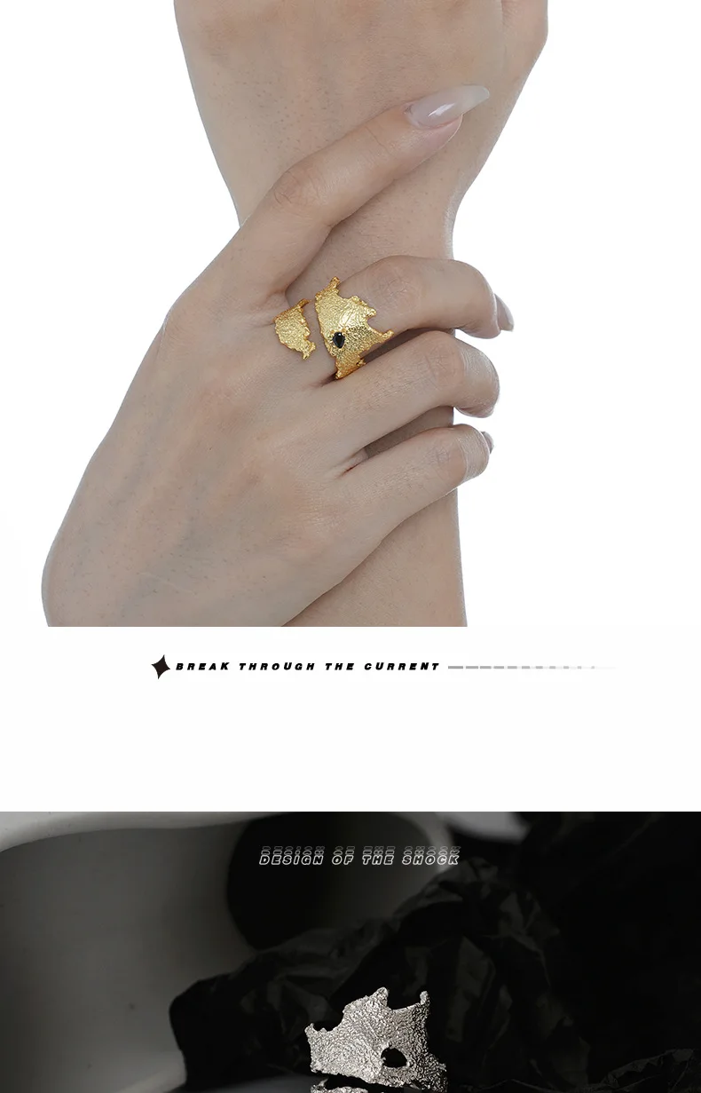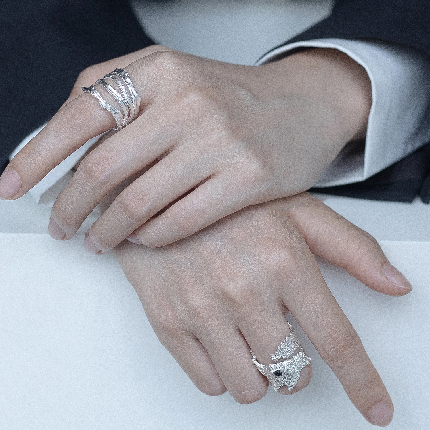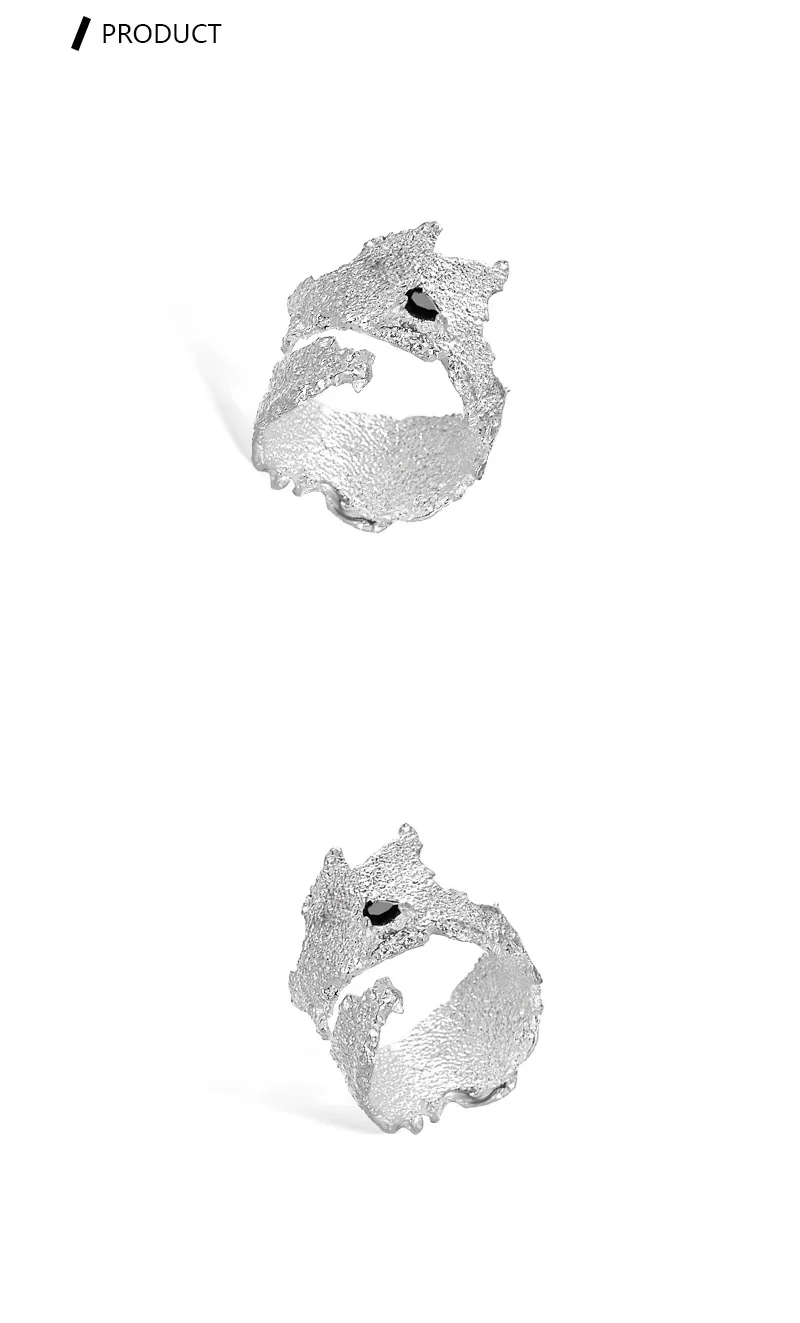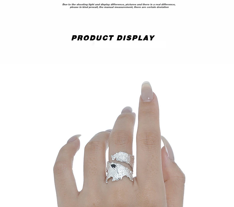 Jewel Type : F.I.N.S Exaggerated Designer S925 Sterling Silver Burned Wrinkle Texture Ring INS Wide Open Black Zircon Index Finger Rings