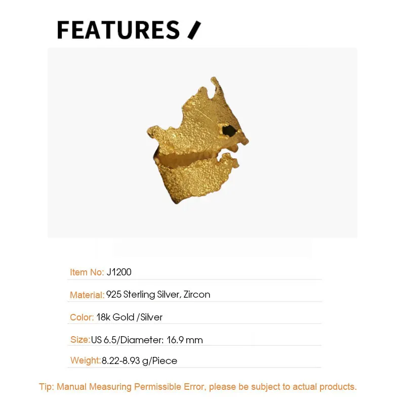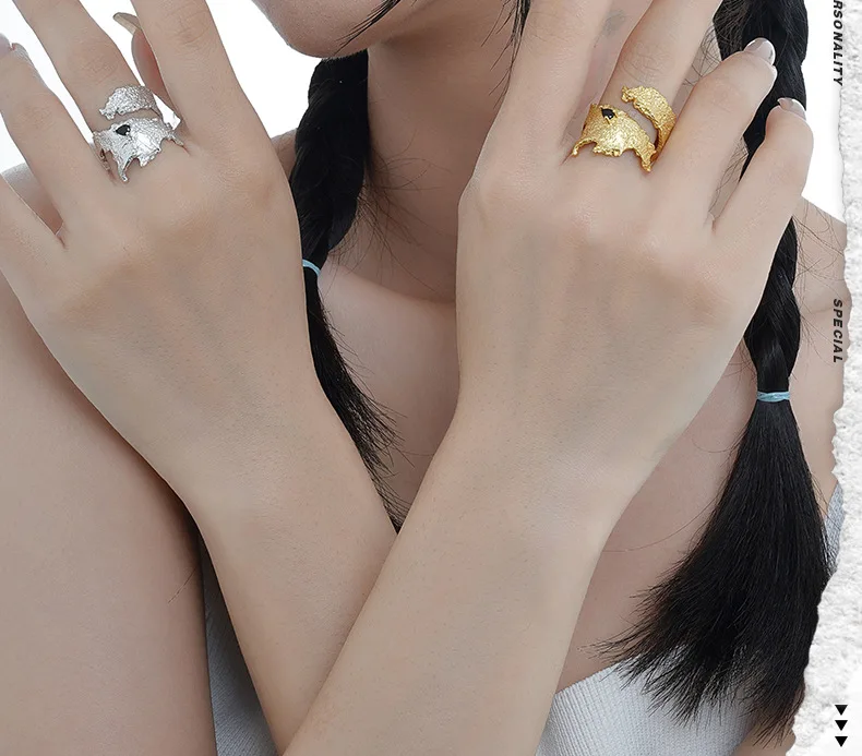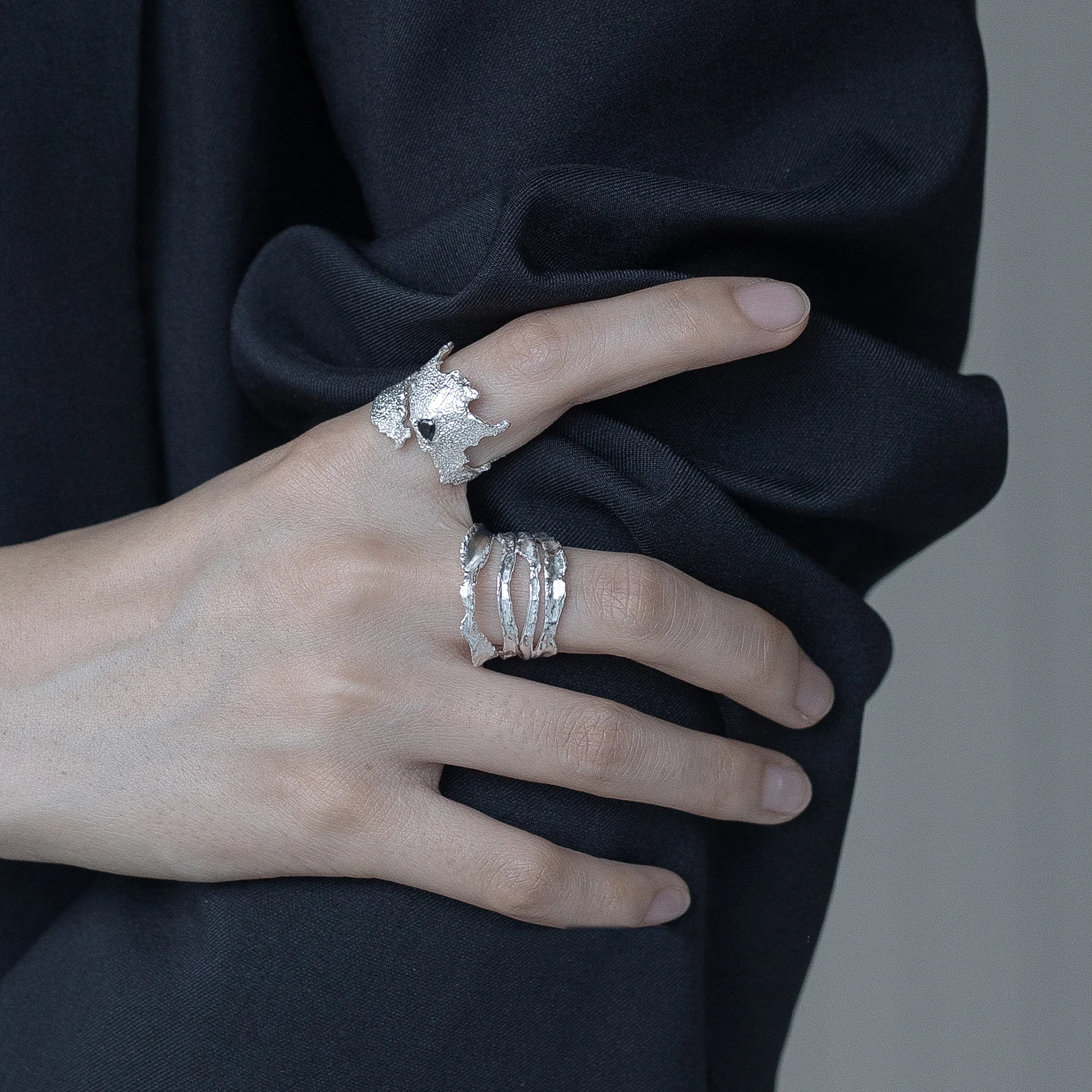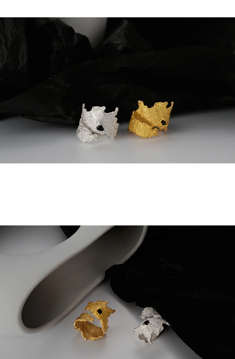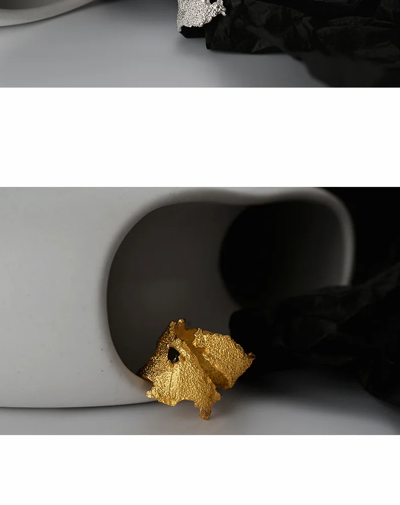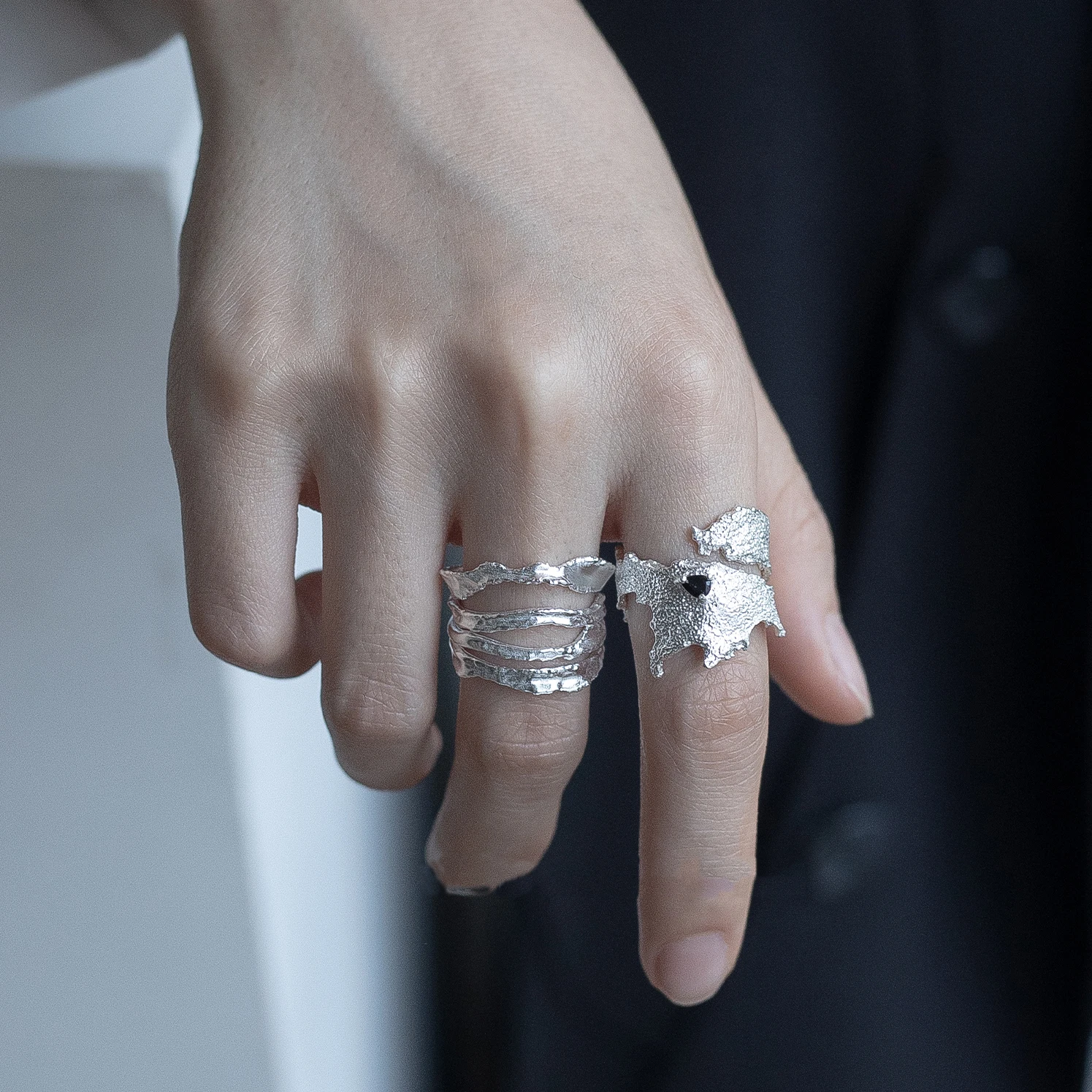 Jewel Type : F.I.N.S Exaggerated Designer S925 Sterling Silver Burned Wrinkle Texture Ring INS Wide Open Black Zircon Index Finger Rings