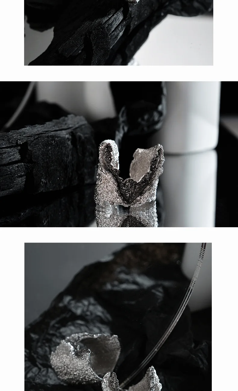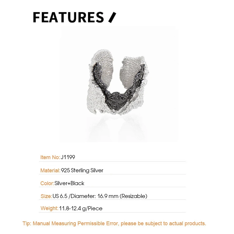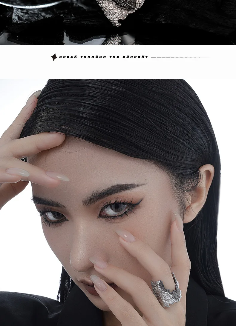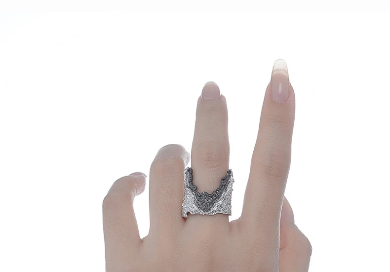 Jewel Type : F.I.N.S Exaggerated S925 Sterling Silver Wrinkle Ring Retro Old Open Contrast Color Index Finger Ring Solid Silver 925 Jewelry