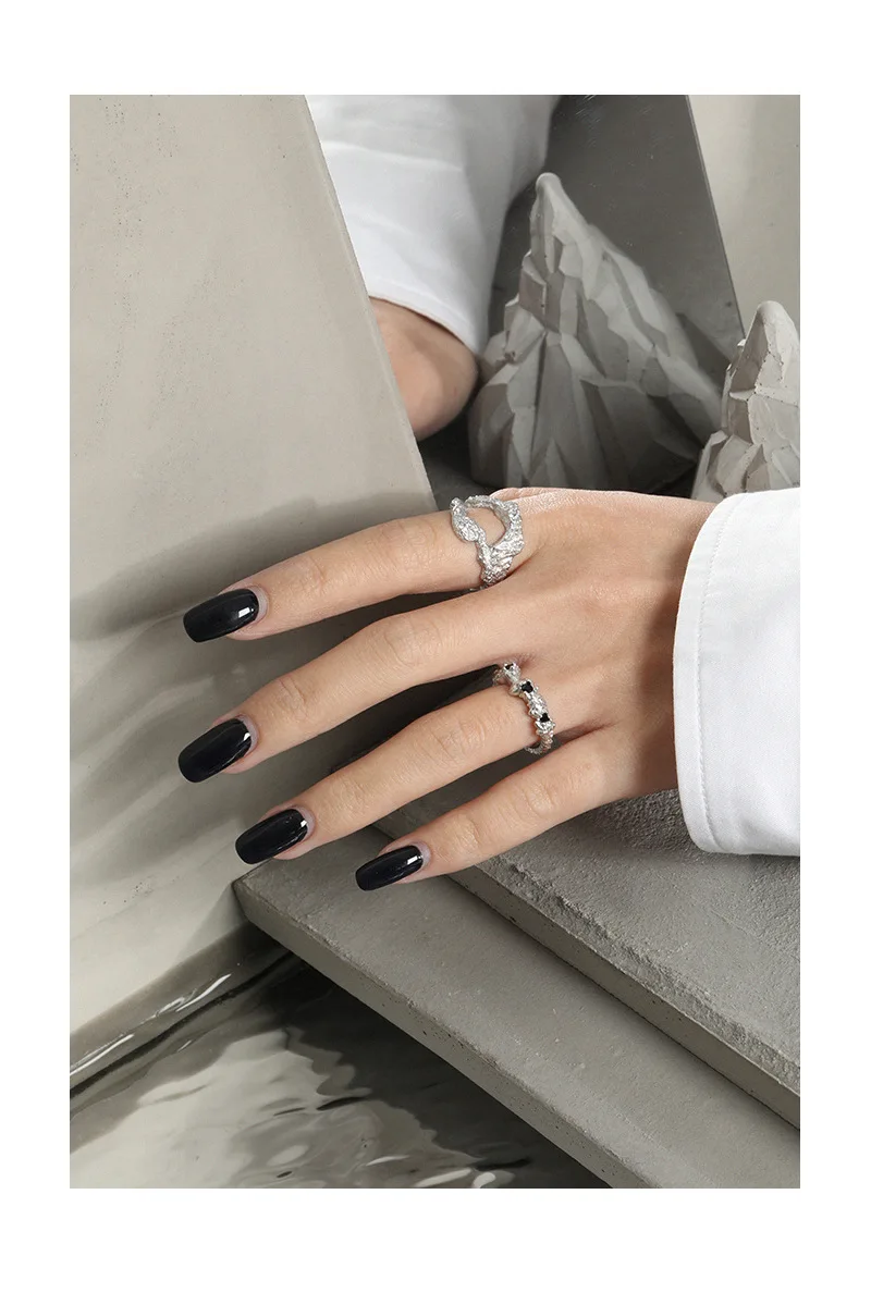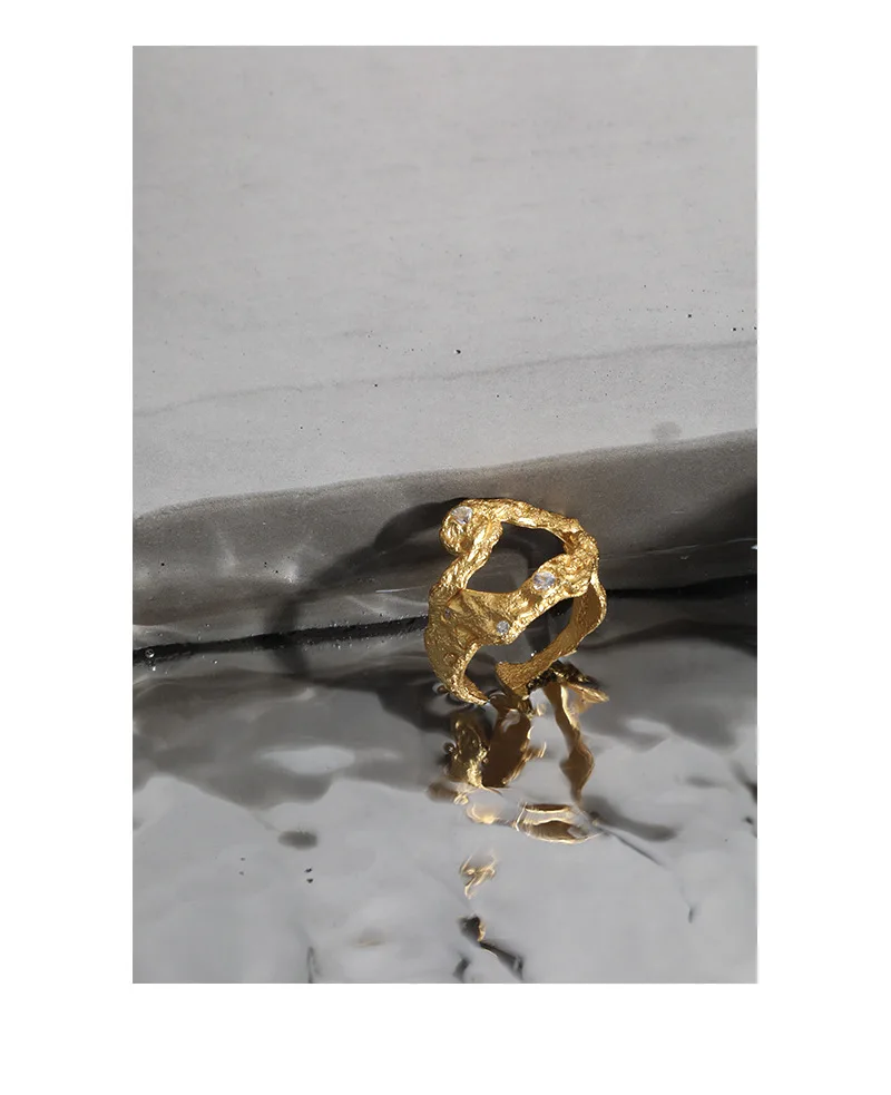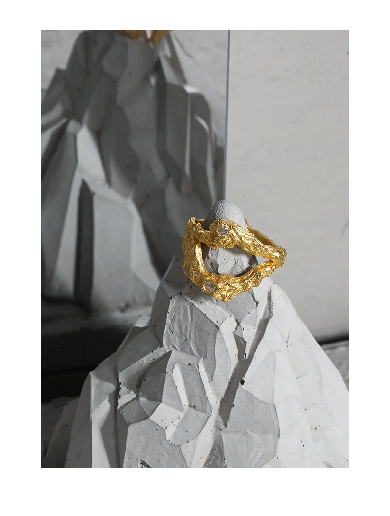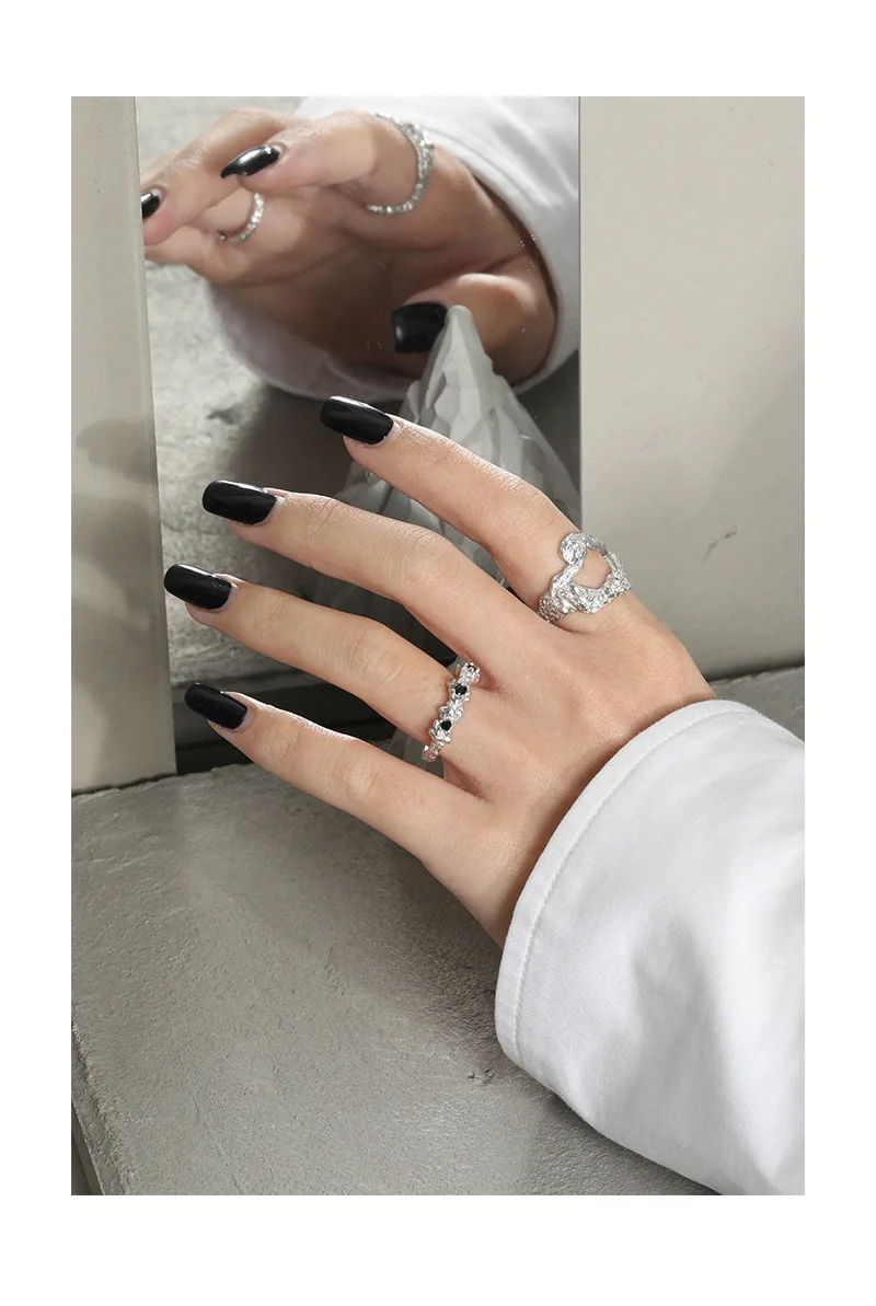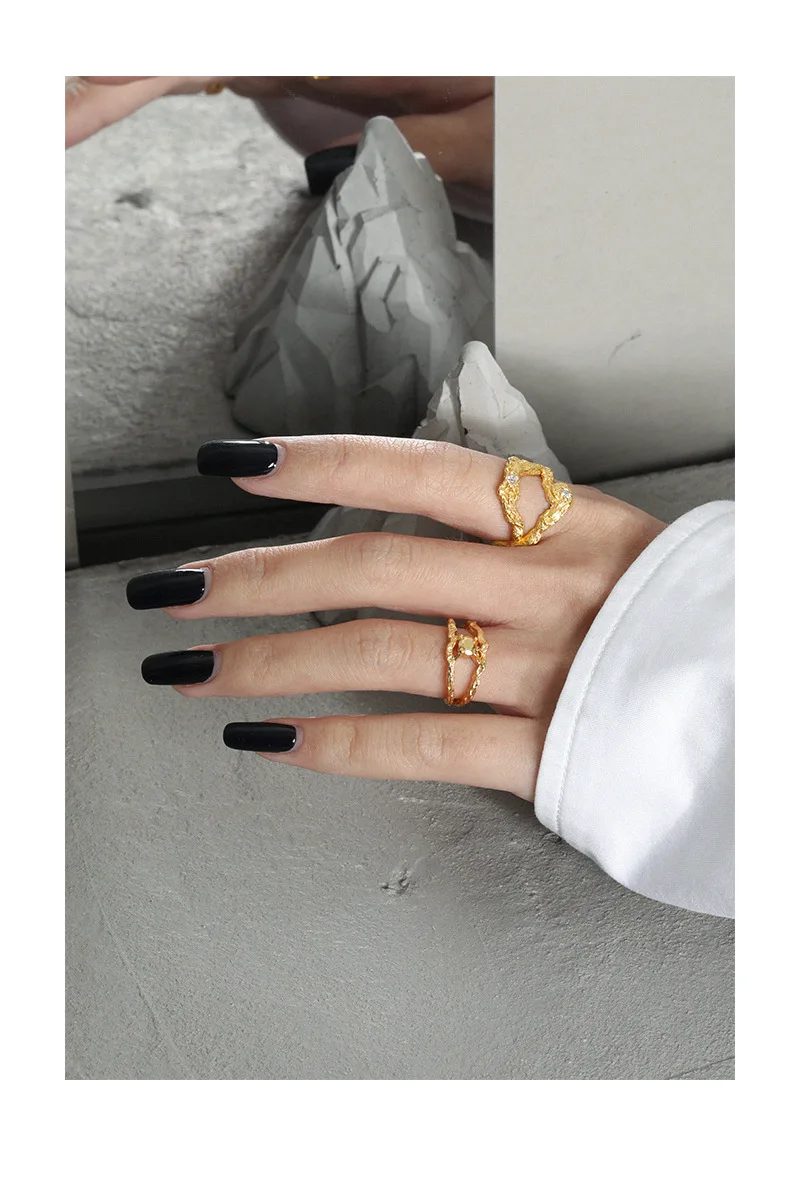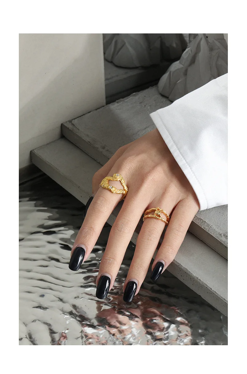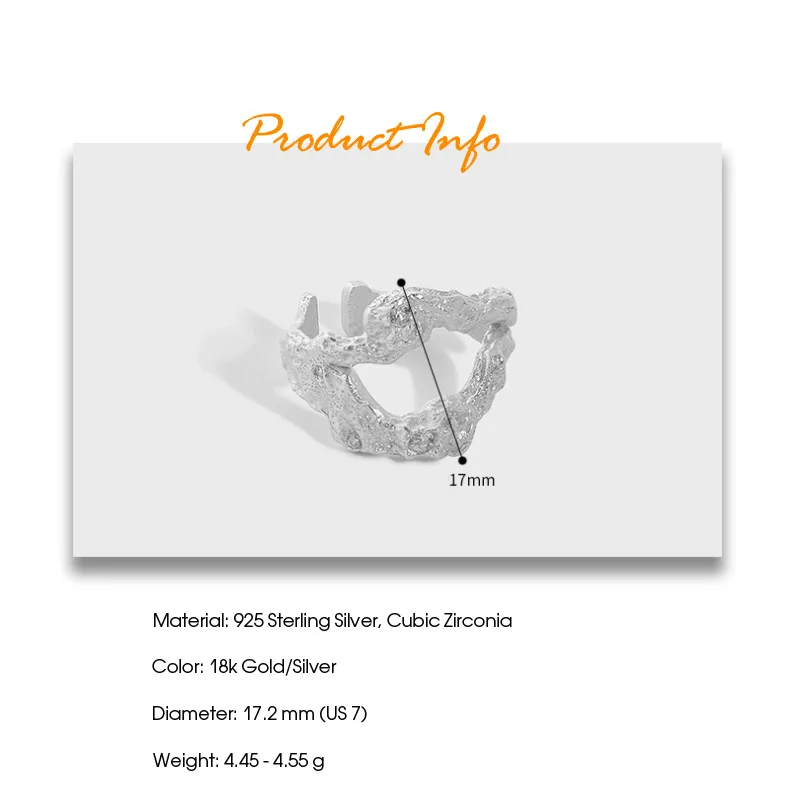 Jewel Type : F.I.N.S Irregular Uneven Zircon 100% S925 Sterling Silver Open Ring Female Hollow Cubic Zirconia Finger Wedding Rings 925