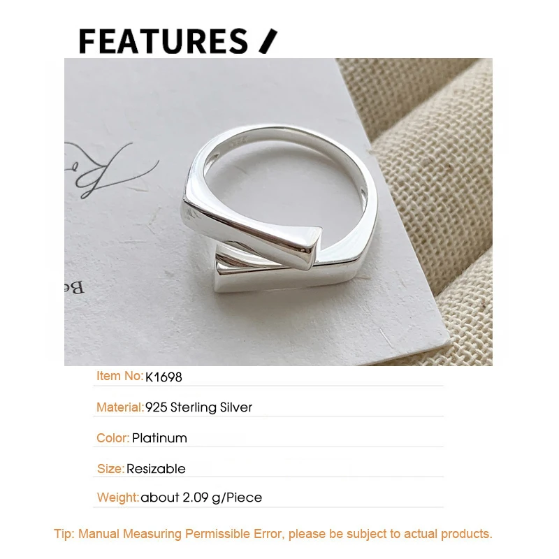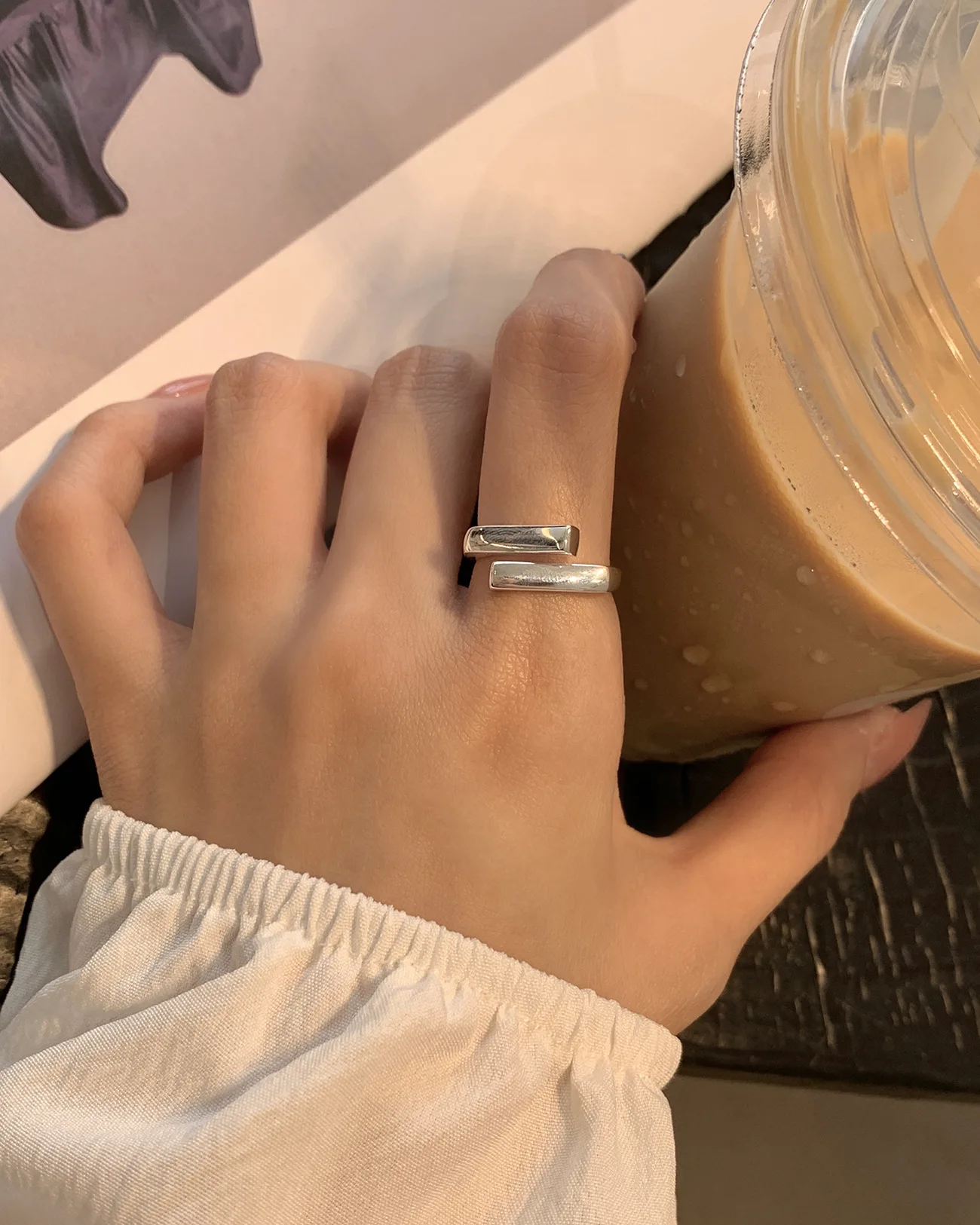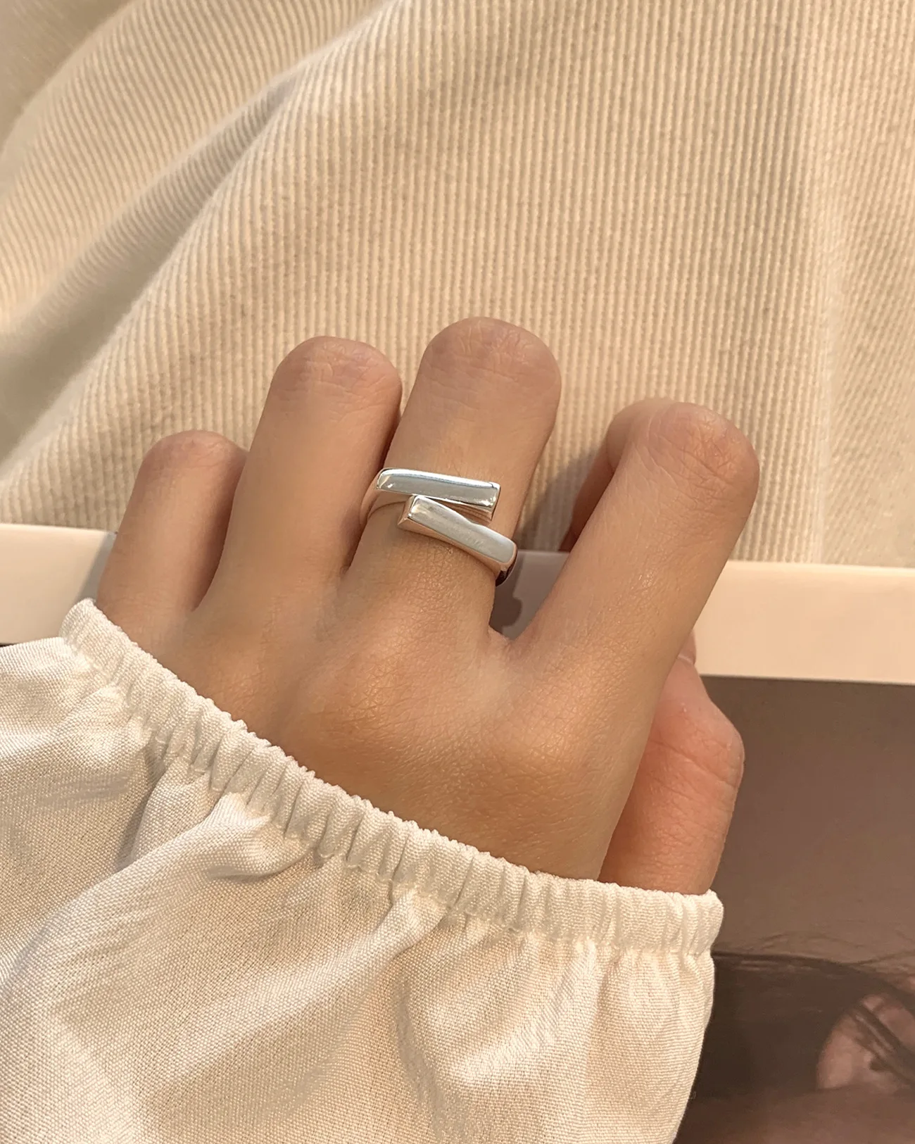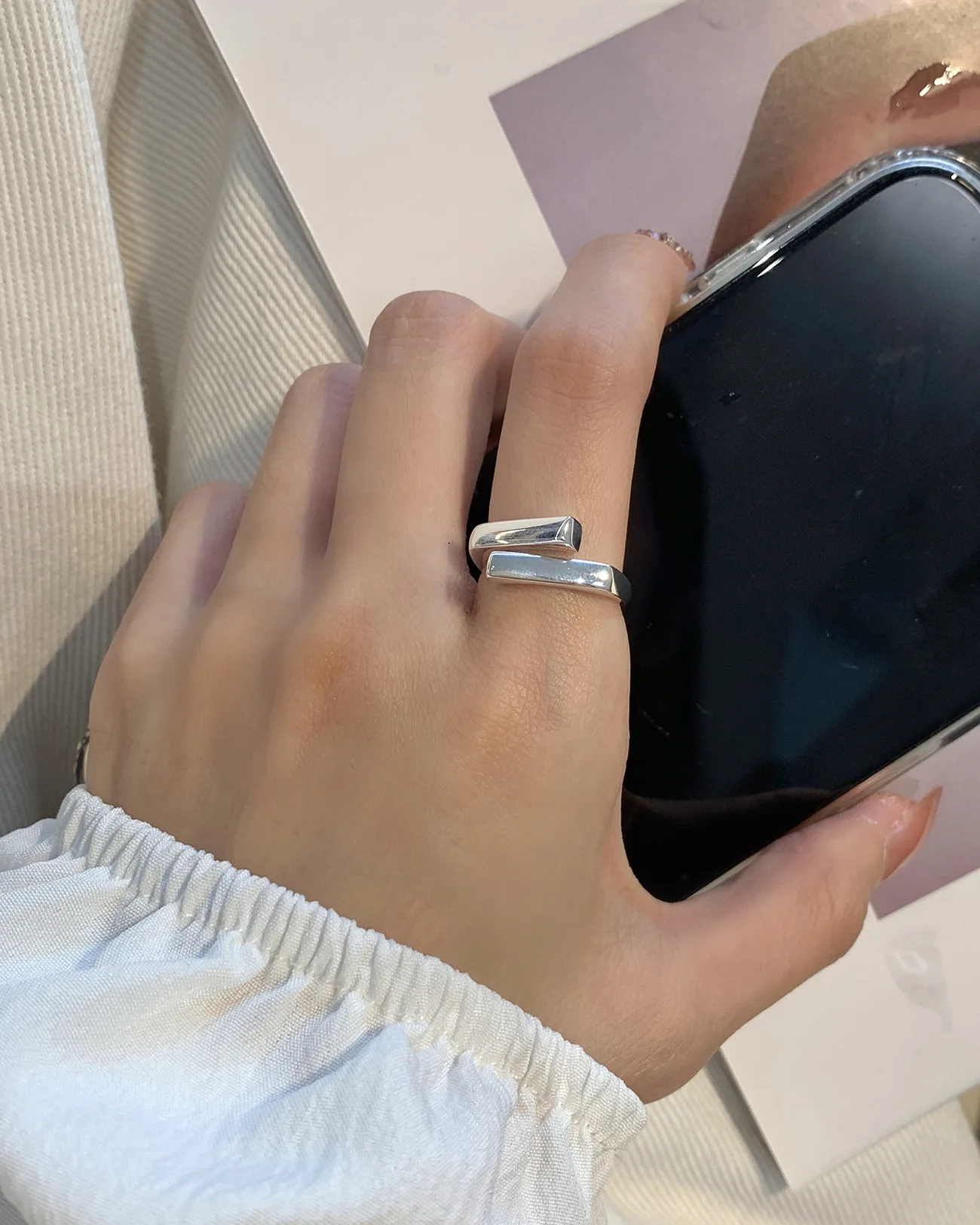 Jewel Type : F.I.N.S Minimalism 925 Sterling Silver Geometric Smooth Overlap Ring Women Open Adjustable Index Finger Fine Jewelry Accessories