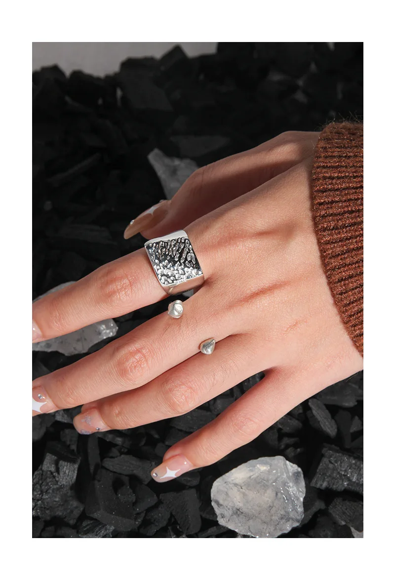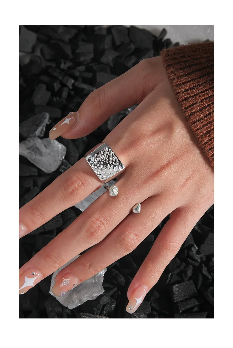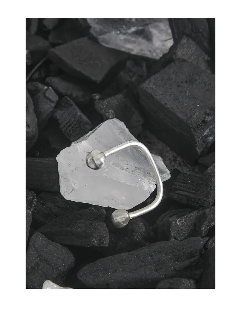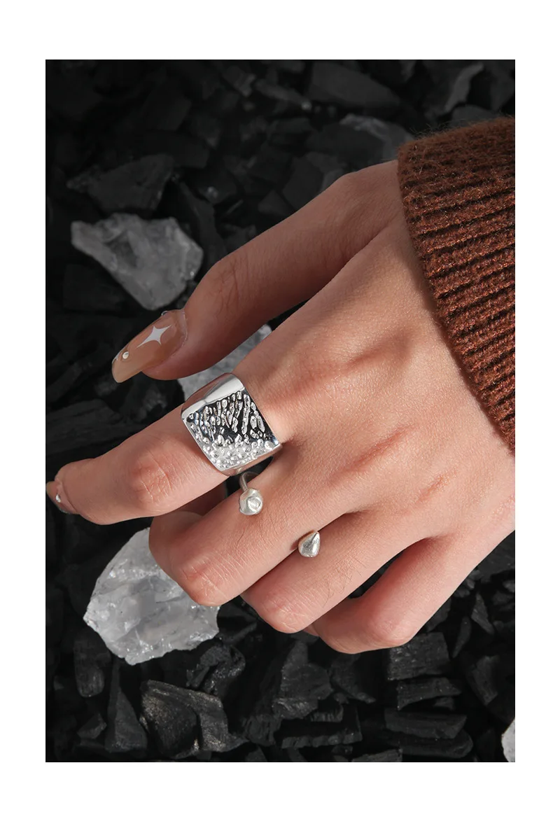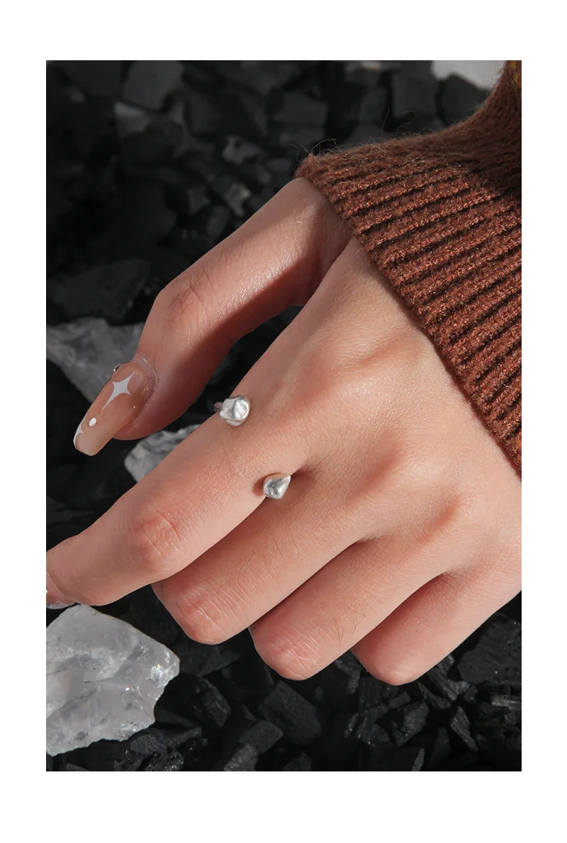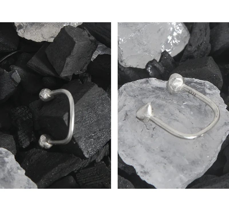 Jewel Type : F.I.N.S Minimalist Korean INS Design Irregular U-Shaped S925 Sterling Silver Index Finger Ring Open Adjustable Bead Ball Rings