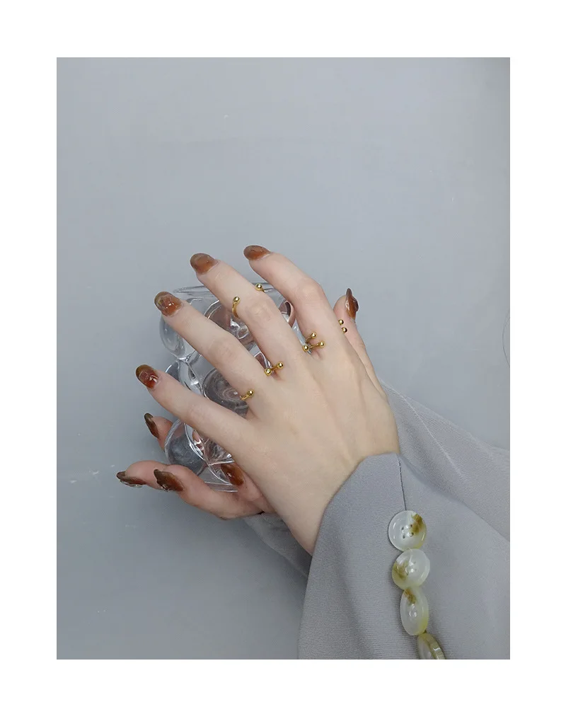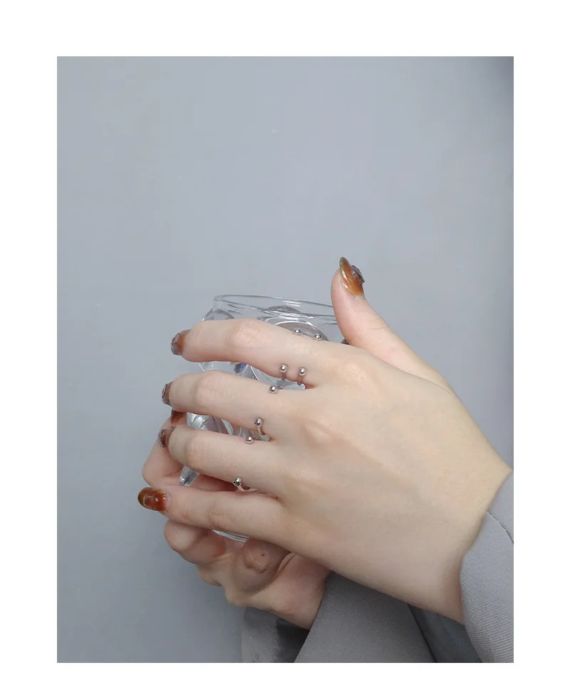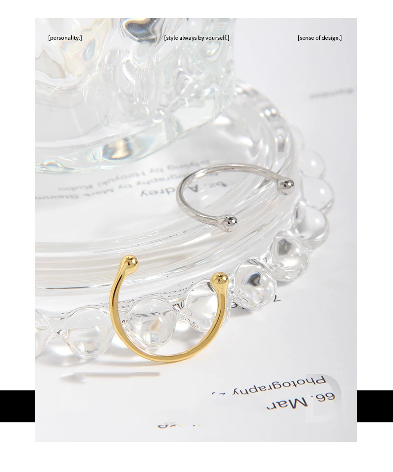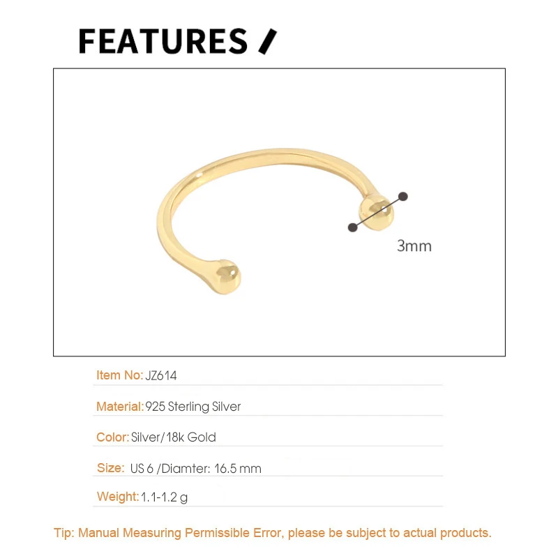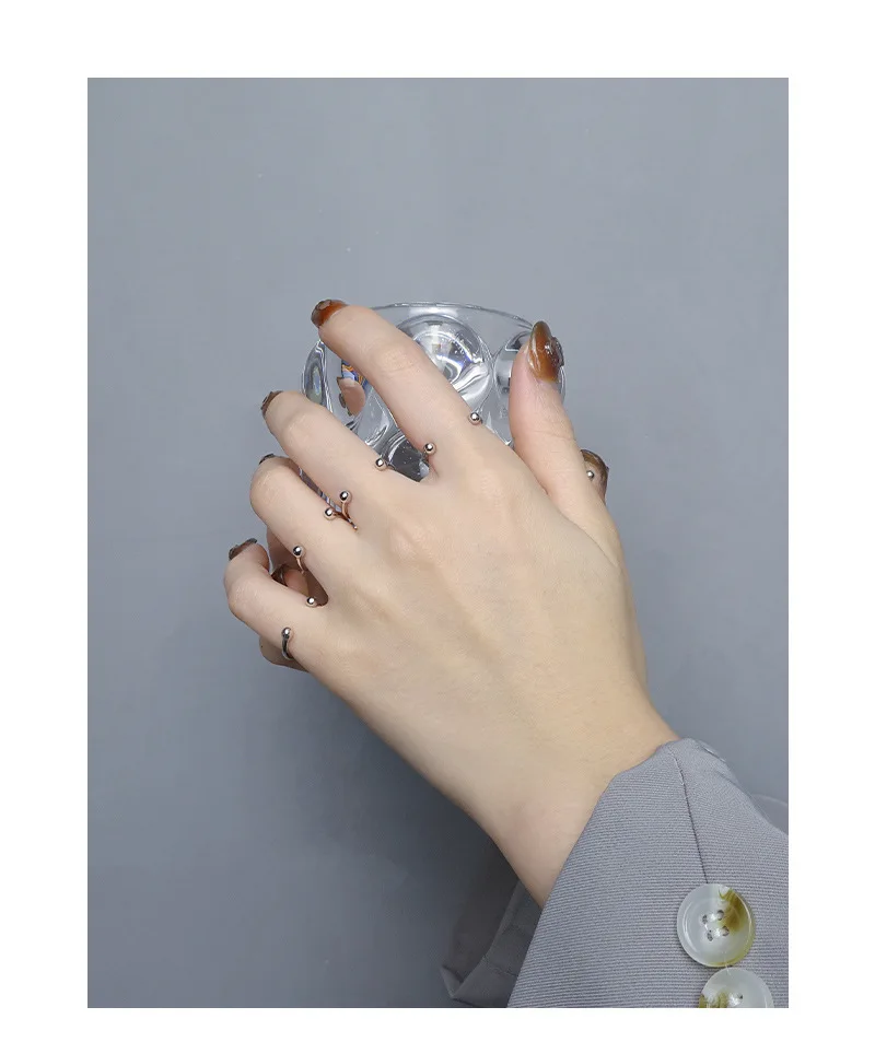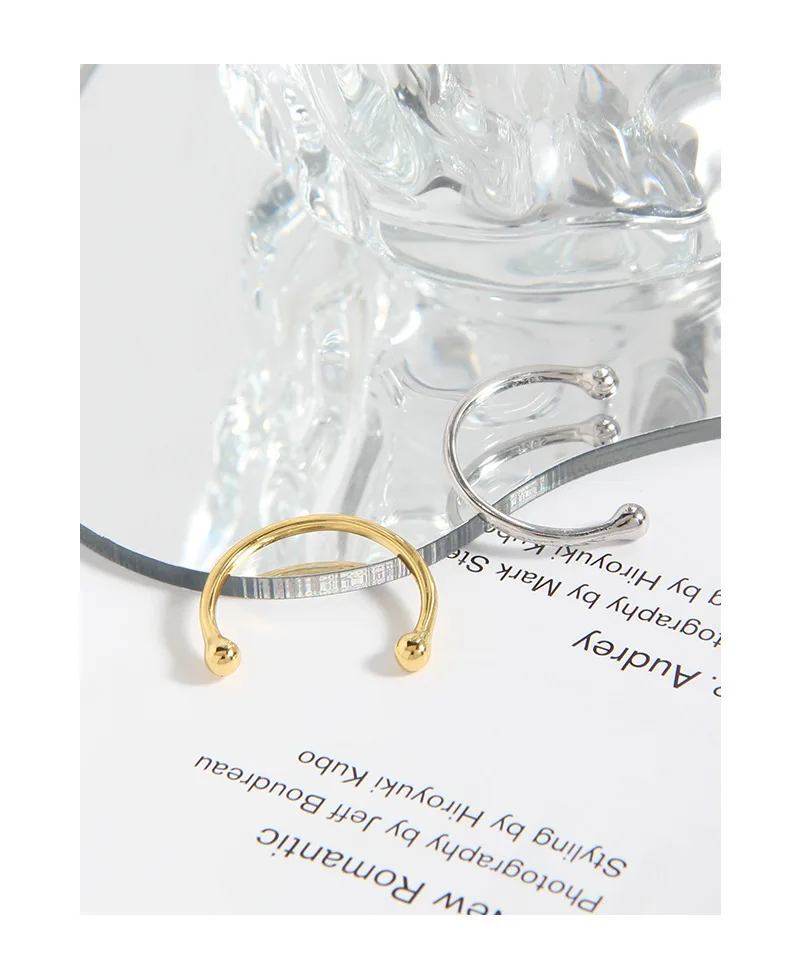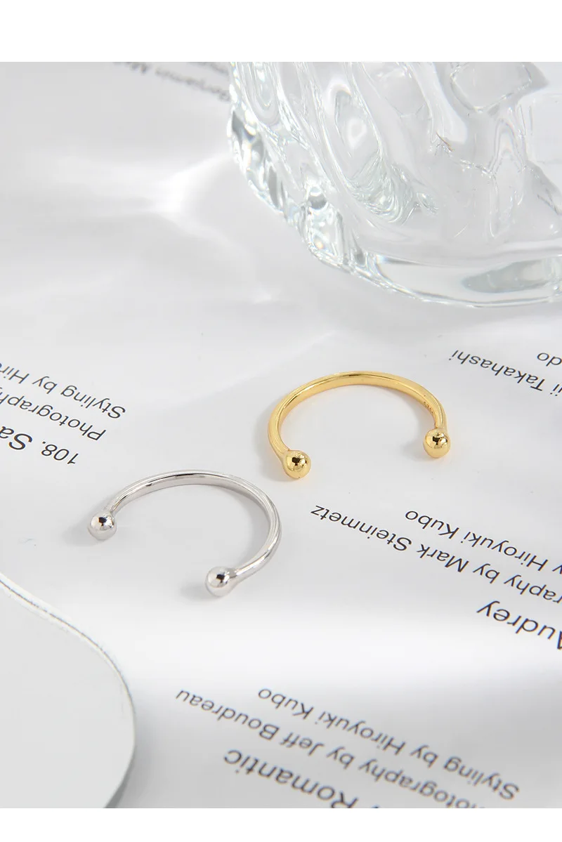 Jewel Type : F.I.N.S Minimalist S925 Sterling Silver Geometric Small Bead Open Line Ring Stacking Knuckle Adjustable Finger Rings Fine Jewels