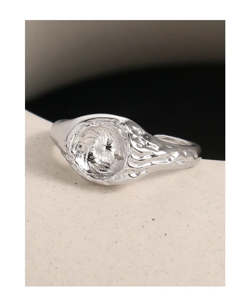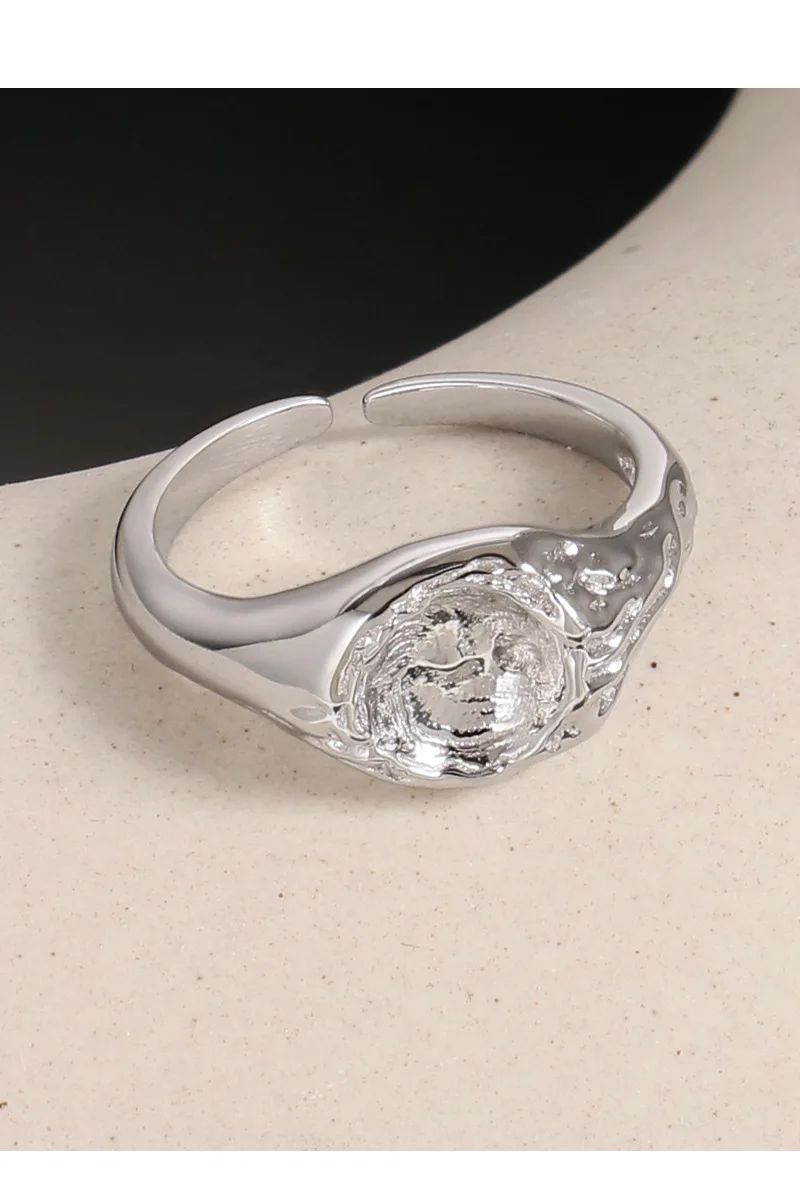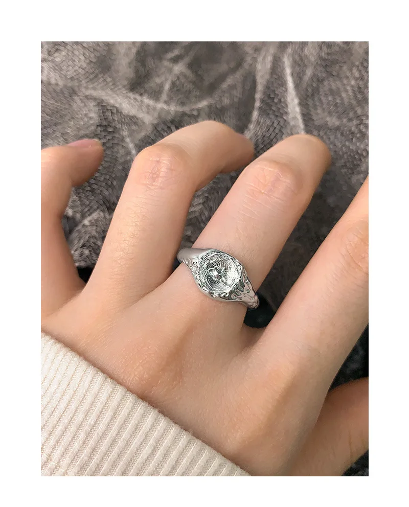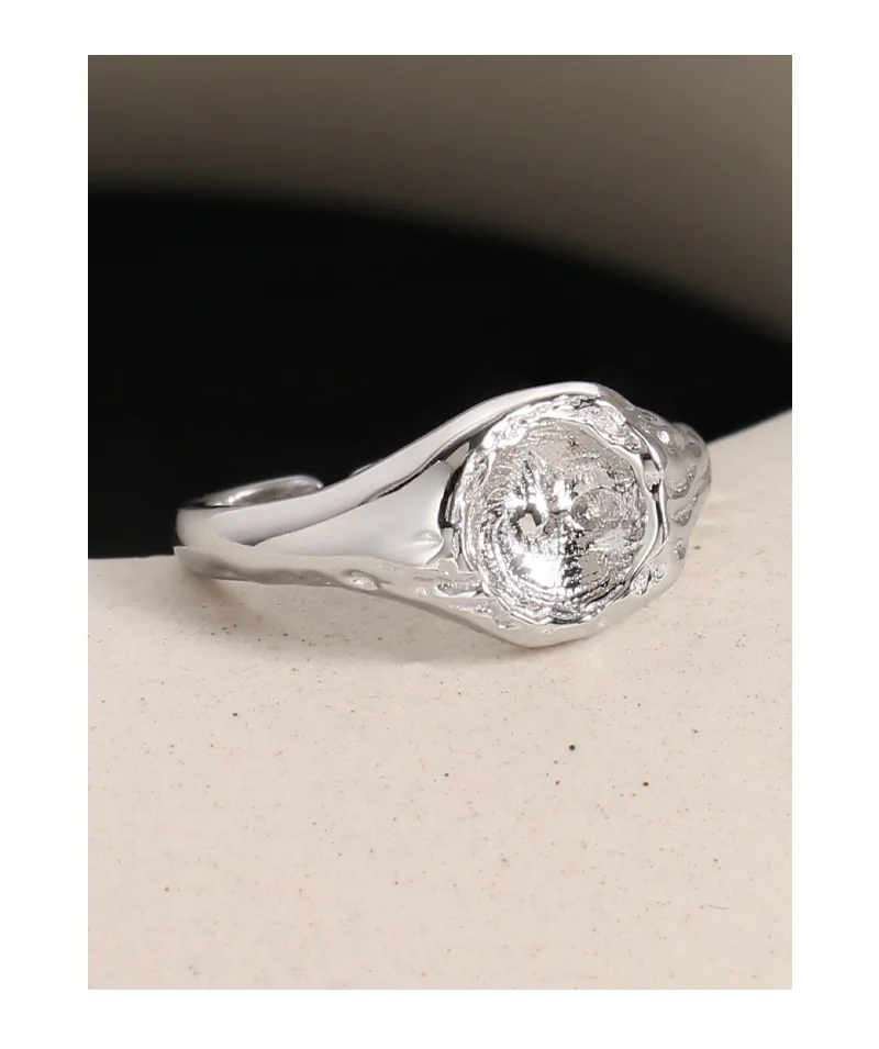 Jewel Type : F.I.N.S Original Design Lunar Surface Uneven S925 Sterling Silver Opening Ring Resizable Chunky Finger Fine Jewelry Accessories