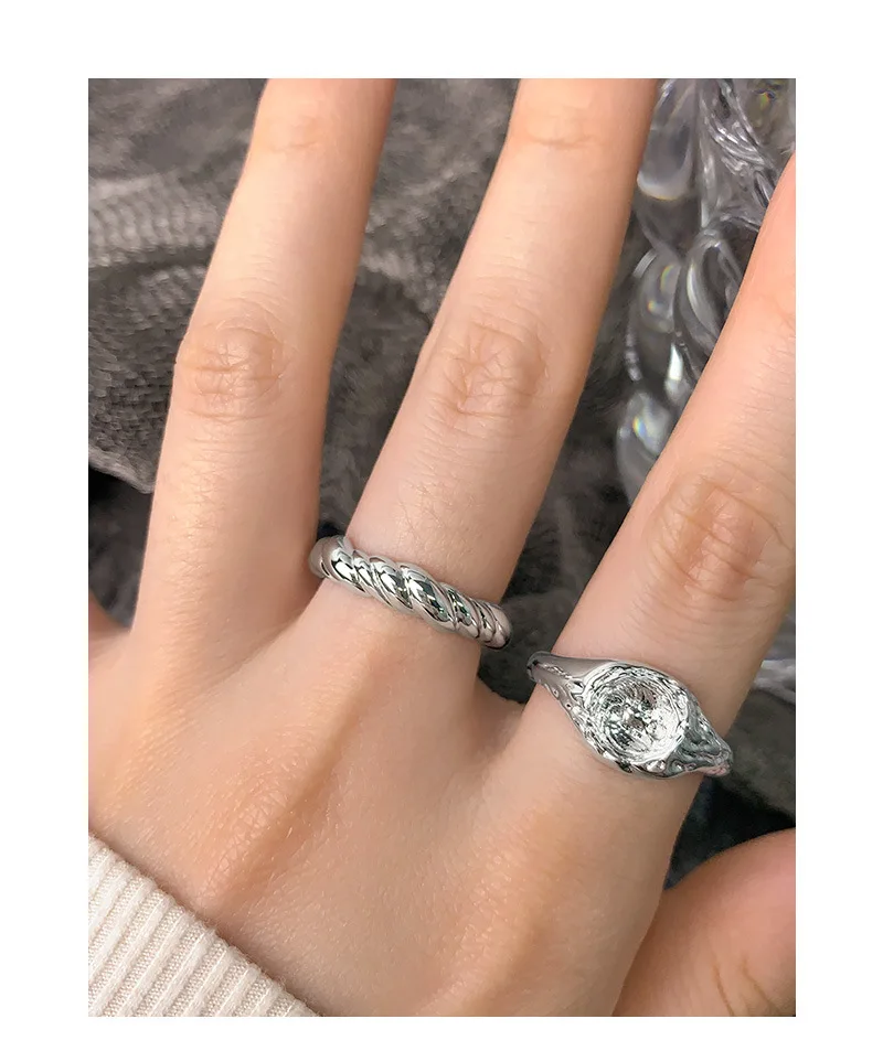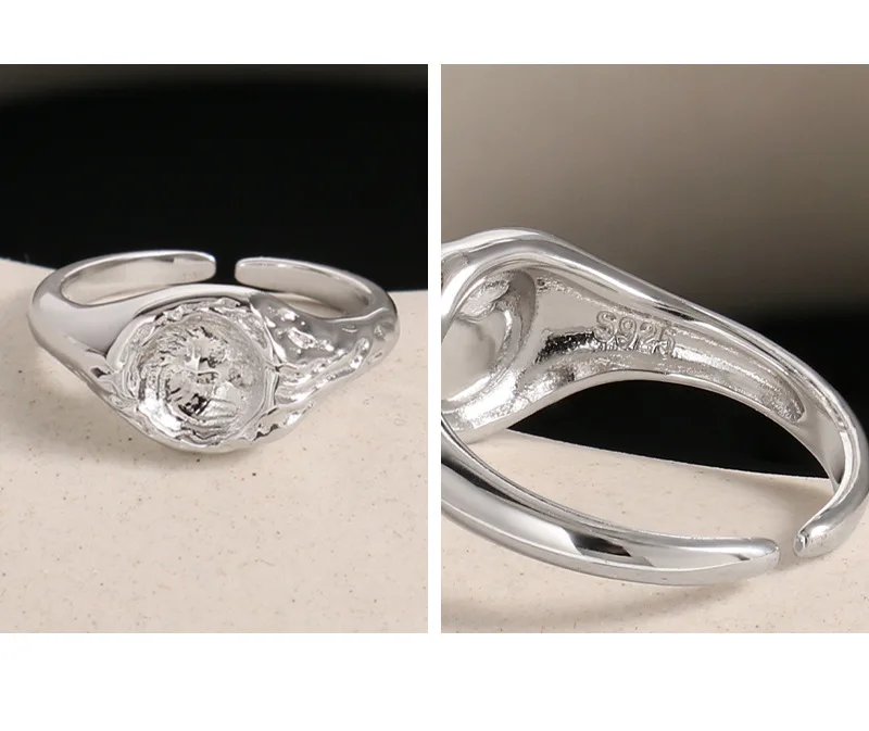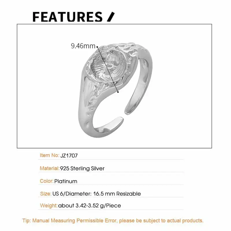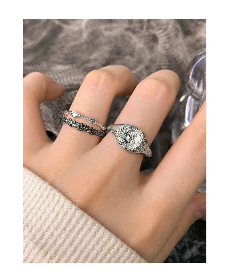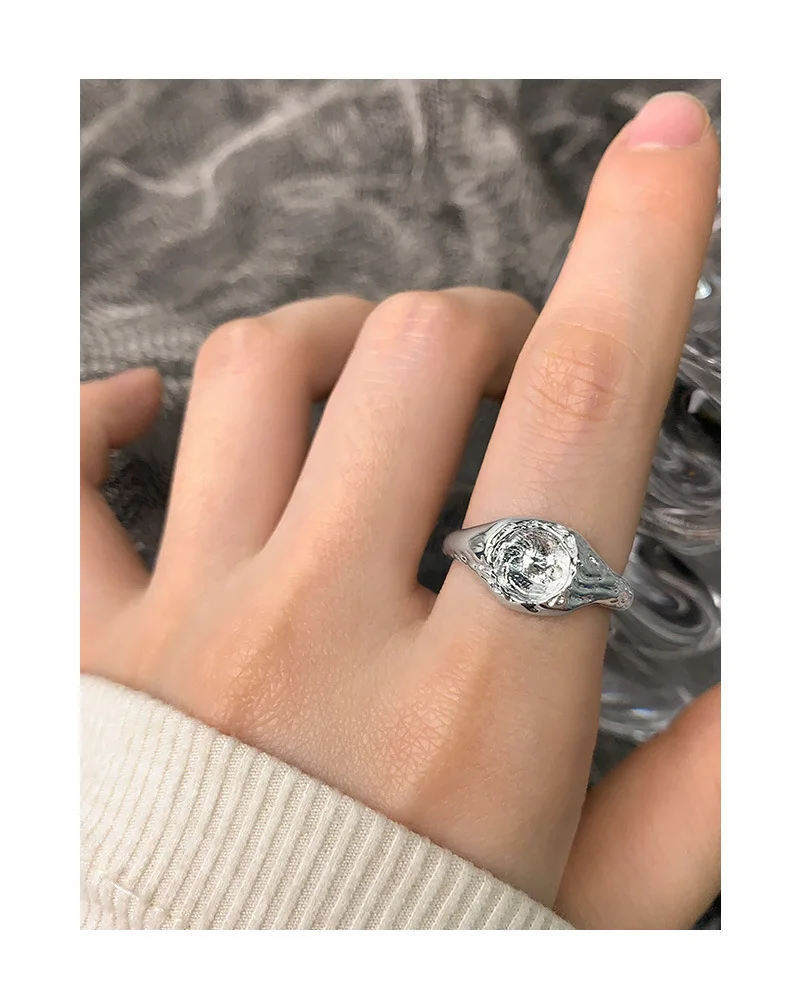 Jewel Type : F.I.N.S Original Design Lunar Surface Uneven S925 Sterling Silver Opening Ring Resizable Chunky Finger Fine Jewelry Accessories