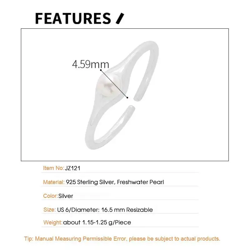 Jewel Type : F.I.N.S Original Elegant S925 Sterling Silver Ring Culture Freshwater Pearl Open Resizable Mid Finger Wedding Party Fine Jewelry