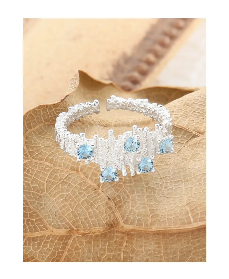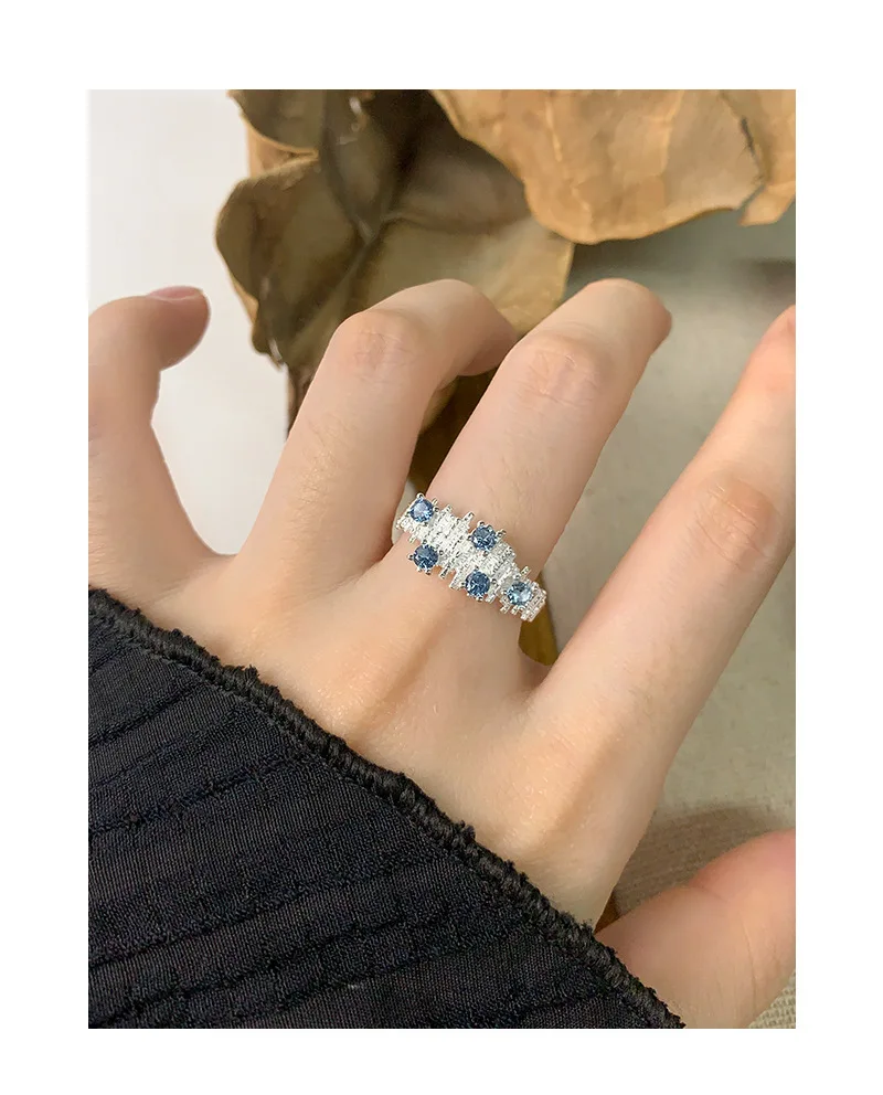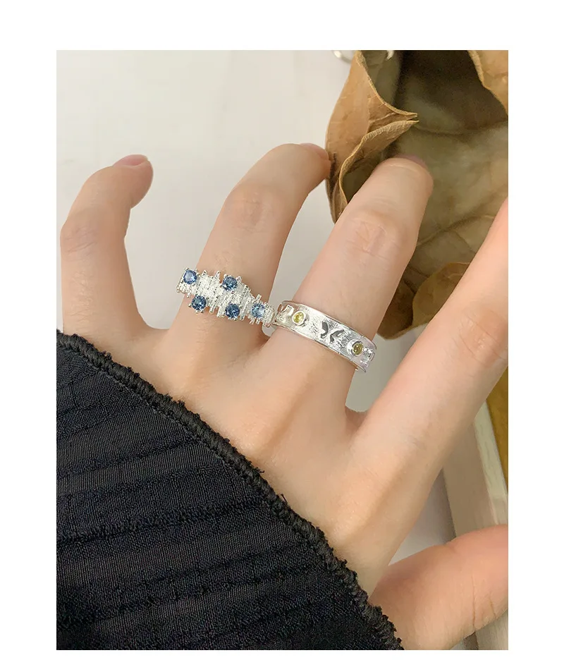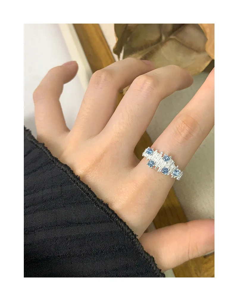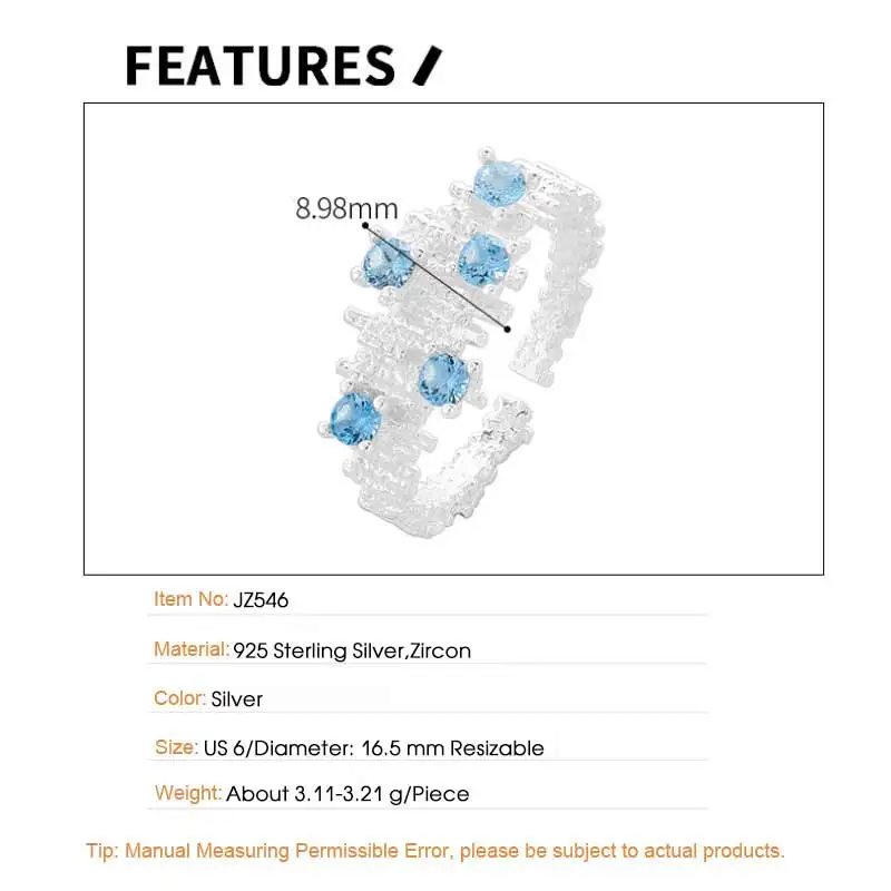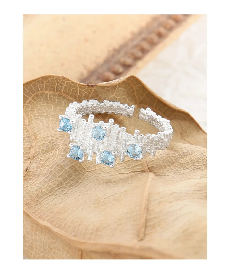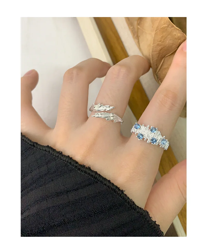 Jewel Type : F.I.N.S Original Irregular Fold Blue Zirconia S925 Sterling Silver Open Ring Luxury Adjustable Mid Finger Fine Jewelry For Party