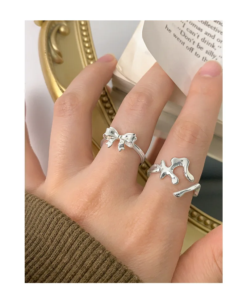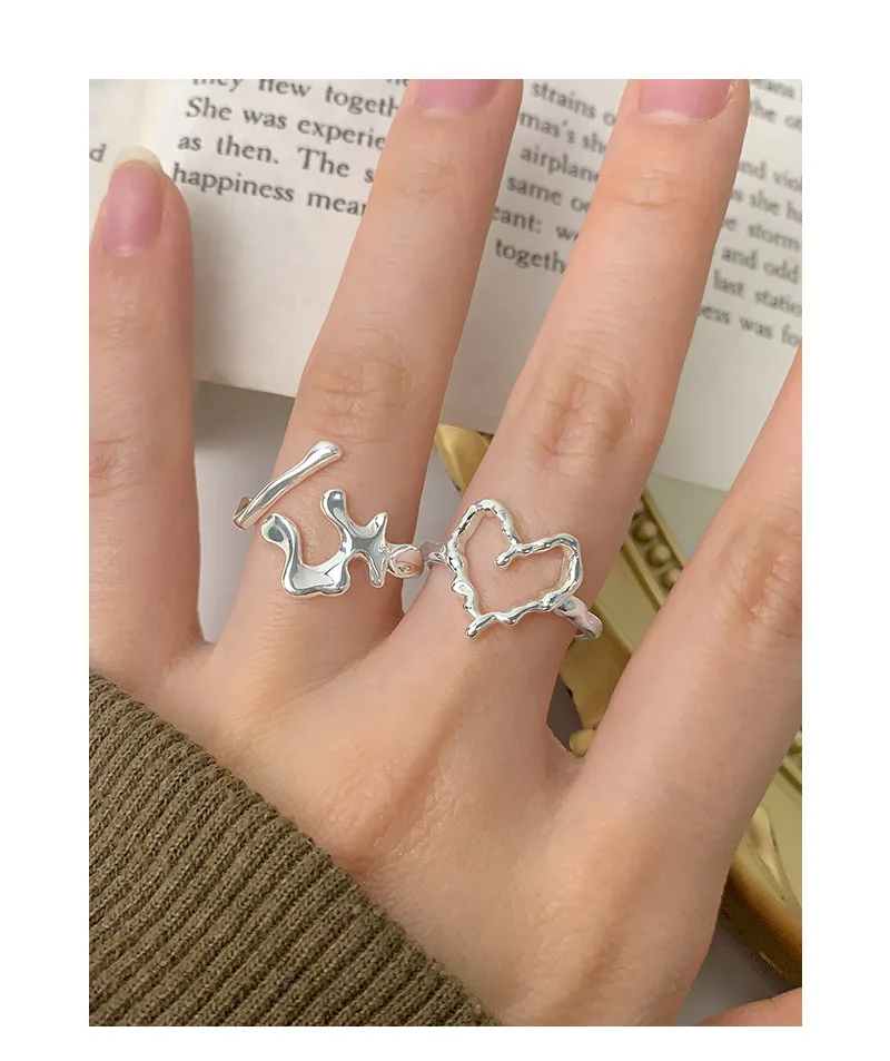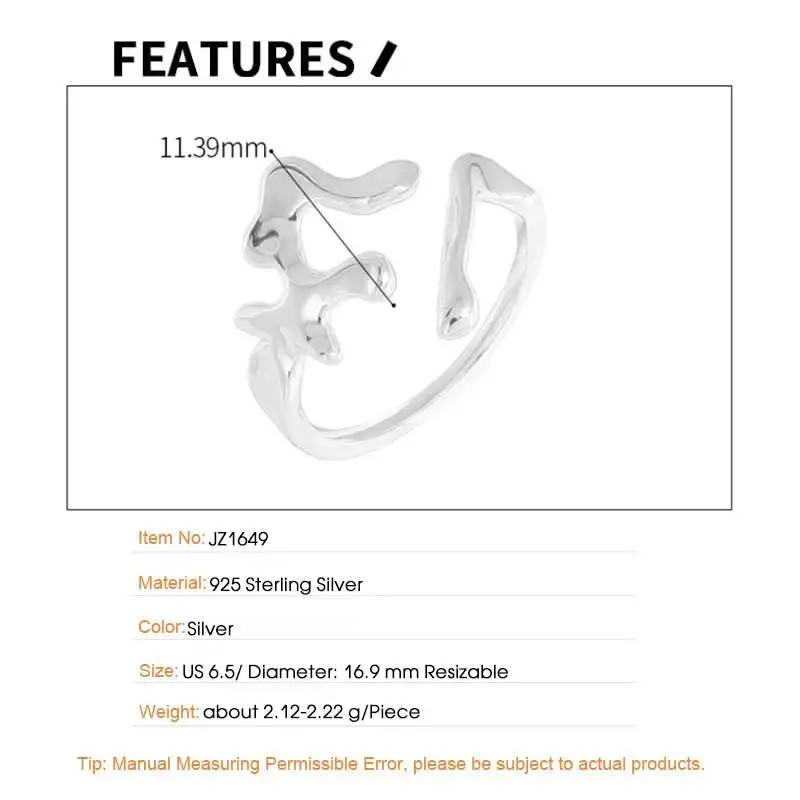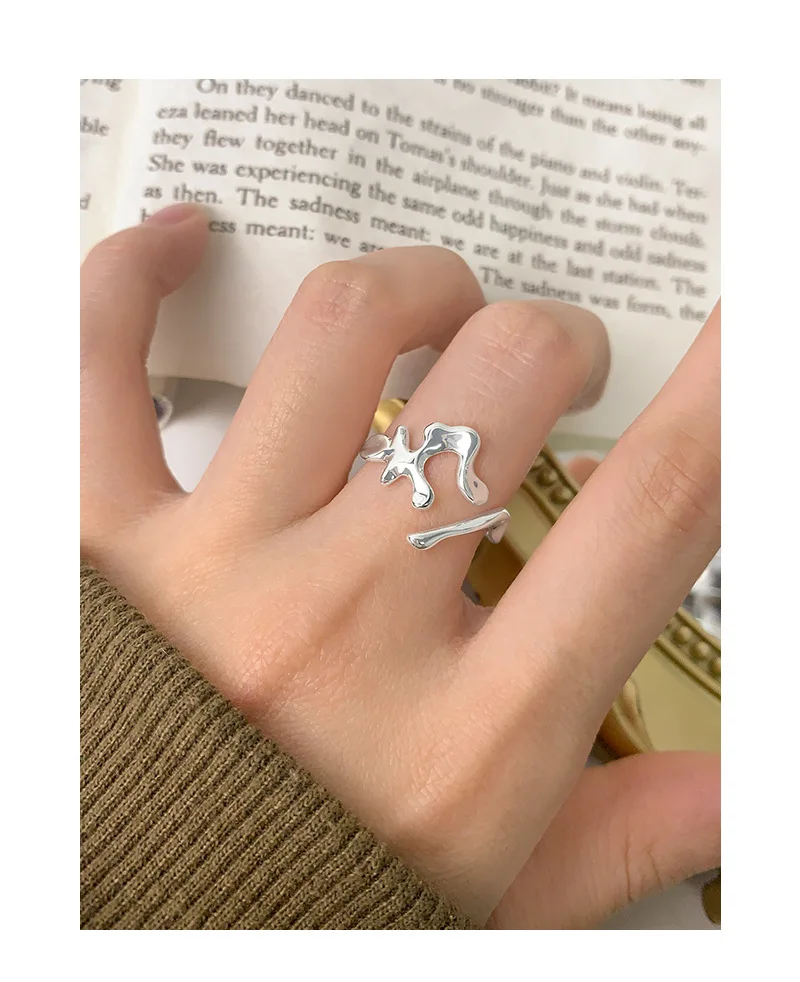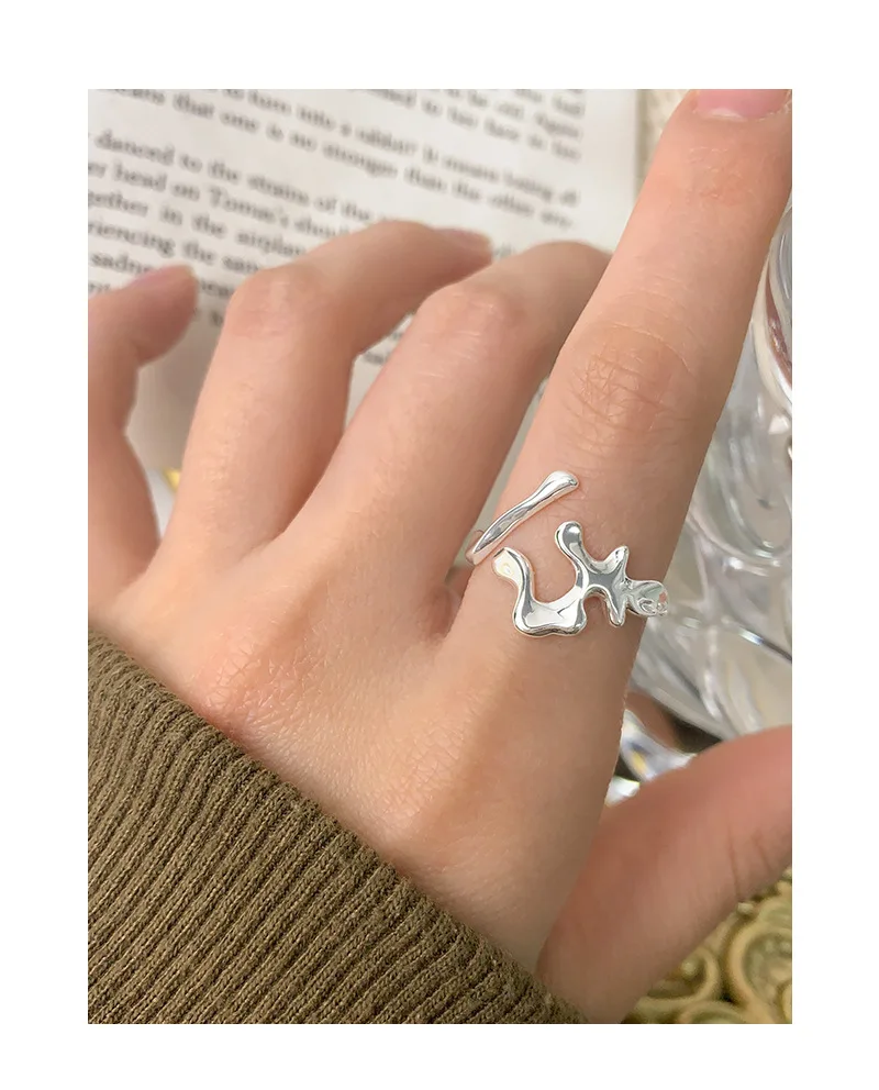 Jewel Type : F.I.N.S Original Minimalism 925 Sterling Silver Open Ring Irregular Smooth Adjustable Index Mid Finger Fine Jewelry Anti-Allergy