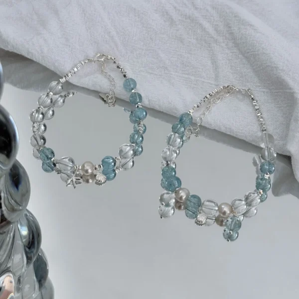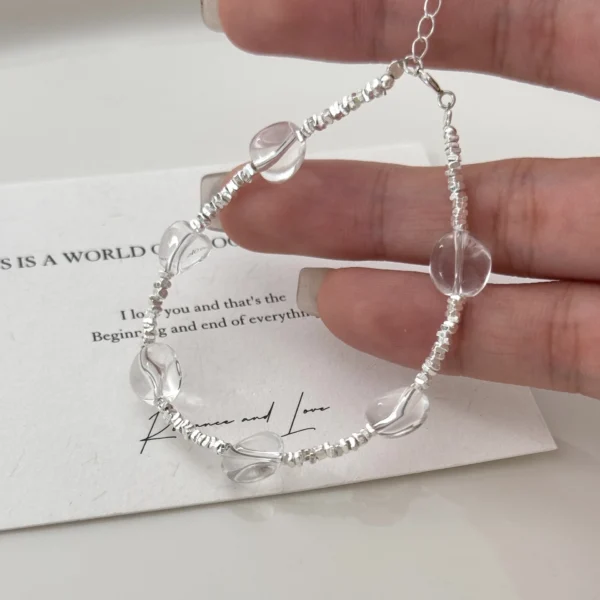 S925 Silver-white Crystal Pearl Broken Silver Brac...
