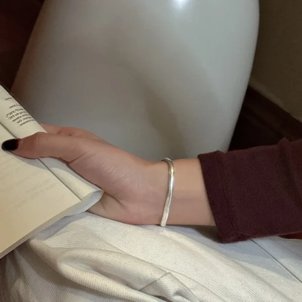S925 Sterling Silver Snake Bone Wide Edge Design B...