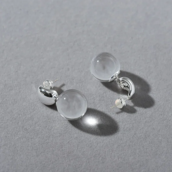 Crystal Glass Ball Drop Earrings with Plated Ear P...