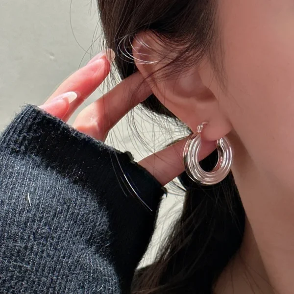 S925 Sterling Silver Korean Heavy Industry Big U-s...