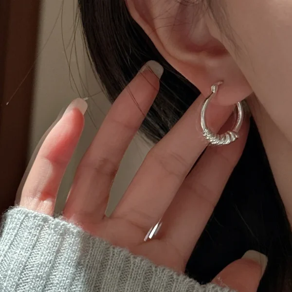 S925 Sterling Silver Irregular C-shaped Twist Bar ...