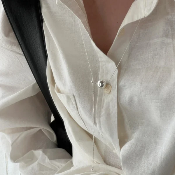 S925 Sterling Silver Bead Passepartout Long Neckla...