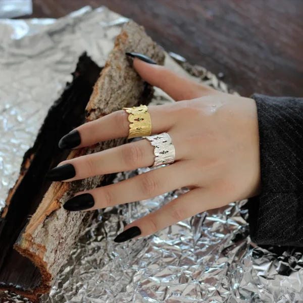 MLKENLY Blue Zircon Inlaid Hollow Burnt Finger Rin...