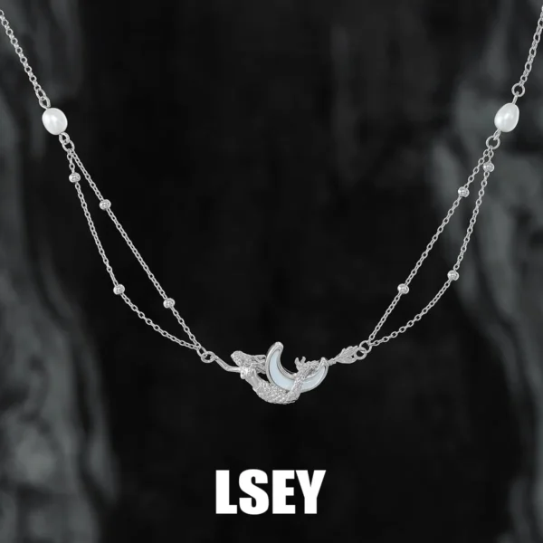 MLKENLY S925 sterling silver Mermaid Moon White Sh...