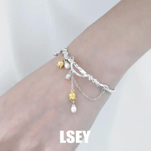 MLKENLY S925 sterling silver Two tone Lily Bracele...