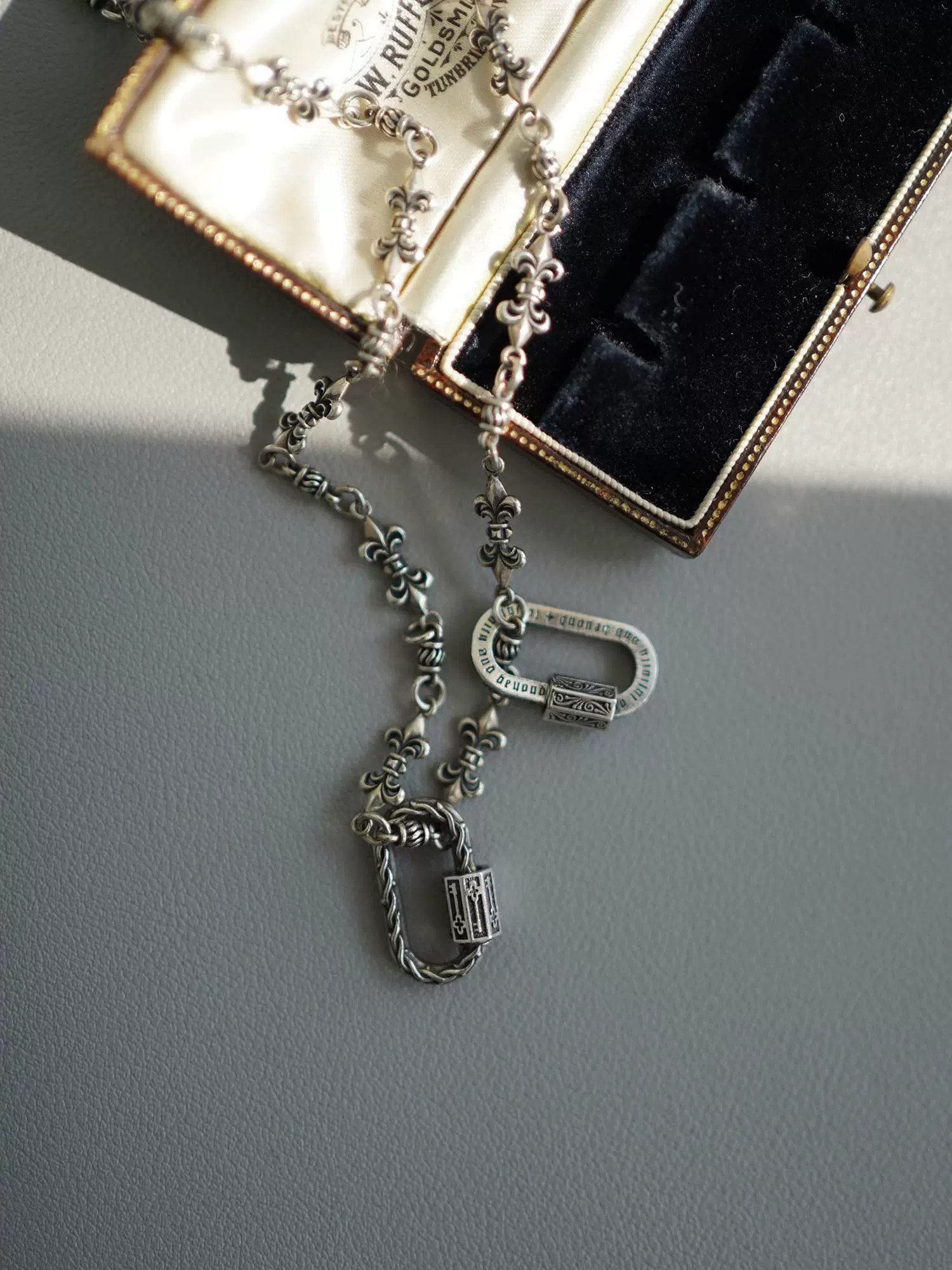 睡莲生生世世 原创设计925纯银调节扣吊坠英文钥匙荆棘元素挂坠