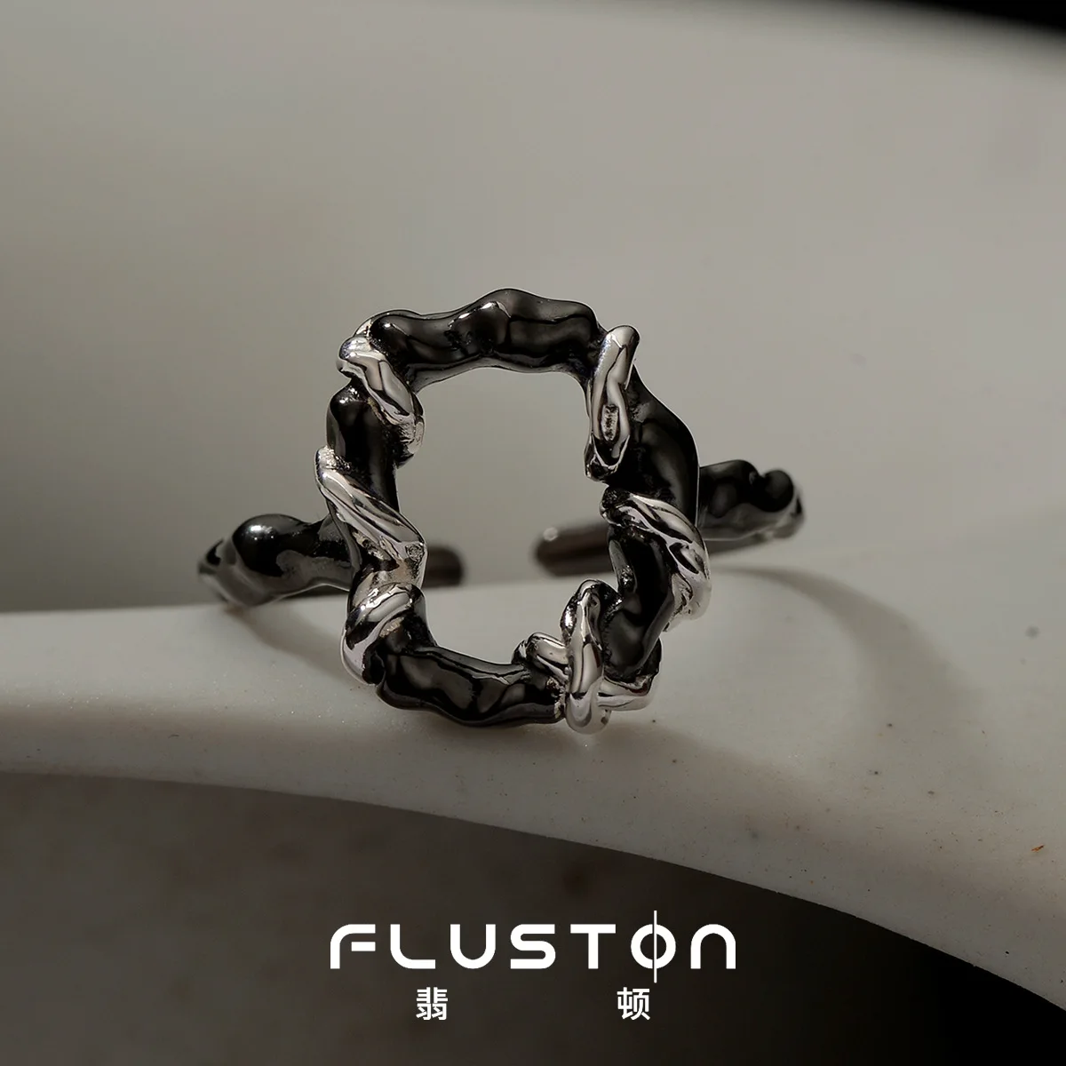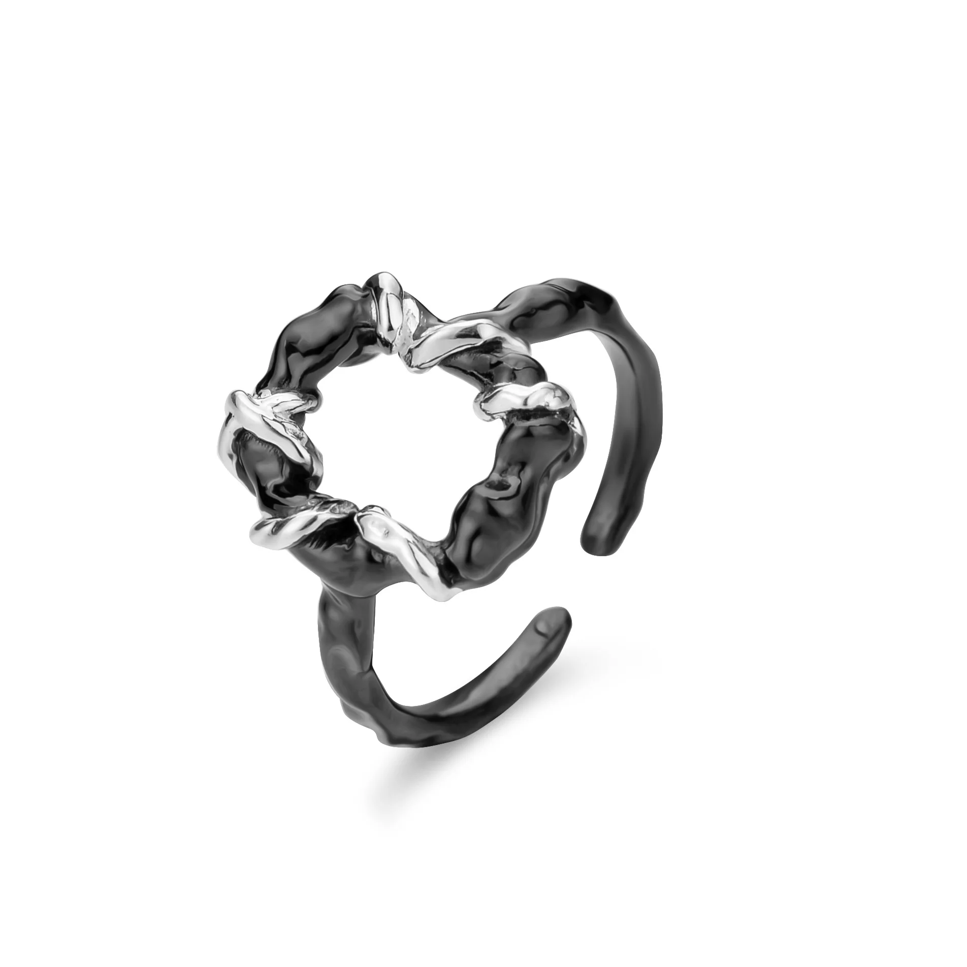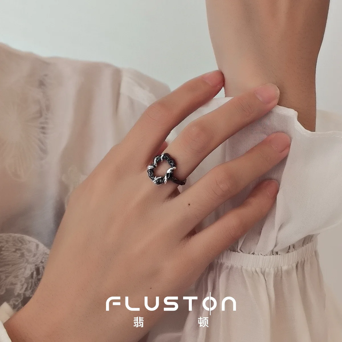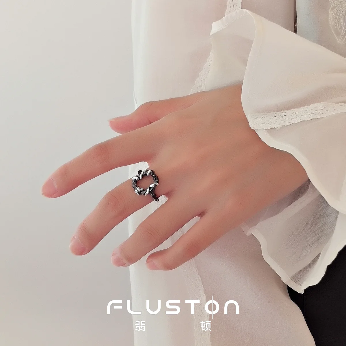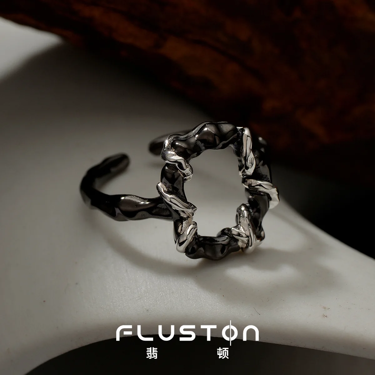 0221 CHOZON S925 Solid Silver Blackened Frame Ring Ancient Technique Wholesale Stacking Jewelry for Women