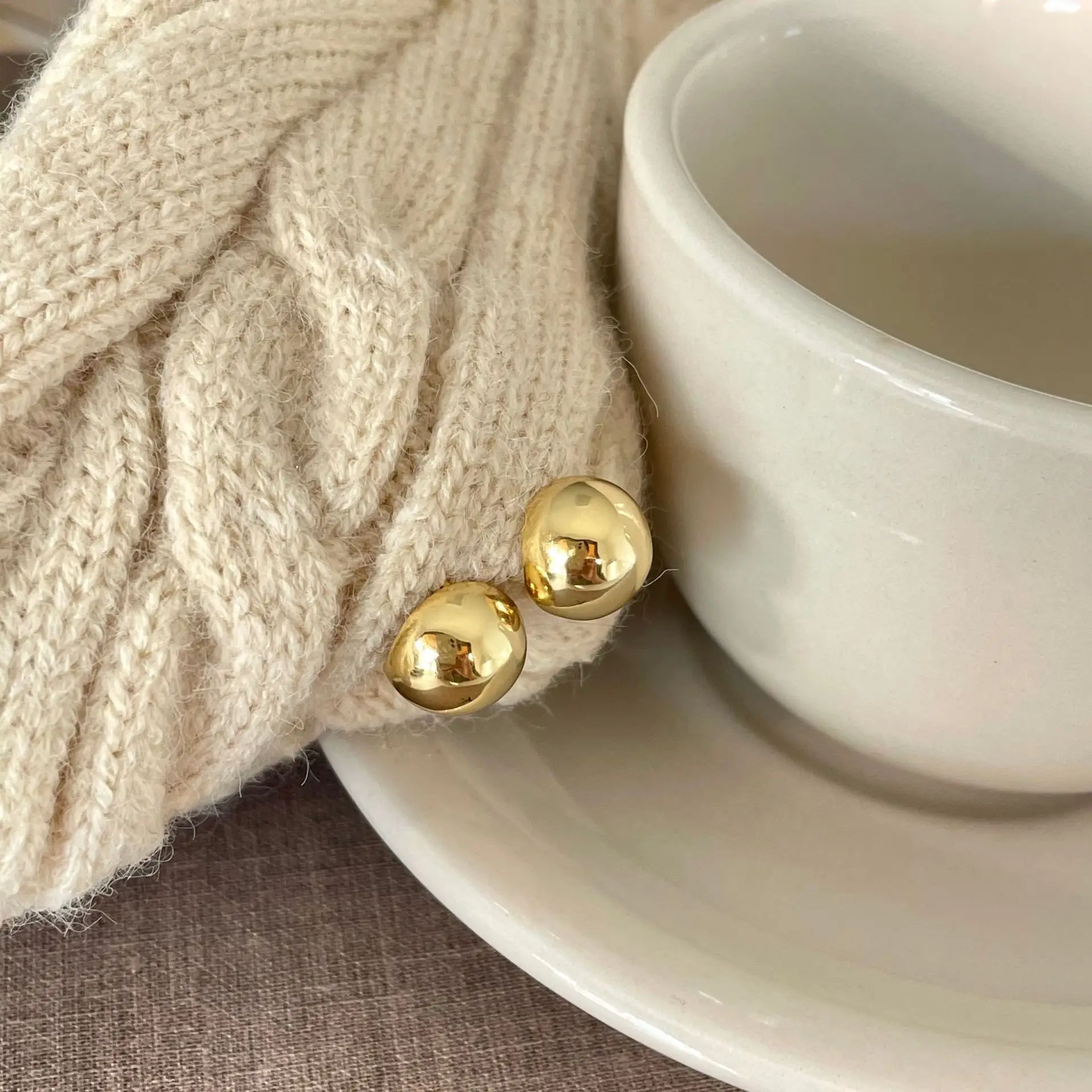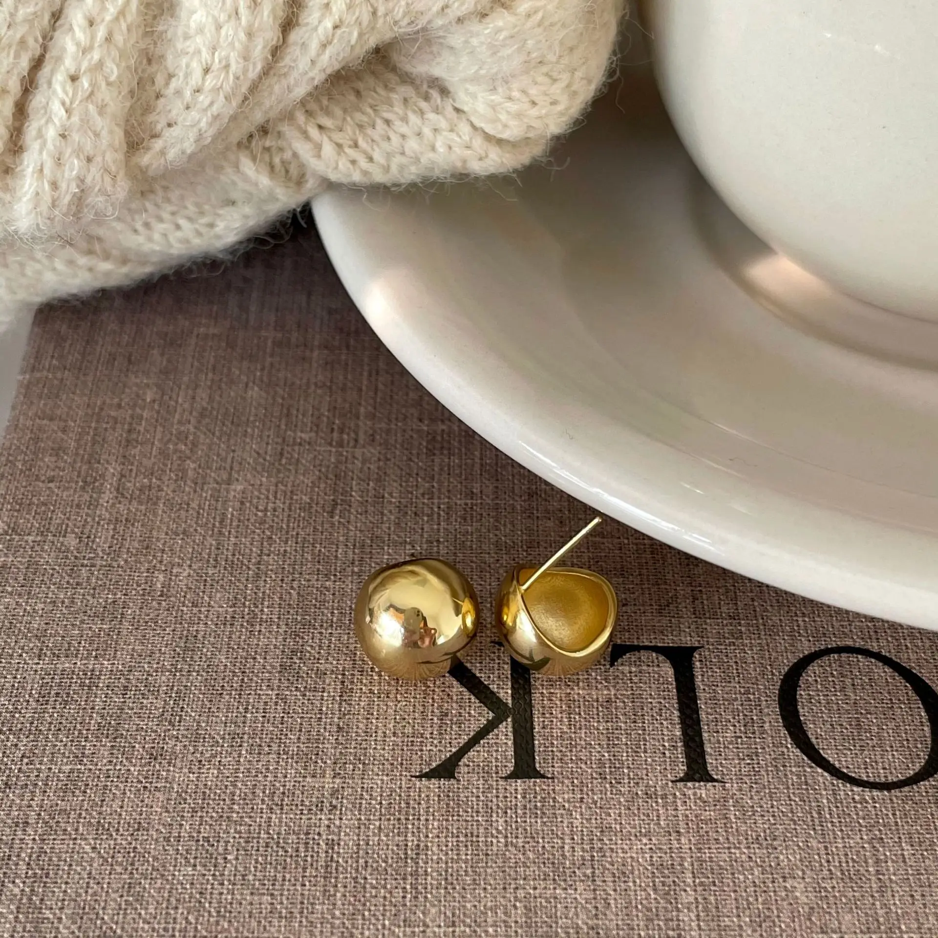 100% Genuine 925 Sterling Silver Earrings Jewelry Personality Semi-circular Smooth Minimalist Oval Pea 18k Gold Plating
