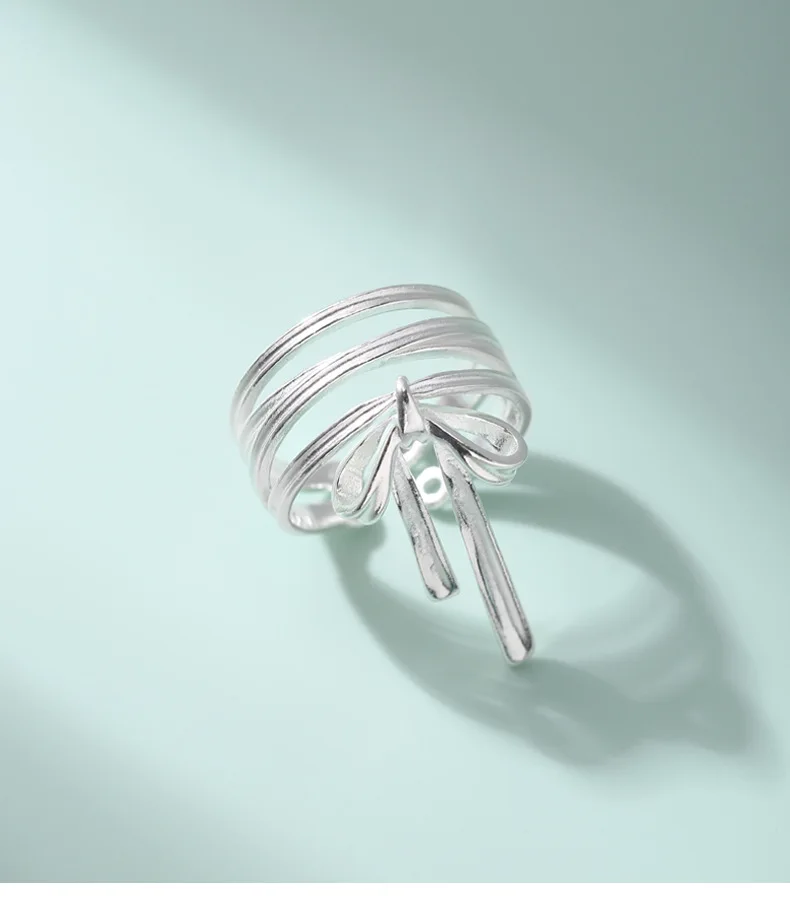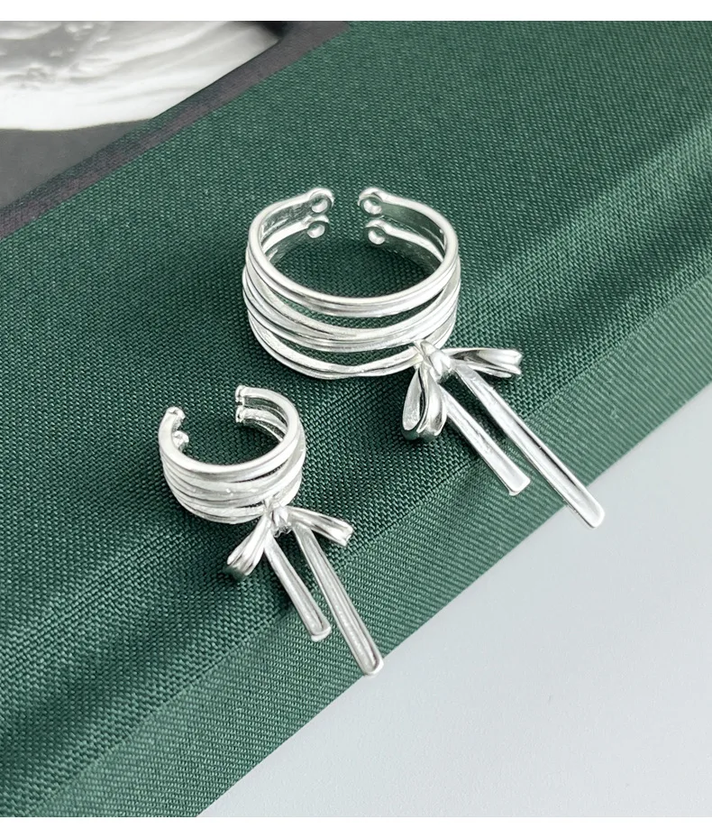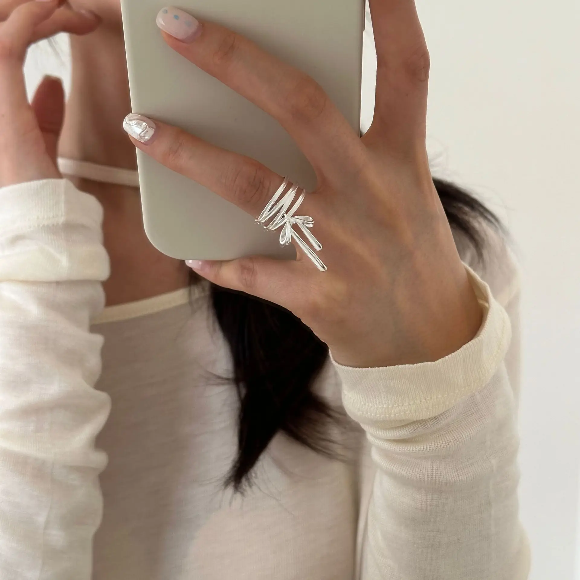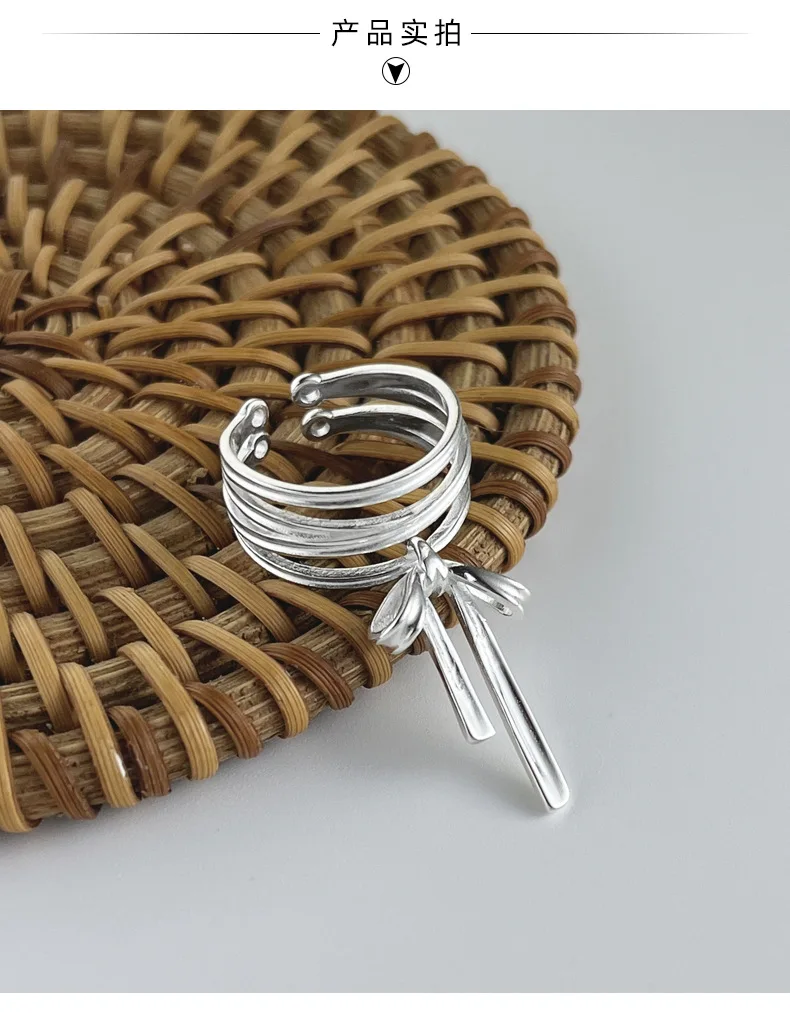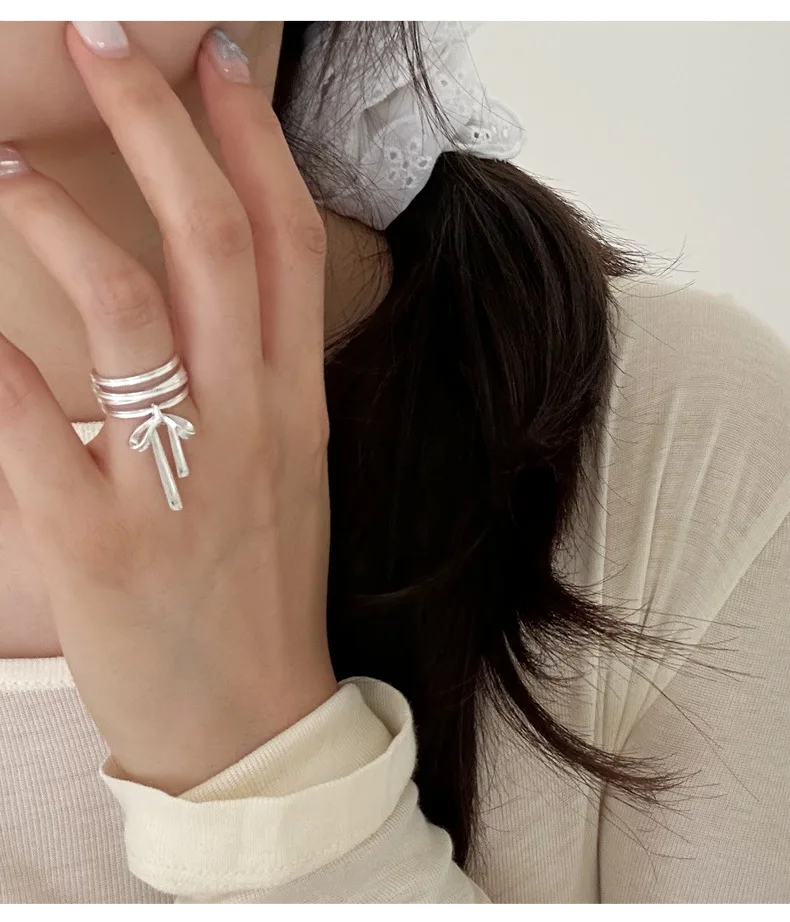 925 Sterling Silver Multi-layer Bow Ribbon Ring Female Simple Sweet Girly Heart Temperament Open Ring