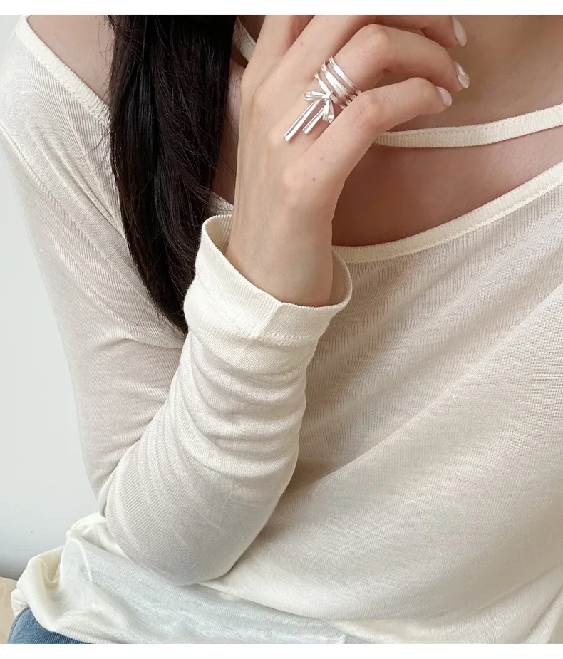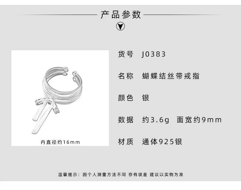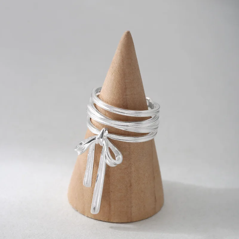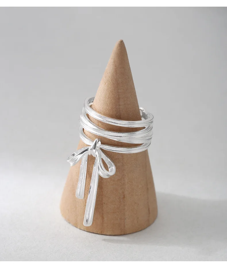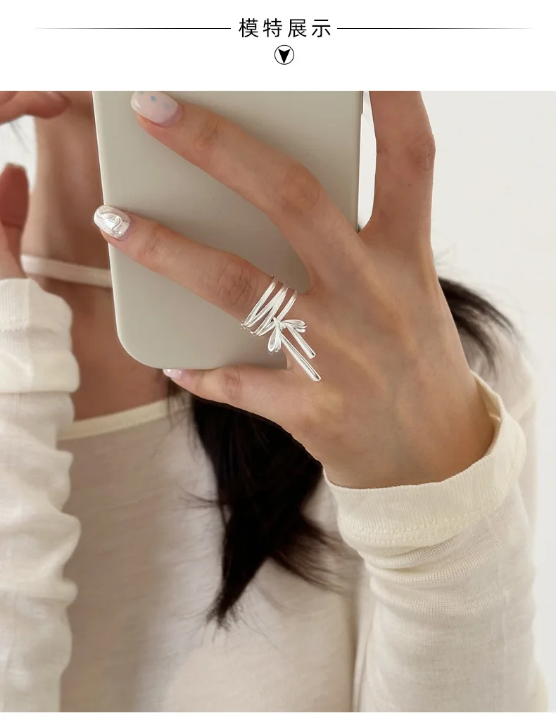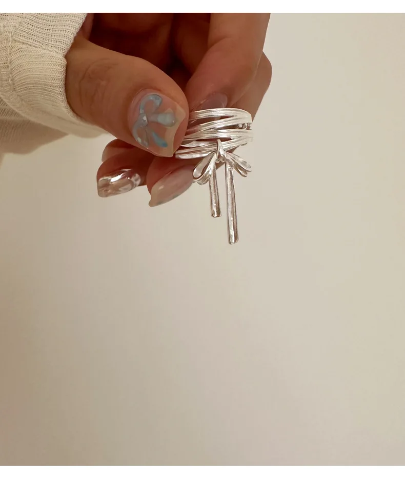 925 Sterling Silver Multi-layer Bow Ribbon Ring Female Simple Sweet Girly Heart Temperament Open Ring