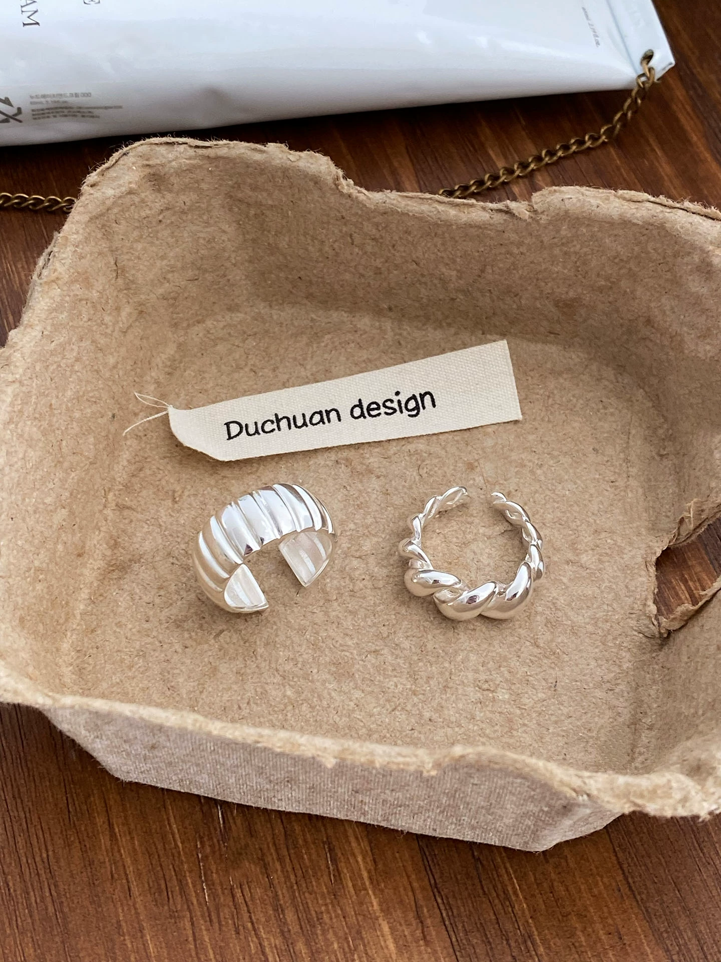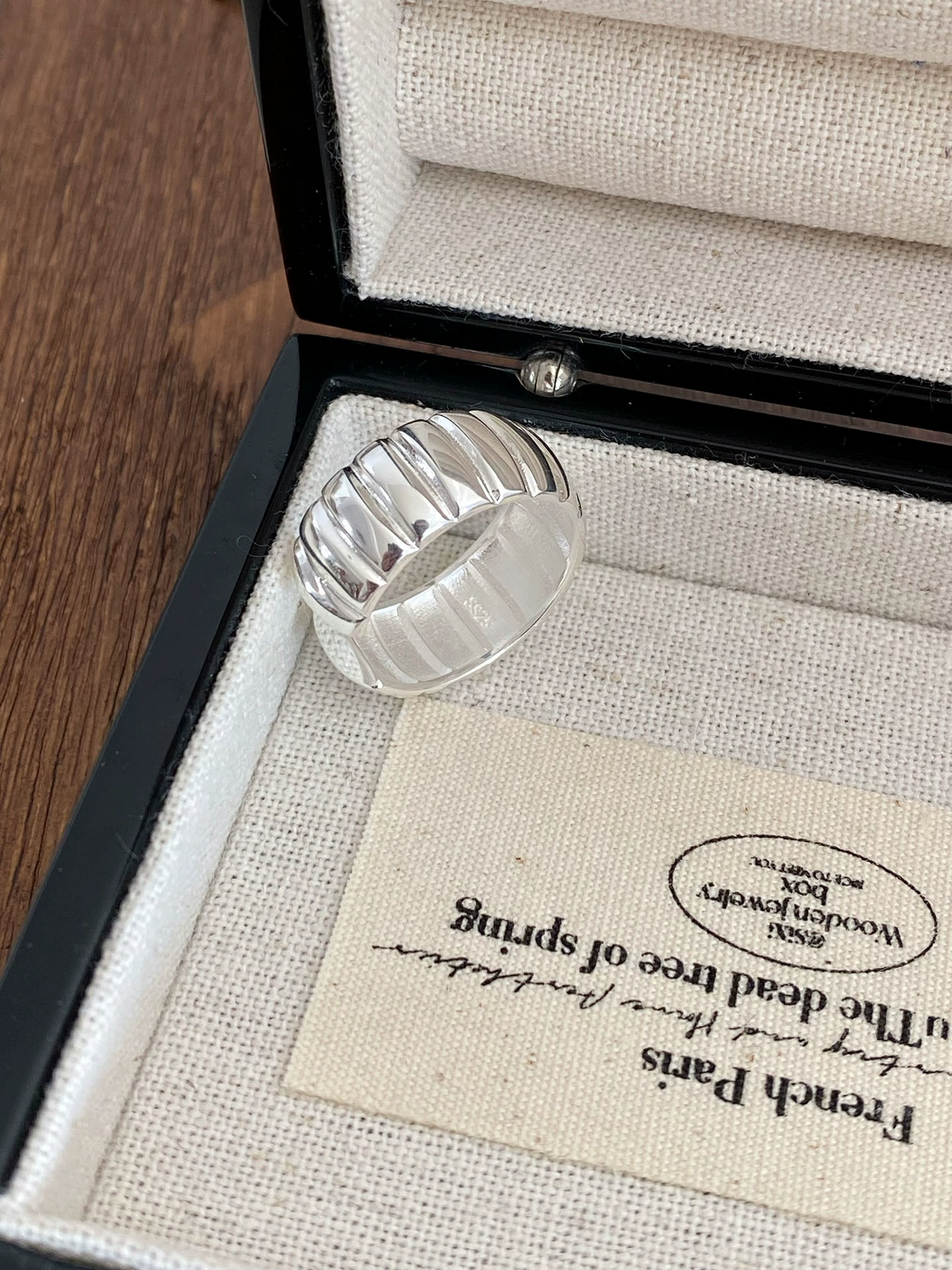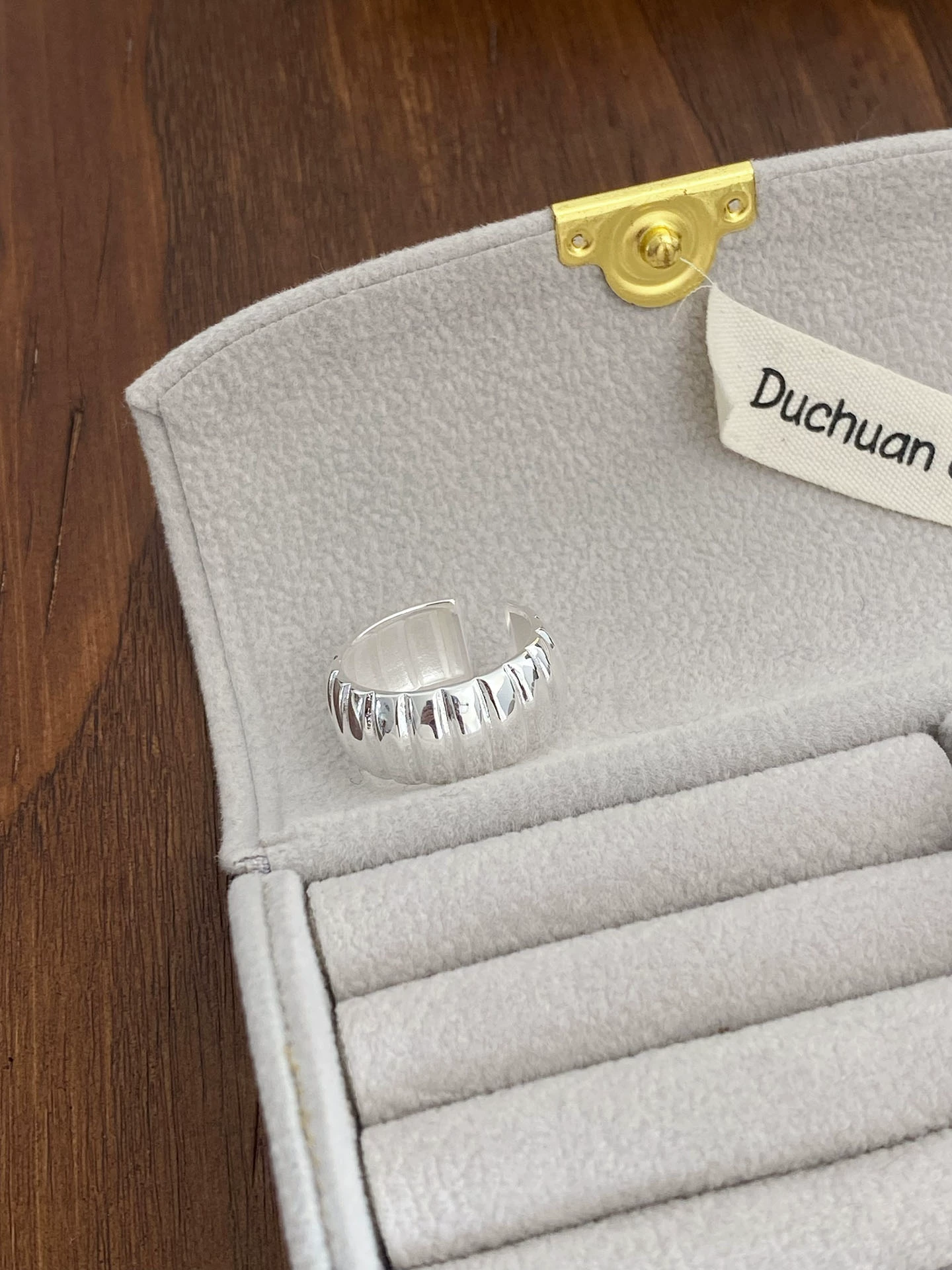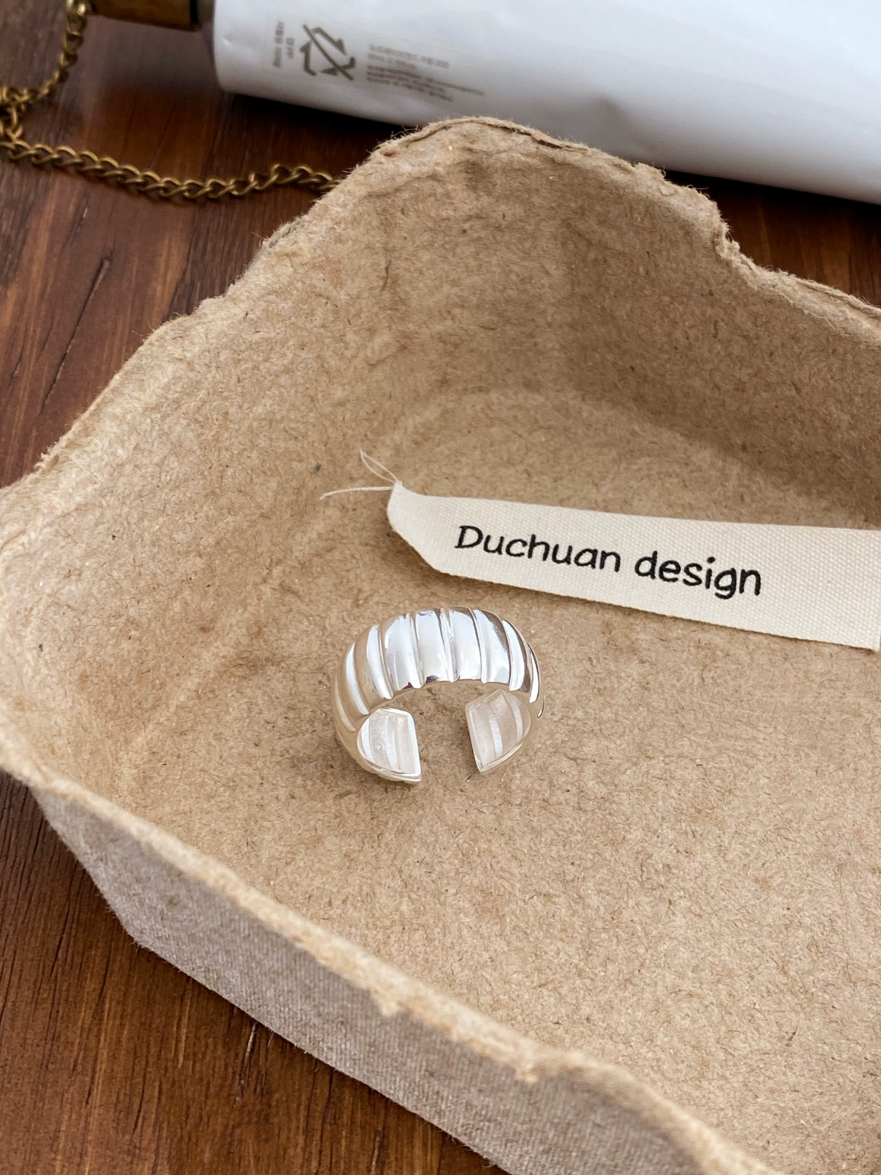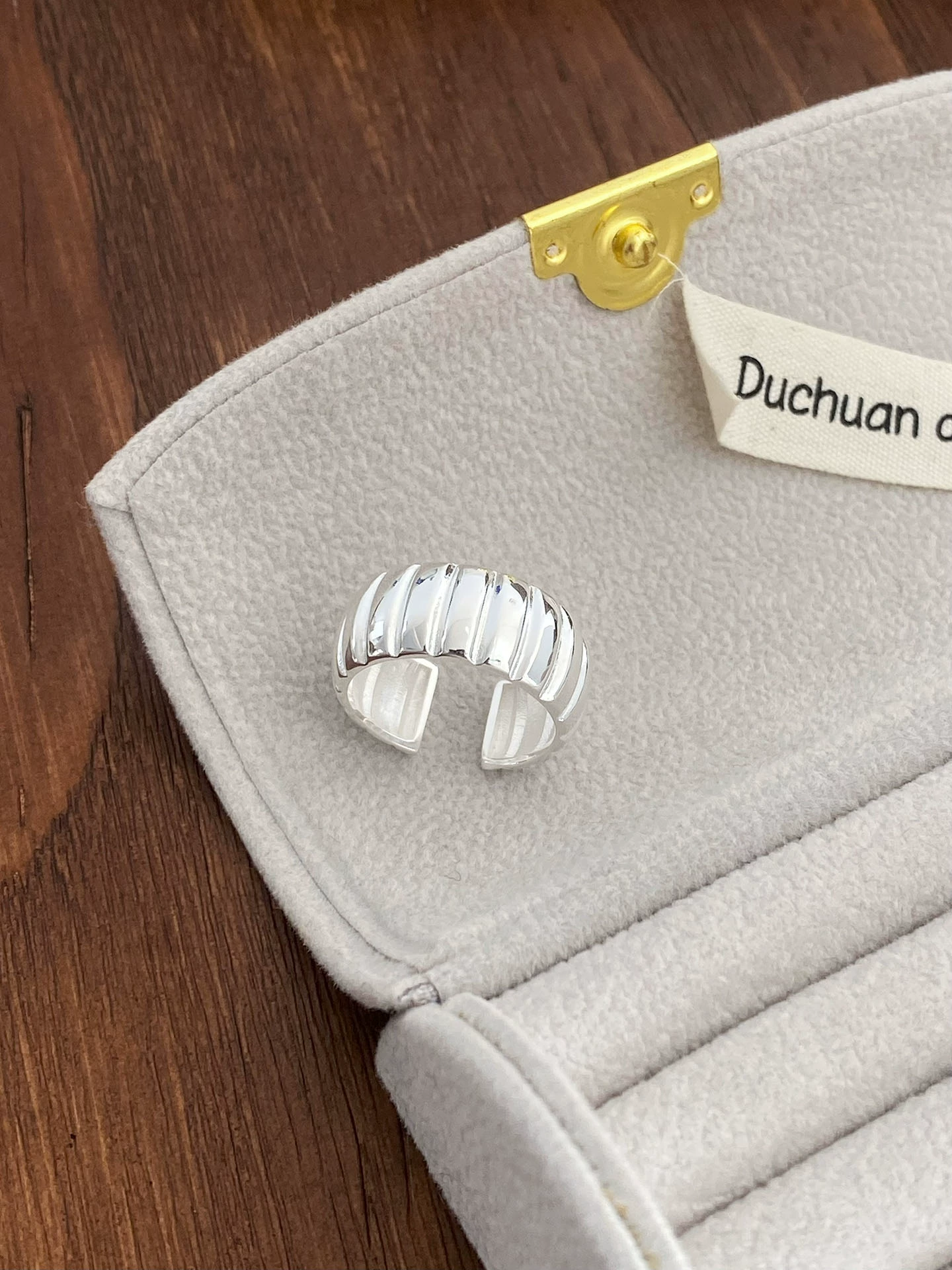 All-over S925 sterling silver simple niche geometric pumpkin texture open ring women’s index finger ring high-end croissant