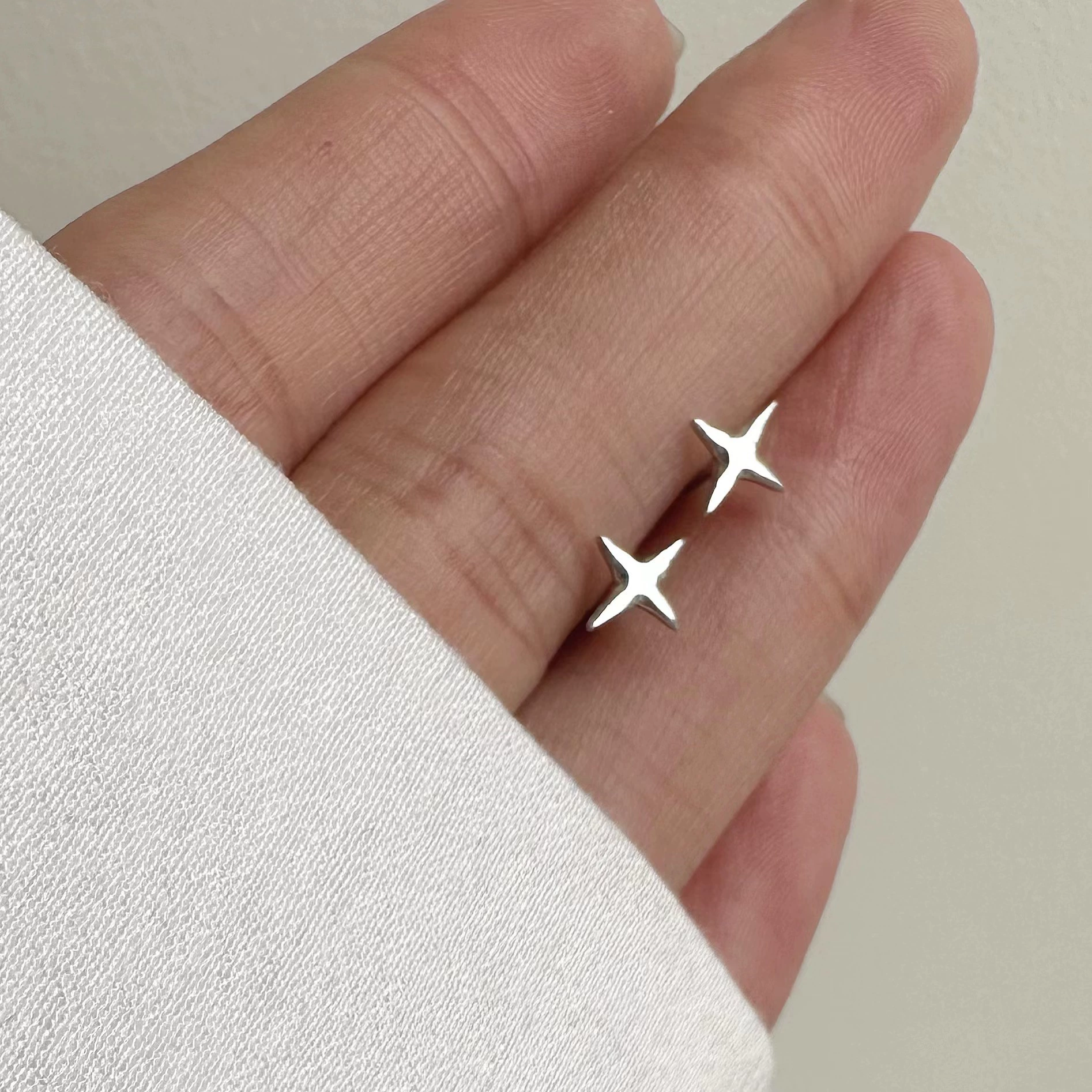 chan 925 sterling silver simple niche mini mini cross star earrings earrings ear bone nails versatile ins trend