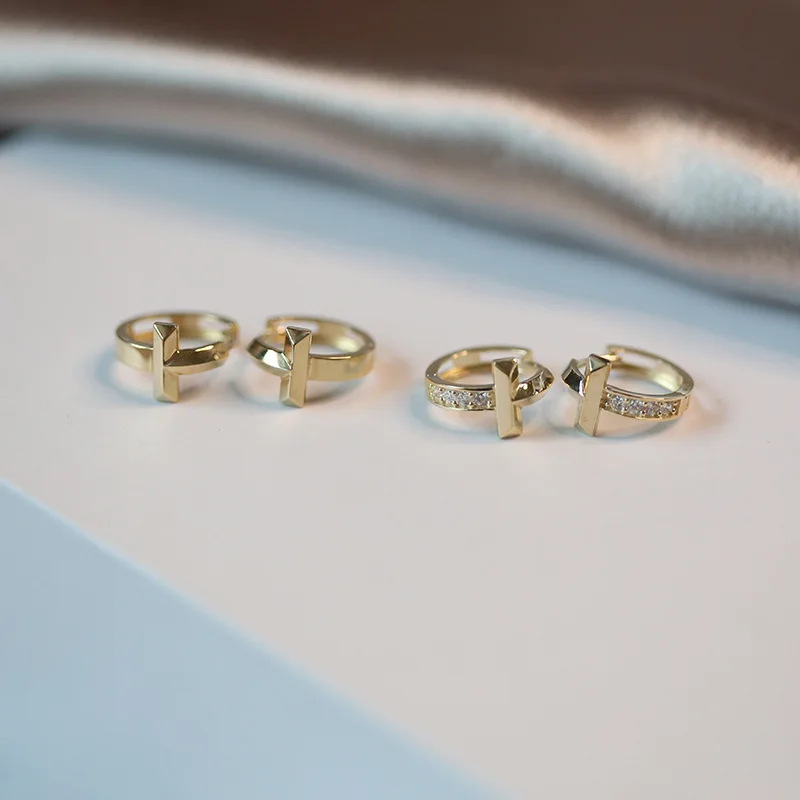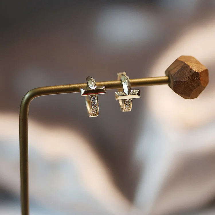 CHOZON S925 Silver 14K Gold Plated Cross Ear Cuff Zircon Minimalist 3D Statement Jewelry Gift for Women