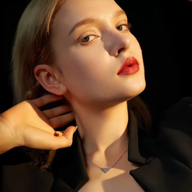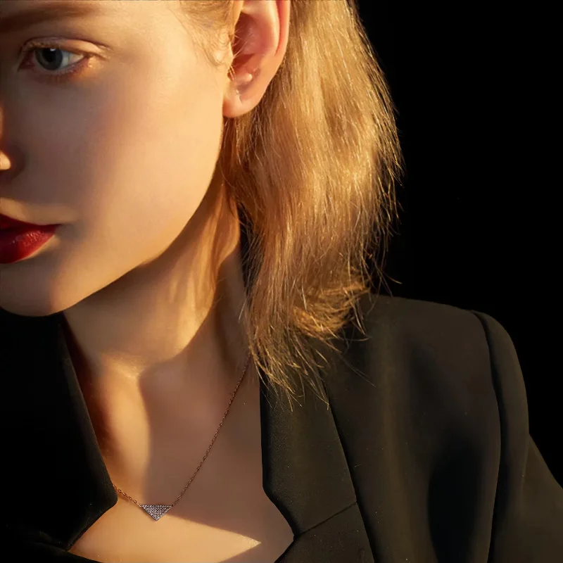 CHOZON S925 Silver Rose Gold Plated Triangle Pendant Necklace French Luxury Wholesale Dainty Jewelry for Women