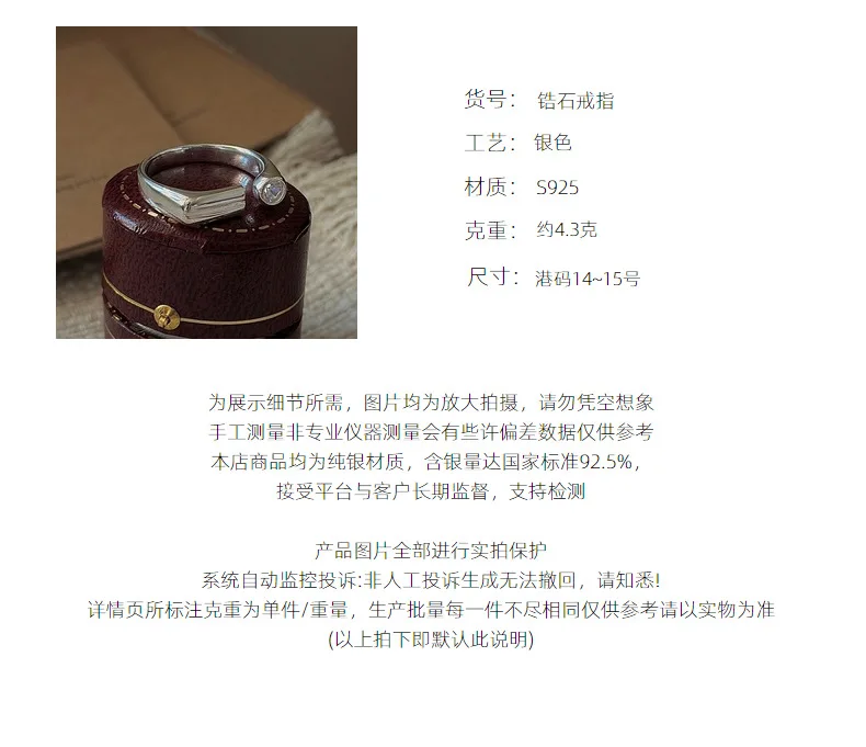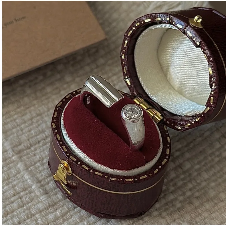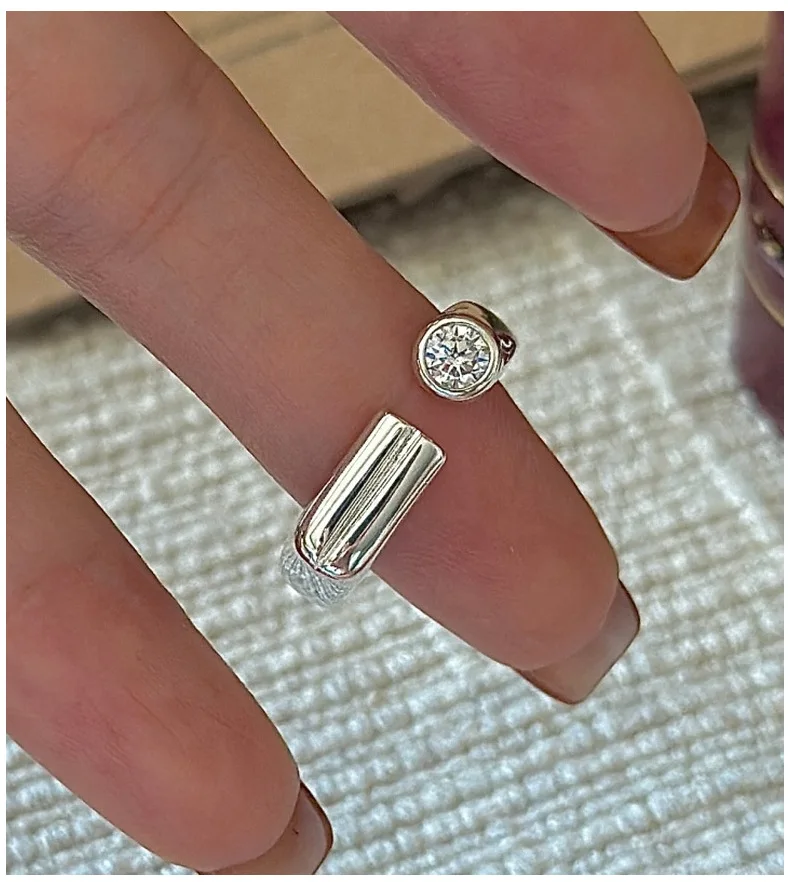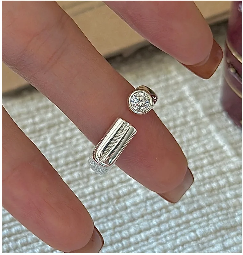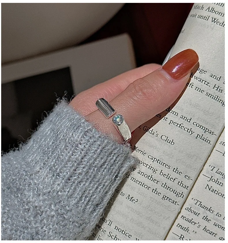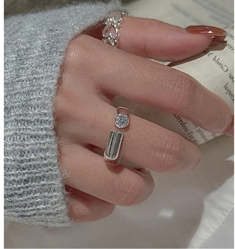 CHOZON S925 Solid Silver Bar Zircon Ring Korean Vintage Minimalist Stacking Jewelry Gift for Women