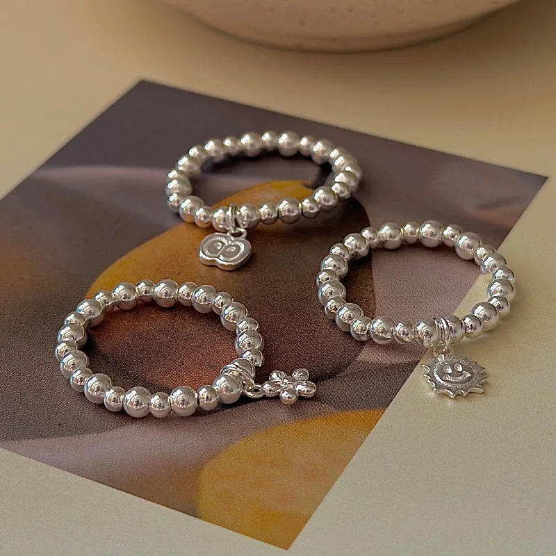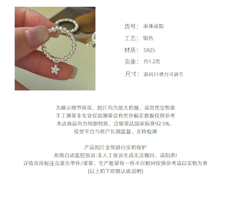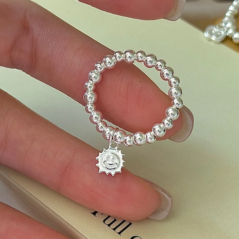 CHOZON S925 Solid Silver Beaded Ring Korean Vintage Stretch Minimalist Jewelry Gift for Women