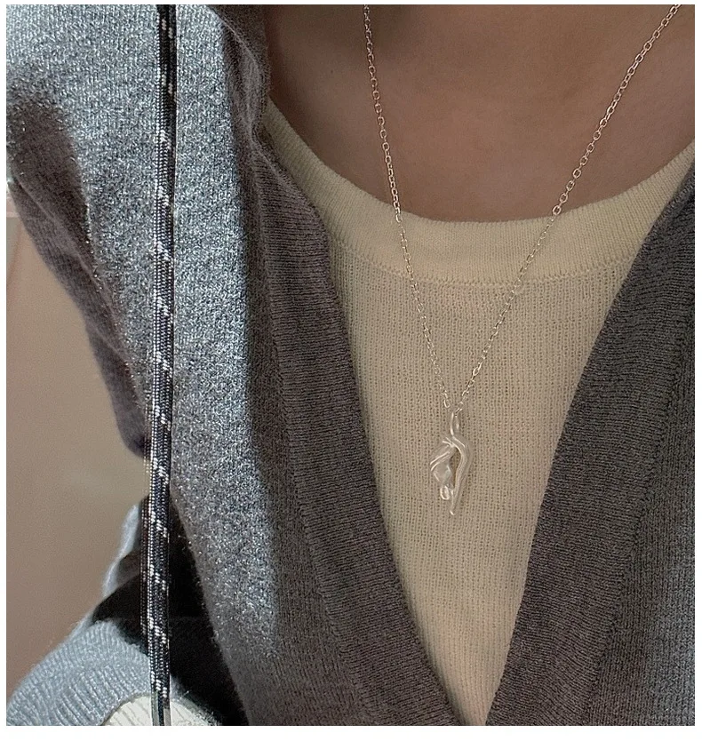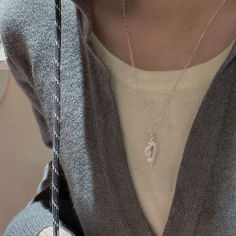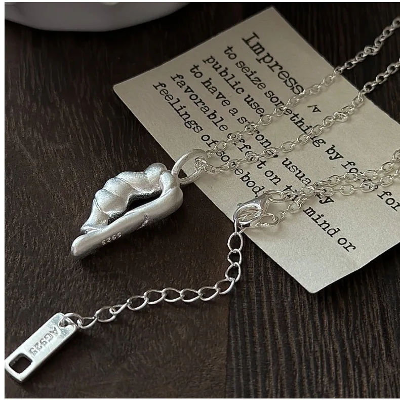 CHOZON S925 Solid Silver Burnished Necklace Korean Minimalist Wholesale Dainty Layering Jewelry for Women