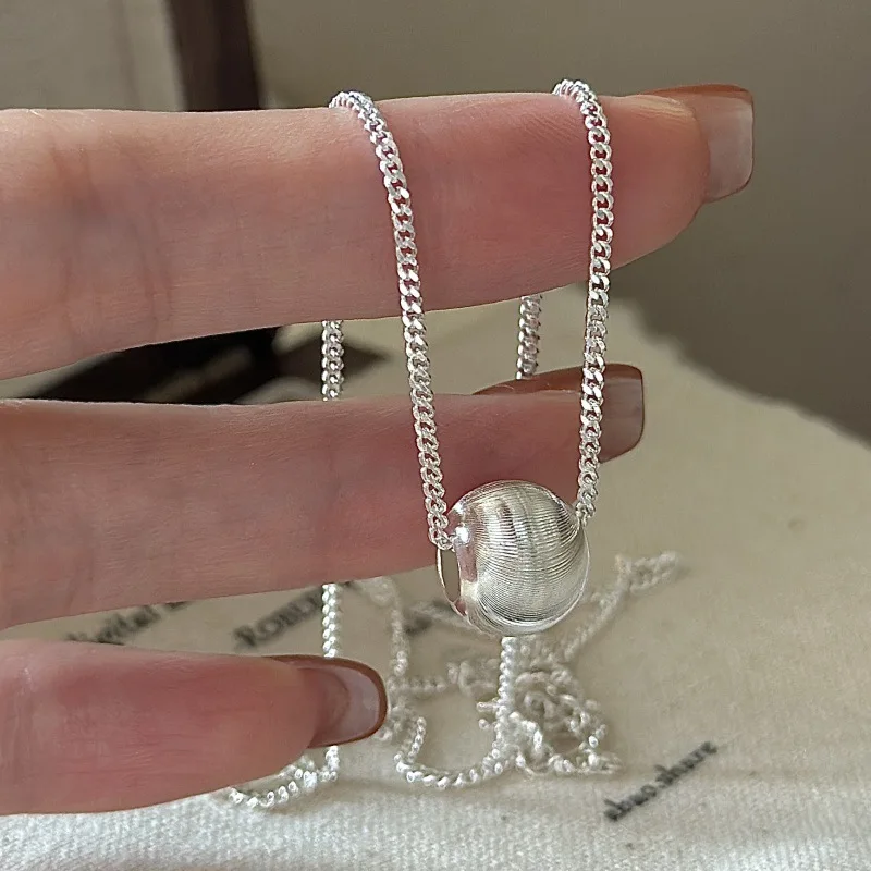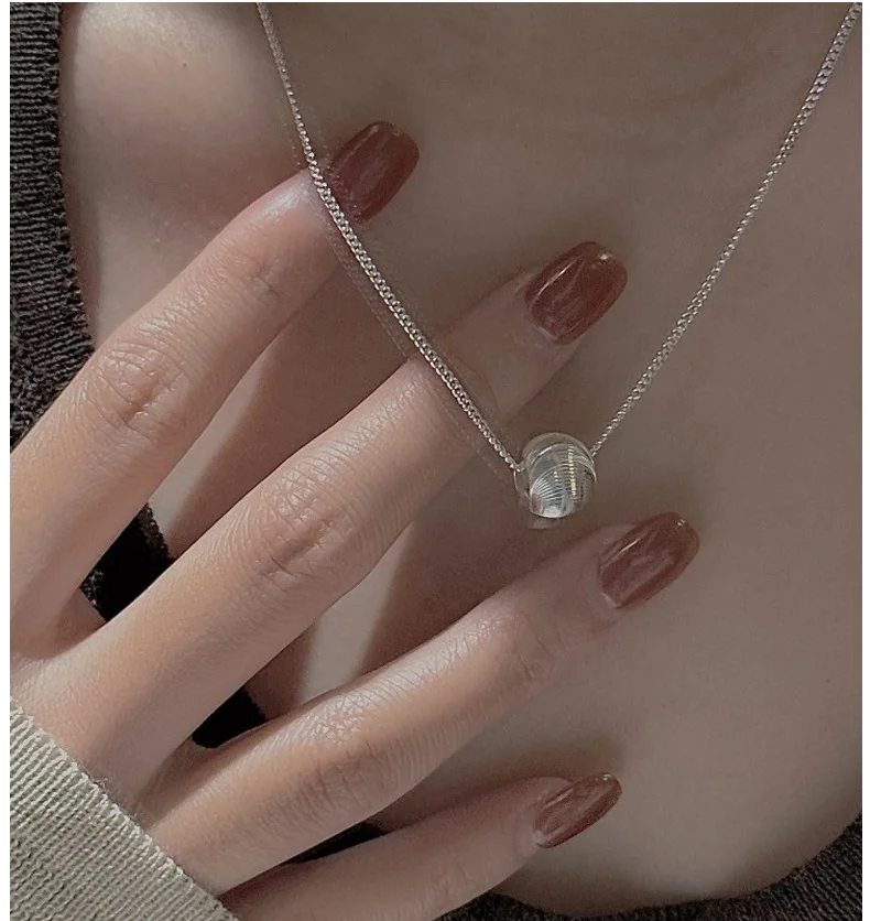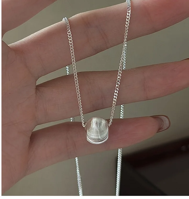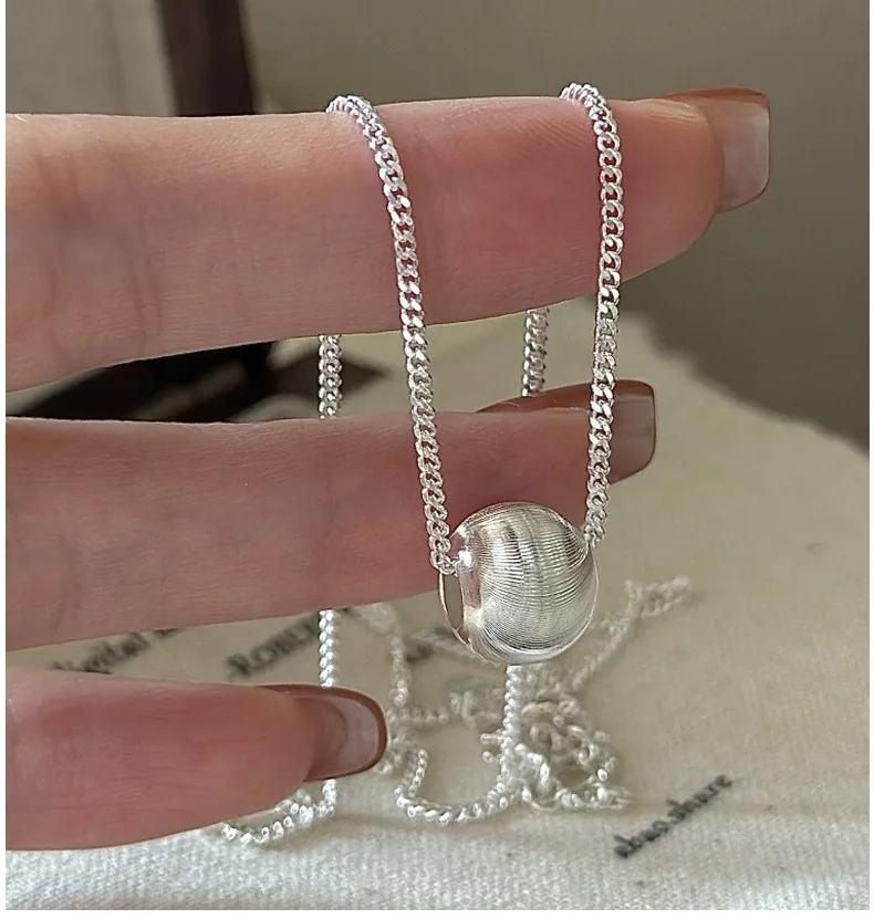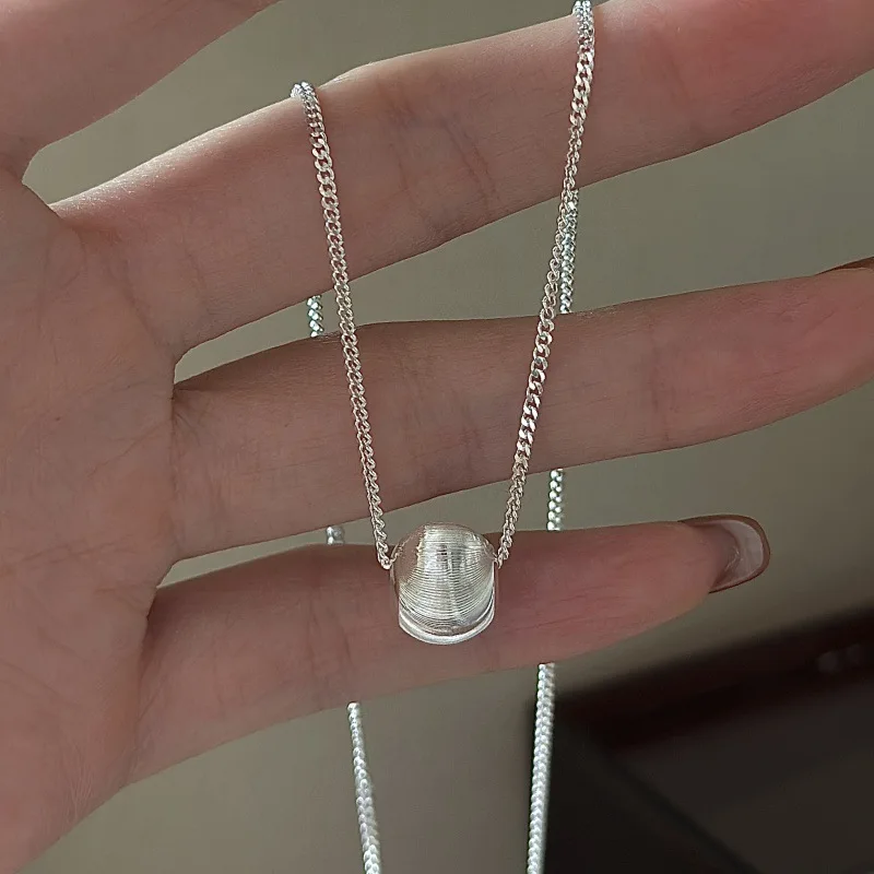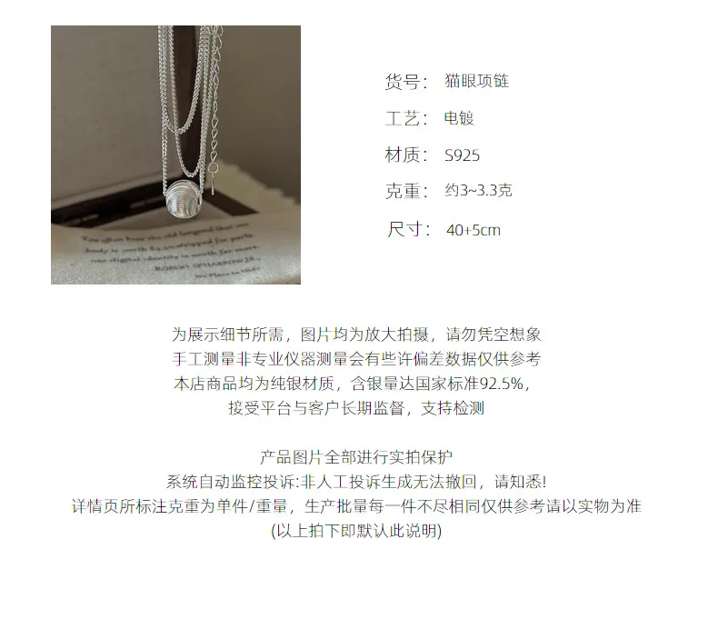 CHOZON S925 Solid Silver Cat Eye Bead Necklace Korean Vintage Minimalist Layering Jewelry Gift for Women