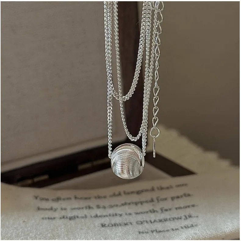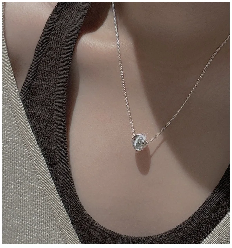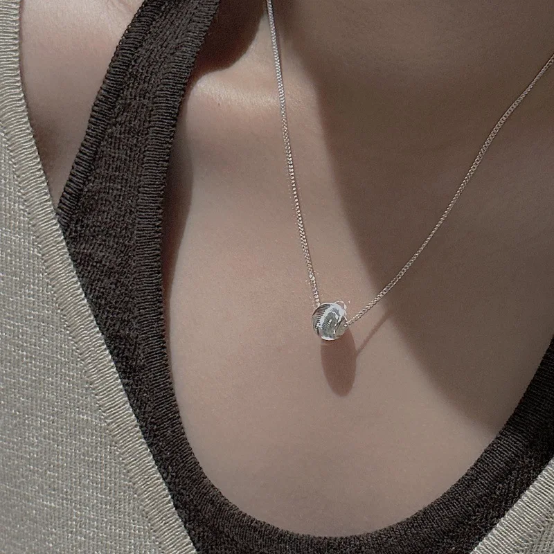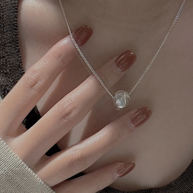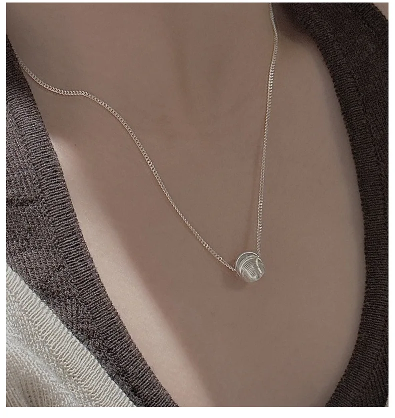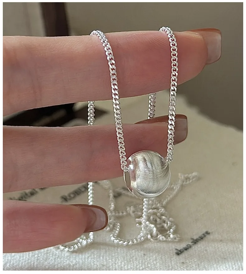 CHOZON S925 Solid Silver Cat Eye Bead Necklace Korean Vintage Minimalist Layering Jewelry Gift for Women