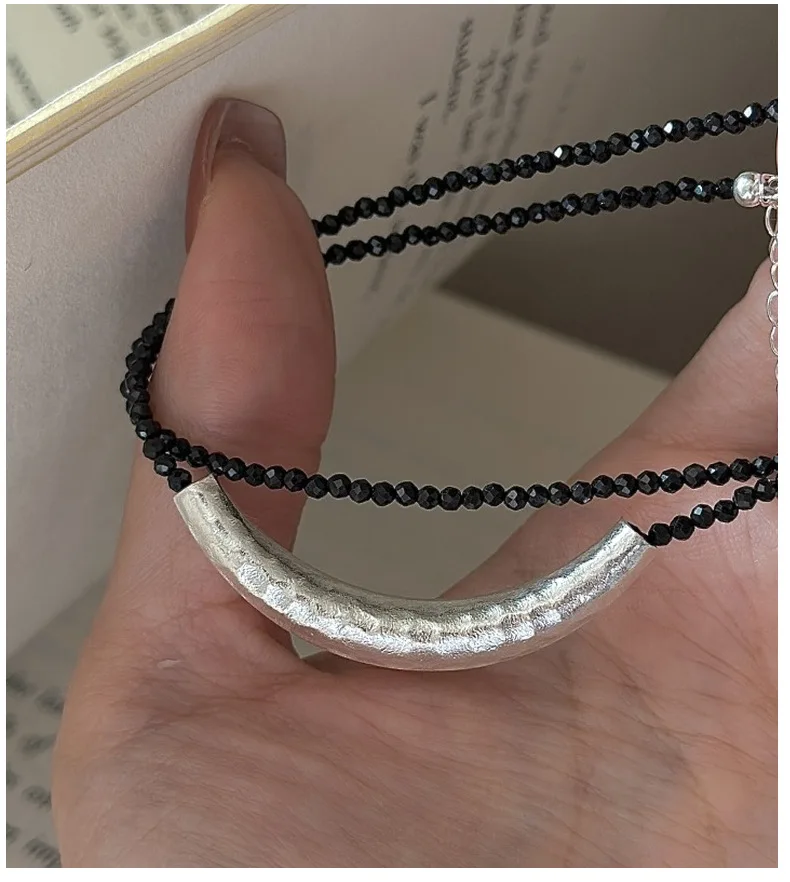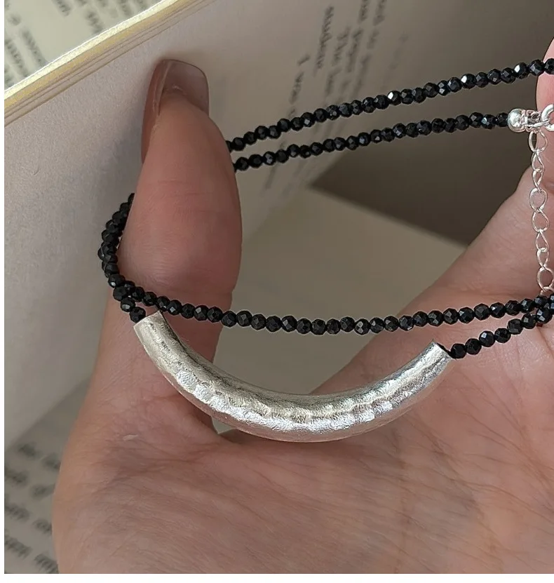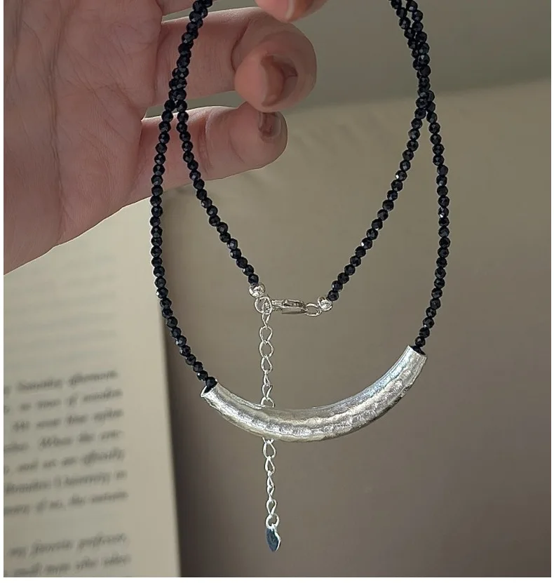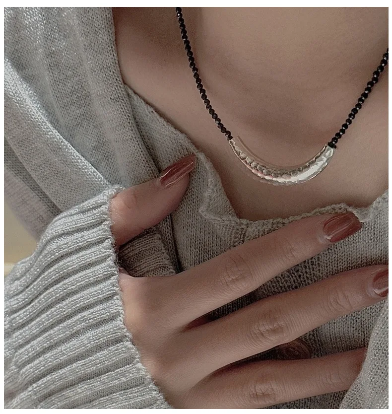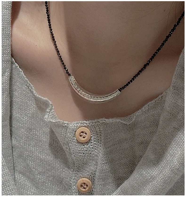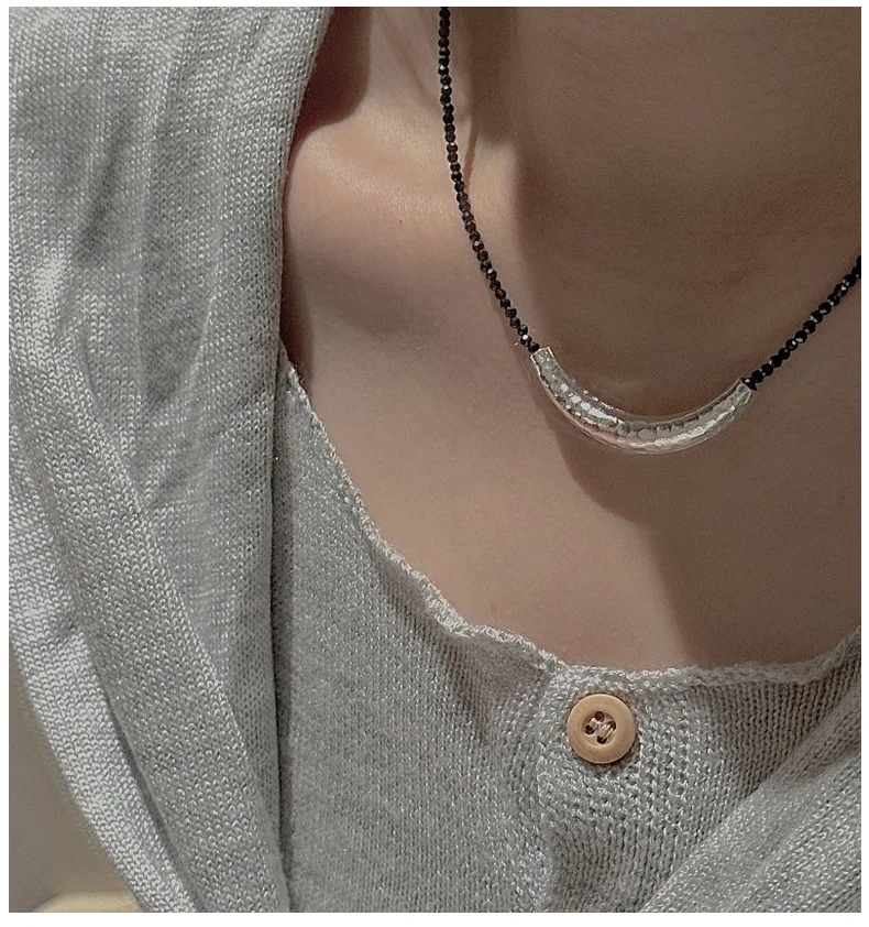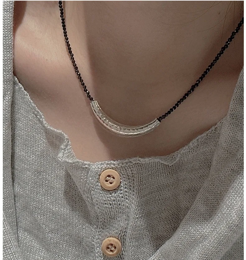 CHOZON S925 Solid Silver Croissant Spinel Necklace Korean Vintage Minimalist Layering Jewelry Gift for Women