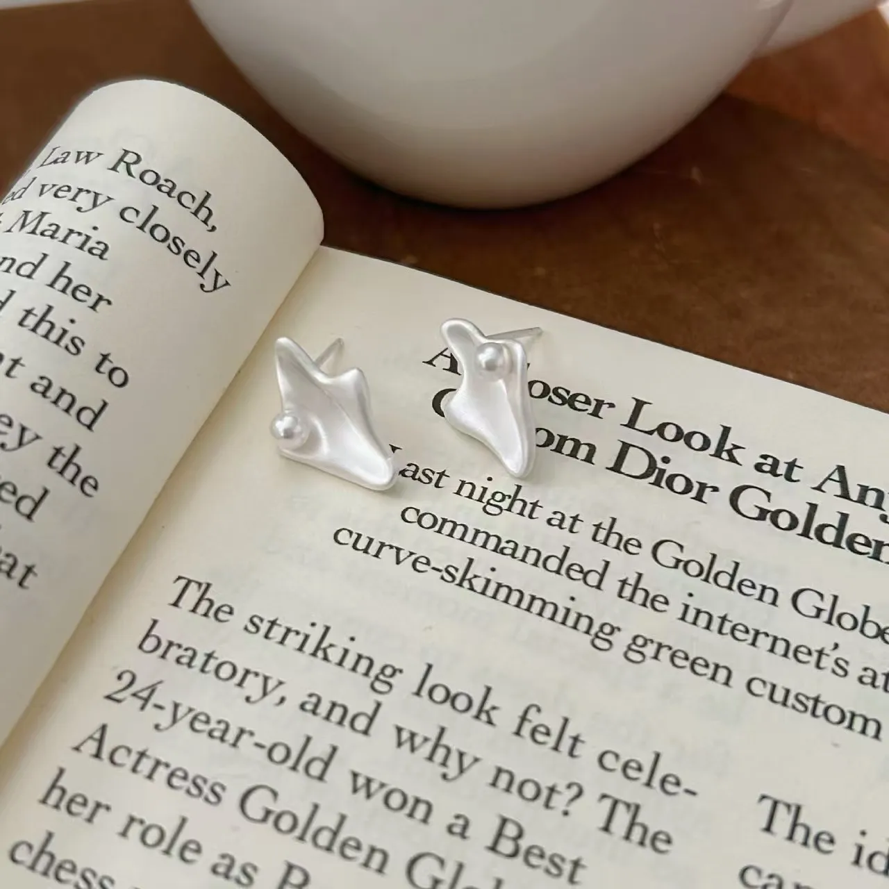 CHOZON S925 Solid Silver Geometric Pearl Earrings Minimalist Matte Dainty Wholesale Stacking Jewelry Gift for Women